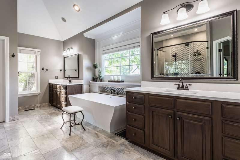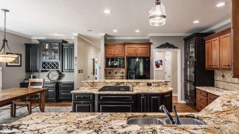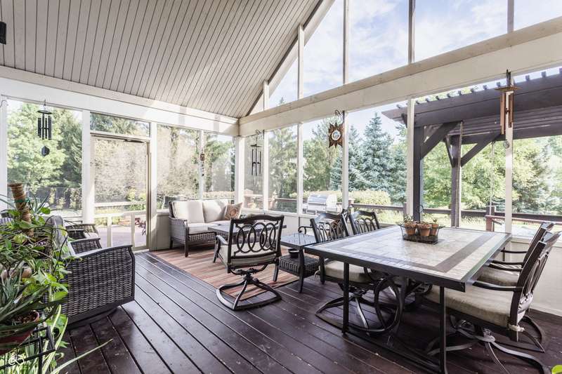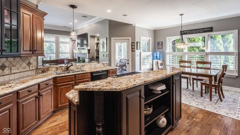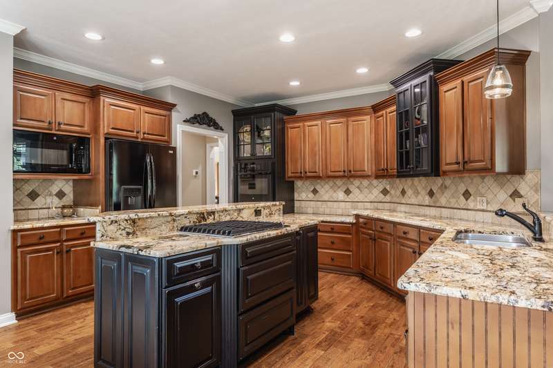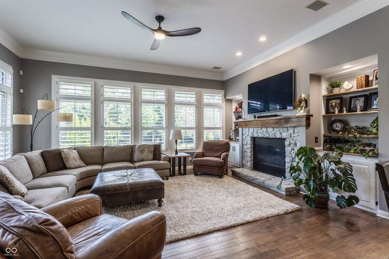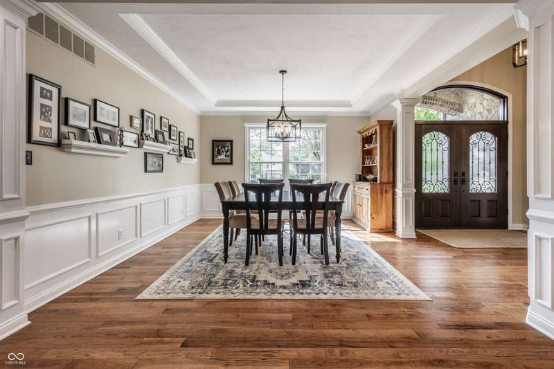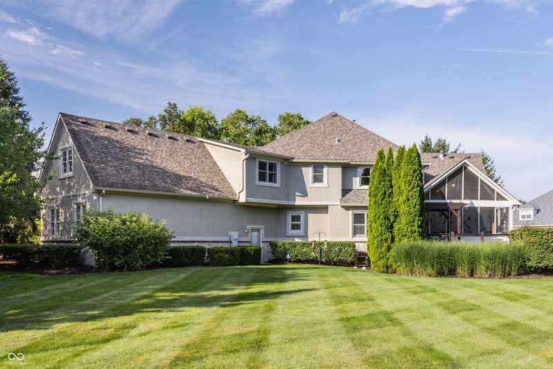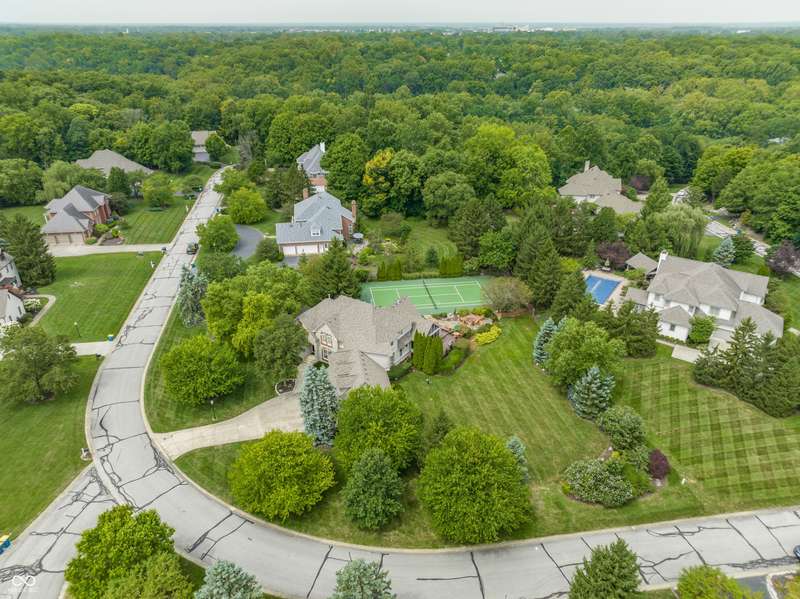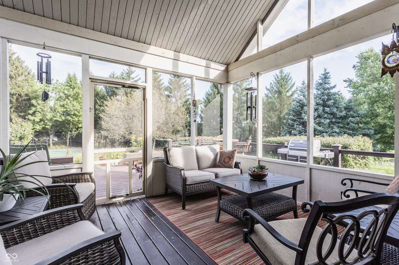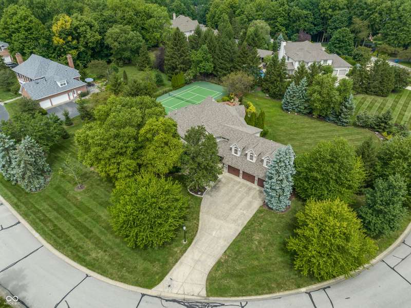 Calling all pickleball and tennis lovers! Nestled in the desirable Bolander Woods community, this exceptional home sits on a 1.05-acre lot and features its very own private tennis court (easily converted for pickleball)! Step inside to a welcoming entry and family room with a beautiful gas fireplace, perfect for cozy gatherings, and a formal dining room adorned with crown molding. On the main floor, you'll also find a luxurious primary suite with an updated spa-like bath, complete with a soaking tub and walk-in shower. The chef's kitchen is equipped with double ovens, a new gas cooktop, and a cozy breakfast area with built-ins, perfect for both everyday meals and hosting. A den with custom built-ins provides the ideal work-from-home space. Upstairs, four generously sized bedroom suites offer comfort for family or guests, while the finished basement is all about fun and relaxation, complete with a home theater, rec room with wet bar, exercise room, and full bath. Outdoors includes a large screened porch, multi-layered wrap-around deck with pergola and daybed, and a stone patio with firepit next to the court. From indoor comforts to outdoor recreation, this home delivers a lifestyle you'll love. Neighborhood features a large common area perfect for nature lovers and dogs!