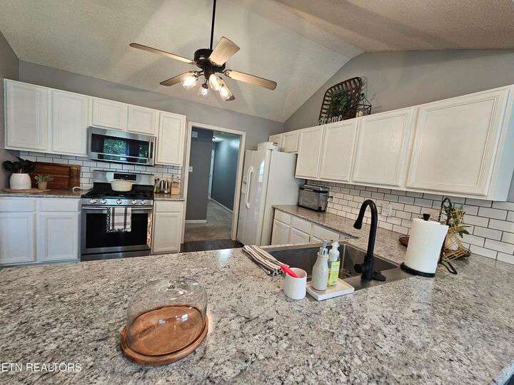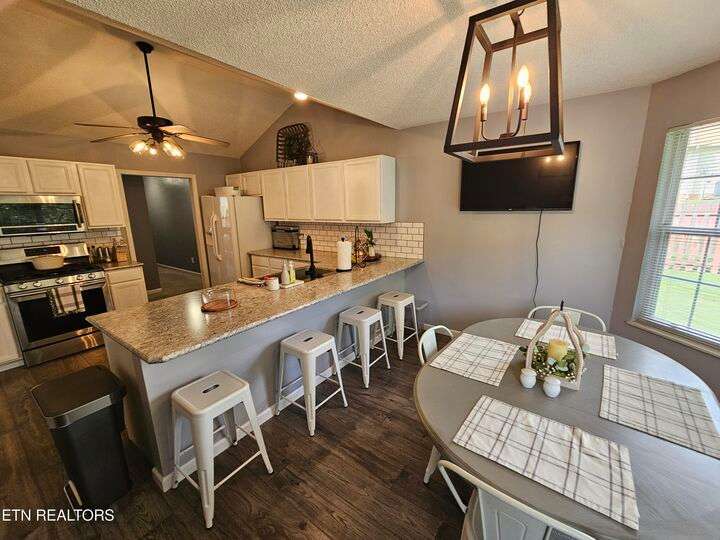 Charming Home in sought-after Mount Pleasant Subdivision. Welcome to this beautifully maintained 3-bedroom, 2-full bath home located in the desirable Mount Pleasant neighborhood. Featuring a popular split-bedroom floor plan and an open-concept layout, this home offers both comfort and style. The newly renovated eat-in kitchen is a true highlight, complete with updated appliances, granite countertops, a pantry, breakfast bar, and new flooring. Soaring cathedral ceilings enhance the spacious feel of the living areas, where a cozy gas fireplace serves as a perfect focal point. The generous primary suite includes a large walk-in closet and a luxurious ensuite bath with dual vanities, a soaking tub, and a walk-in shower. Two additional bedrooms share an updated full bath, perfect for guests or family. Enjoy outdoor living on the covered front porch or the fully fenced backyard with deck space—ideal for entertaining. A 2-car garage with high ceilings adds great storage potential. Situated on a large lot with expansive front and back yards, this home is in a friendly neighborhood with convenient access to local schools, shopping, and restaurants. Don't miss this opportunity to own in one of the area's most popular communities!