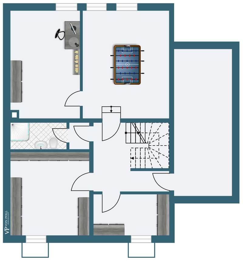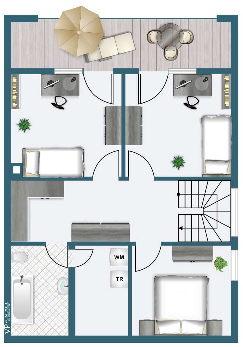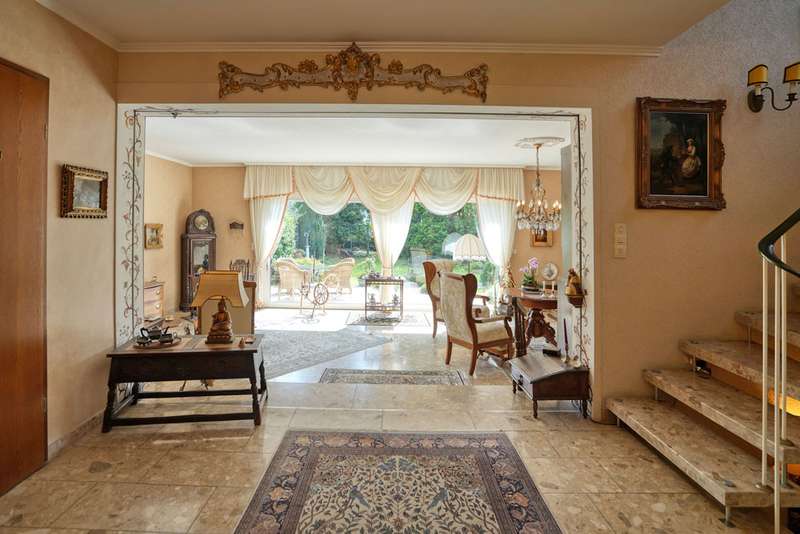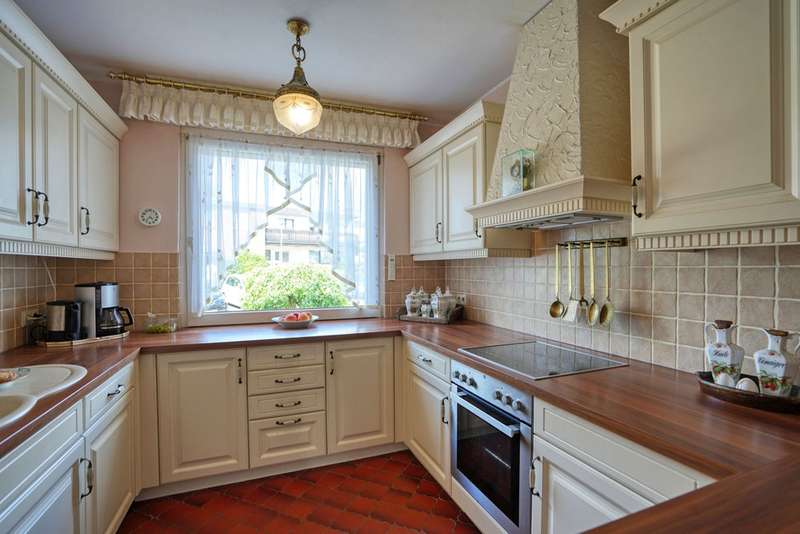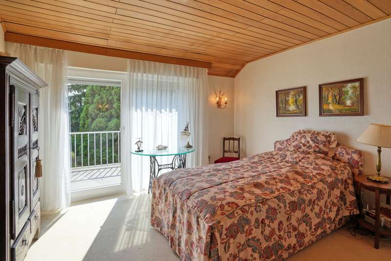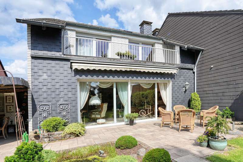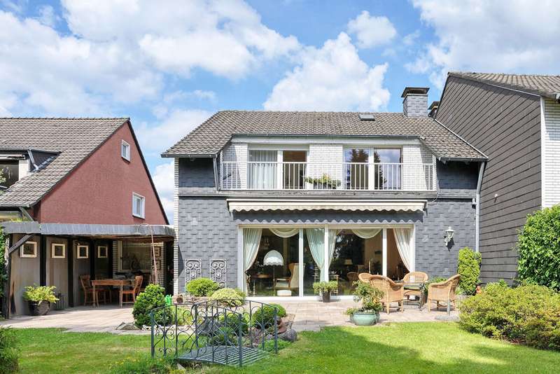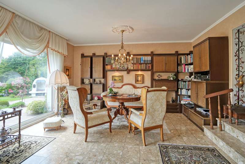 This single-family terraced house was built around 1978 in solid, solid construction. It has a full basement. On the first floor, the vestibule leads into a spacious hallway from which all rooms are accessed. The spacious living area extends across the entire width of the house and has a ceiling height of approx. 3 meters. It is equipped with an open fireplace and has access to the terrace and garden. The kitchen and dining area are at the front of the house. There is also a checkroom and a guest WC. On the upper floor, you first enter a large hallway and from there into the bedroom and, on the garden side, into two children's bedrooms with access to a sunny roof terrace. Next to the bathroom, which is equipped with a bathtub, is the utility room. In the basement there are two large hobby rooms, the utility and storage rooms and a shower room. The attractively designed and large garden is ideally oriented towards the afternoon sun to the south-west. Directly adjacent and with direct access is a large open space. The car garage next to the house is extra long. It offers space for two vehicles and has a door to the garden. A parking space in front of the garage completes the offer.