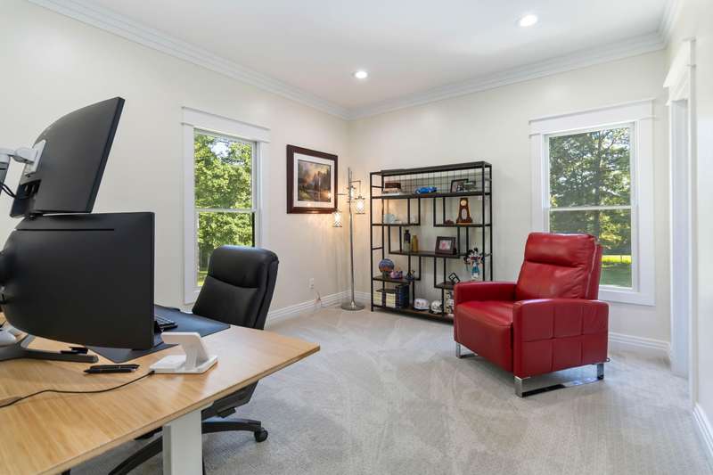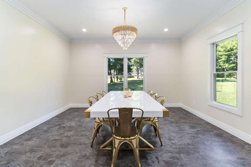 Welcome to this exquisite 5-bedroom, 4-bathroom residence that emanates a sense of comfort. Nestled in seclusion, this custom-built home is situated on a sprawling 5.81-acre lot with a serene stream at the rear. The heart of this home showcases a spacious layout and design, featuring a grand great room, a generously sized kitchen with a breakfast area, a formal dining room, and a hidden cabinet pantry. Bedrooms have abundant closet space. The master bedroom boasts two expansive walk-in closets, while the master bathroom offers a custom tile shower and tub. Throughout the home, you'll find meticulous custom trim that adds a touch of elegance. The well-appointed kitchen is equipped with modern appliances, ample counter space, and a convenient center island. Adjacent to the kitchen is a charming dining area, perfect for hosting family gatherings and entertaining friends. The kitchen also features a beautiful cabinet package with a discreet entrance pantry. Completing this remarkable home is a full basement with a walkout and ample storage space. The outdoor area seamlessly extends the beauty of the home. Take pleasure in the expansive backyard, ideal for outdoor activi