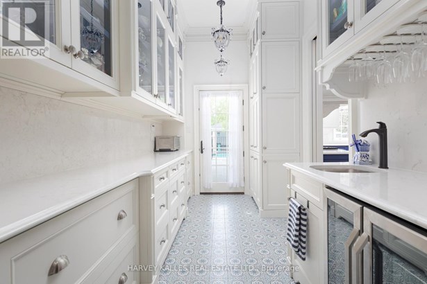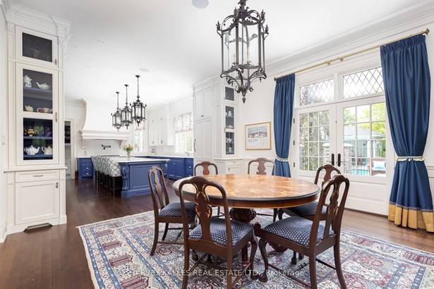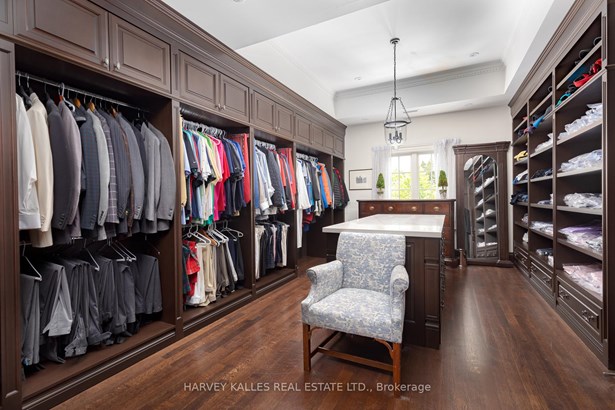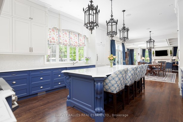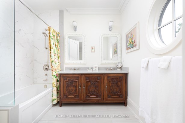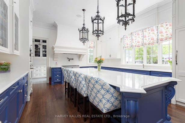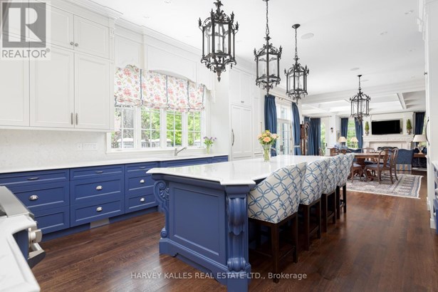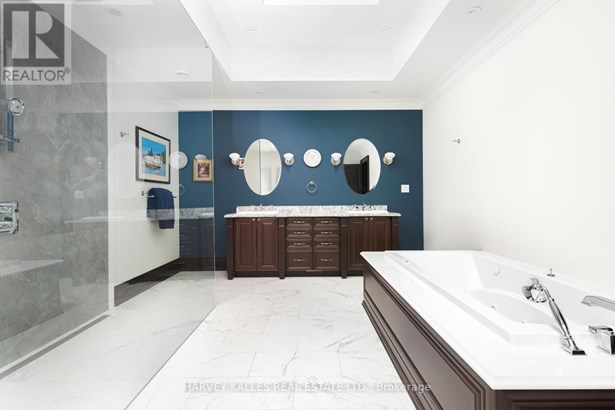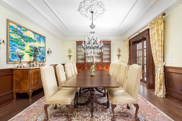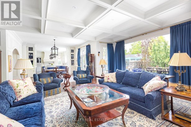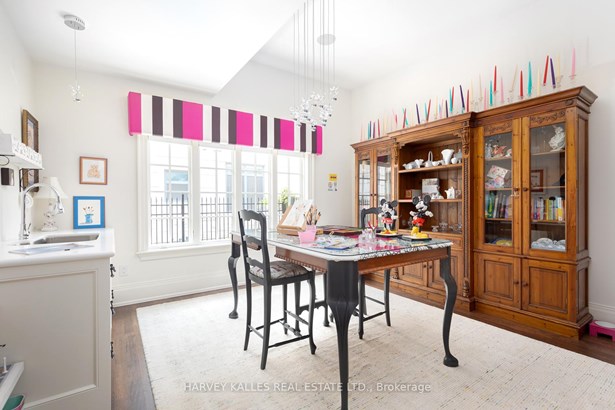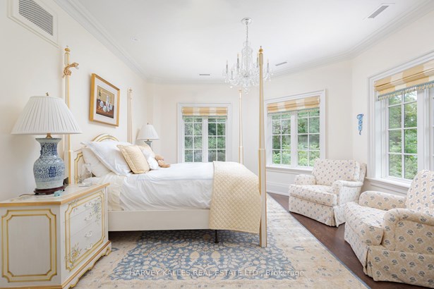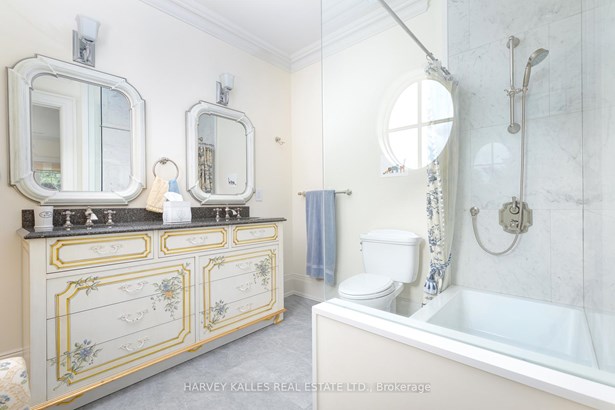 From vision to fruition, 8 Swansdown Drive stands as a truly unique and masterfully built residence. Every element was carefully chosen with intention, resulting in a home that exudes sophistication, comfort, and timeless beauty.Set on a secluded, lush lot in one of Torontos most prestigious neighbourhoods, the property offers unmatched privacy. A grand circular heated driveway welcomes you and your guests with ease, while a three-car garage securely houses your most prized possessions. The striking freestanding waterfall and manicured gardens create an instant sense of calm and retreat from the city.Inside, the double solid-oak doors open to a breathtaking two-storey foyer with soaring ceilings and open sightlines to the stunning rear gardens. The elegant living room features a wood-burning fireplace and retractable Floridian-style glass doors that open to a stone patio for al fresco dining. The sun-drenched kitchen and breakfast room overlook the lush grounds, while the formal dining room connects via a butlers pantry.The garden solarium is perfect for nurturing plants year-round. Additional main floor highlights include a cheerful office, art studio with water access, and a one-of-a-kind octagonal library with handcrafted detailing, a ceiling medallion, and hidden staircase.The second floor is accessed by a sweeping staircase or a wrought-iron Parisian-style elevator. A skylit hallway leads to four generous bedrooms, each with its own ensuite. A separate two-piece bath, laundry room, and pet spa complete this level.The lower level offers an impressive array of spaces: gym, yoga room, sauna, rec room, large storage, study, soundproof music room, guest suite, and more.Outdoors, enjoy over a million dollars in landscaping, a chlorine pool, fire pit, two covered pavilions (one with bar and bath), and stone pathways weaving through a magical setting.A rare offering. Welcome home. (id:6370)