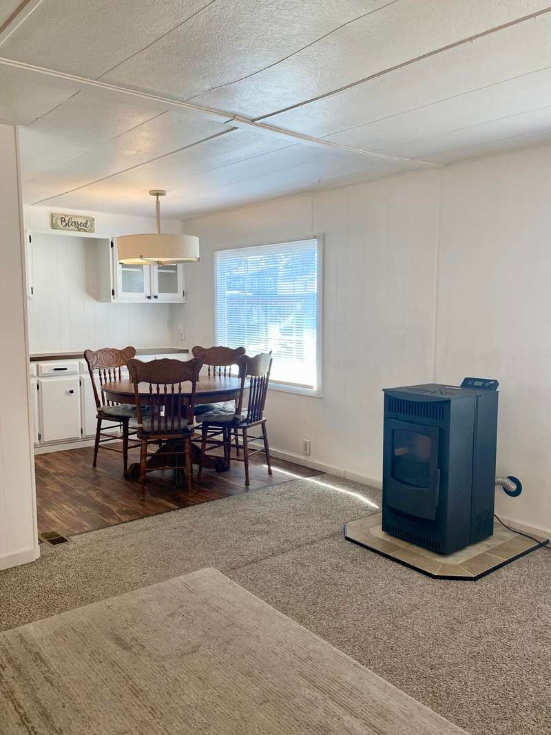 $11,000 Price Reduction! Seller Financing Available with this Motivated Seller! Parrell Mobile Home Park rent is more affordable than other parks in Bend.This charming and affordable 2-bedroom, 1 bath Double-Wide home feels much larger than its 960?sq.?ft., thanks to an open layout, abundant natural light, and smart use of space that maximizes every square foot. The dining room features a beautiful built-in wood wall cabinets, complemented by large windows and warm wood accents throughout. A spacious front deck is perfect for entertaining.Enjoy a fenced backyard, covered detached carport, and two storage sheds, with parking for up to three vehicles (including one covered). Stay cozy year-round with a certified wood stove and a Castle pellet stove with programmable remote timer. The home includes all appliances, plus a like-new Samsung washer and dryer (only six months old).Located in a quiet neighborhood, close to shopping, restaurants, and everything Central Oregon has to offer.