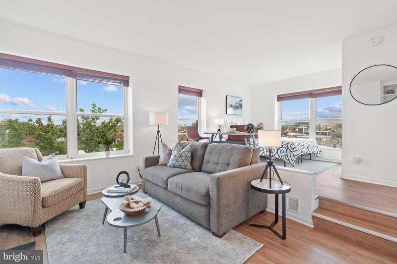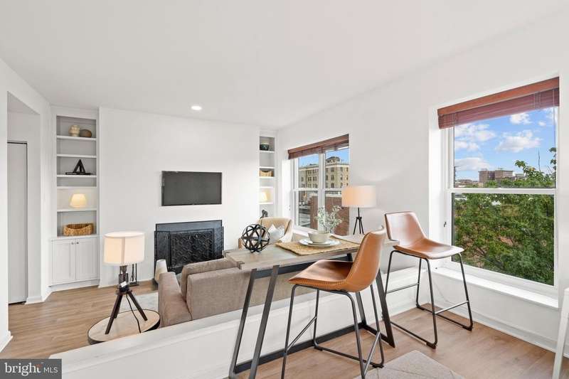 TWILIGHT OPEN HOUSE - Tue, Oct 21 4:00 PM - 6:00 PM! Welcome to the most charming corner penthouse condo in DC! This beautiful unit features five large windows with picturesque views of our nation's capital, including the Washington Monument. The charming kitchen has an open counter looking into the sunlit living area with a wood-burning fireplace, and you'll find cute built-in shelves and storage cabinets throughout the unit. Every corner of this penthouse has been thoughtfully designed. The two-level layout makes this space truly unique, giving a multidimensional vibe to an already fabulous oasis. Just when you thought it couldn't get any better, you'll find a spacious walk-in closet, plus a large closet near the entrance. The in-unit washer/dryer is a total game-changer, and the updated bathroom features a walk-in shower with its own window - yes, a window! Enjoy city living at its finest, just minutes from your favorite restaurants, cafes, and shops in Dupont, U Street, and 14th Street, and close to Red and Yellow/Green Line metros. Updates include HVAC system with Nest thermostat (2021), hot water heater (2019), windows and treatments (2018), and combination washer/dryer (2018). Don't miss your chance to call this sun-drenched, thoughtfully designed penthouse your own - complete with unforgettable views from every angle.