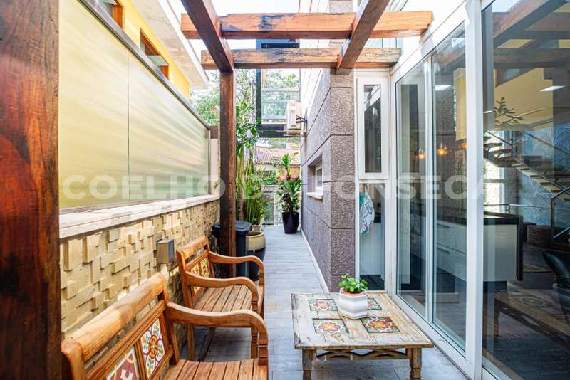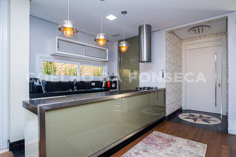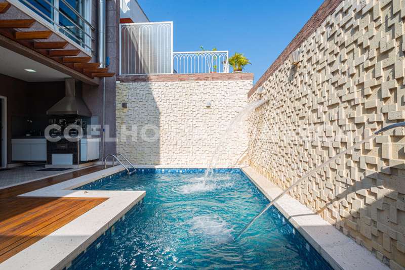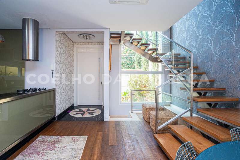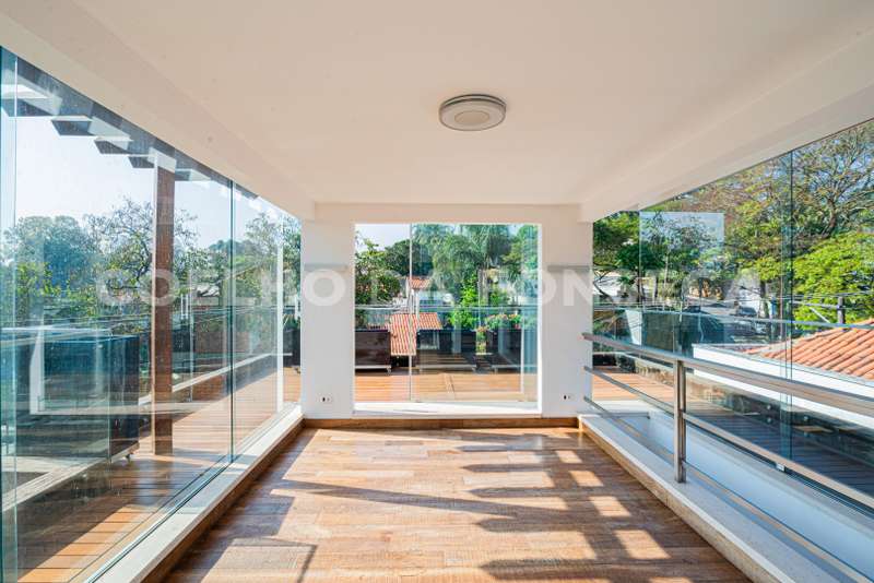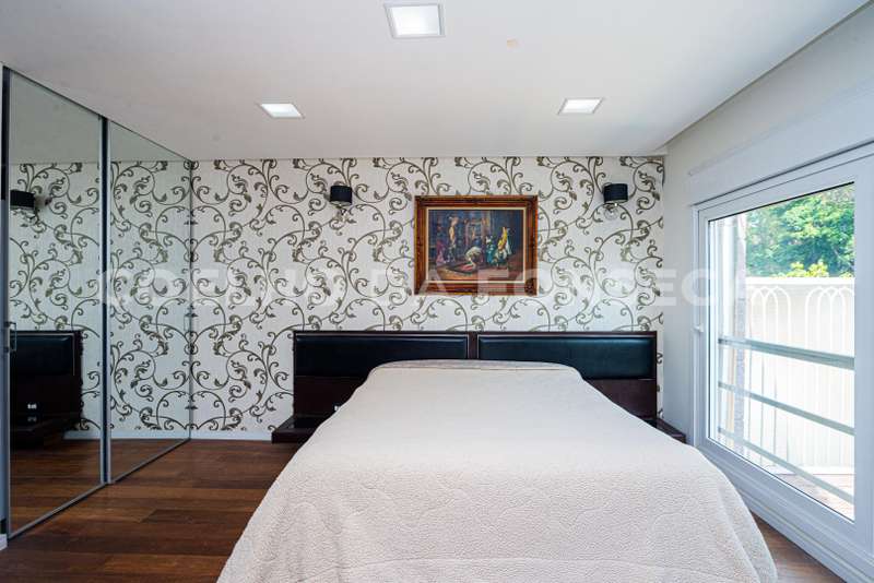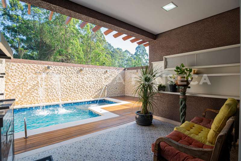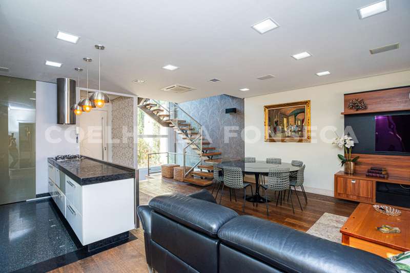 Garagem subterrânea para até seis veículos, depósito e banheiro. No primeiro piso, há um living, cozinha americana integrada, lavabo, terraço com pergolado elaborado com madeira nobre de demolição, área gourmet com churrasqueira, deck em madeira com chuveiro, piscina aquecida com iluminação em LED e hidro. Além disso, uma área de serviço com lavanderia. O segundo piso possui uma área íntima com três suítes, com destaque para a suíte master com vista privilegiada para o verde preservado da Granja Julieta e um amplo closet. O quarto e último piso apresenta um rooftop envidraçado e terraço para contemplar o pôr do sol.
