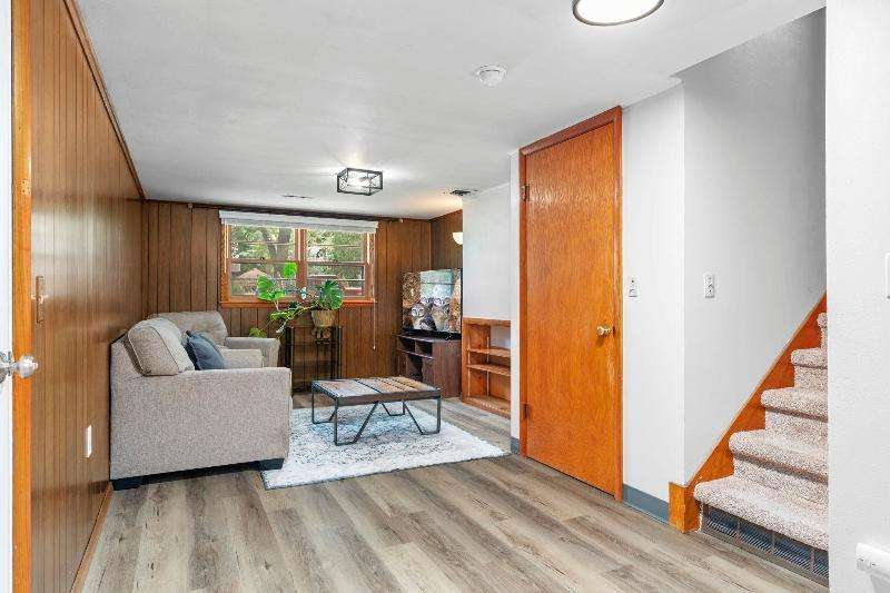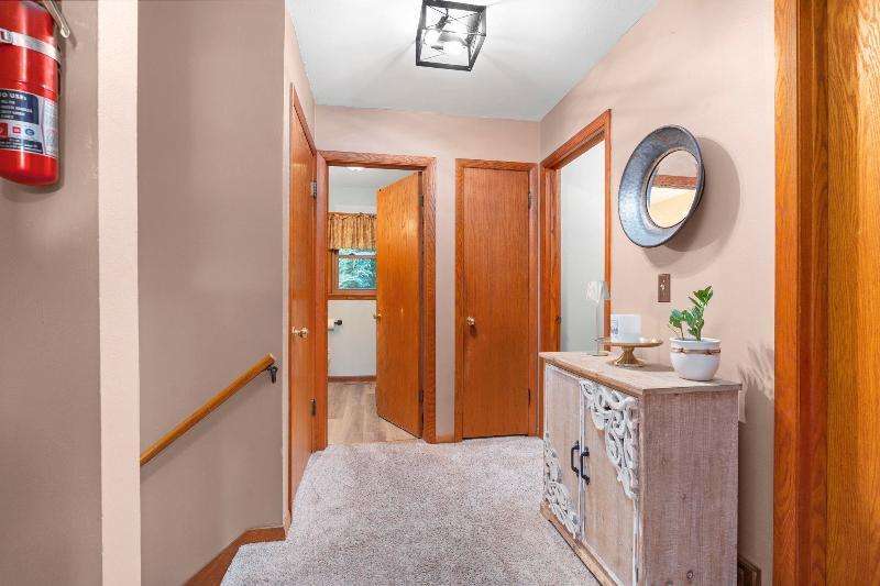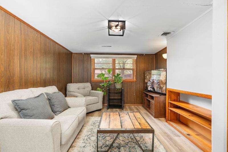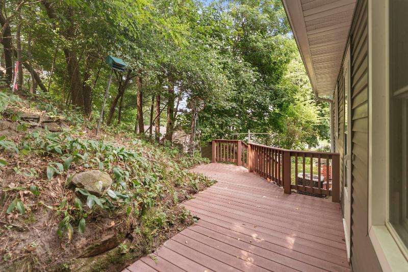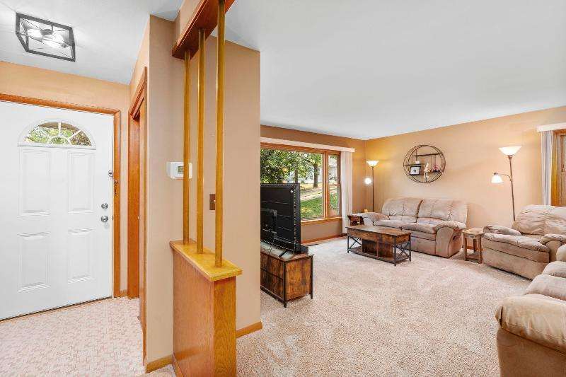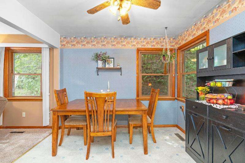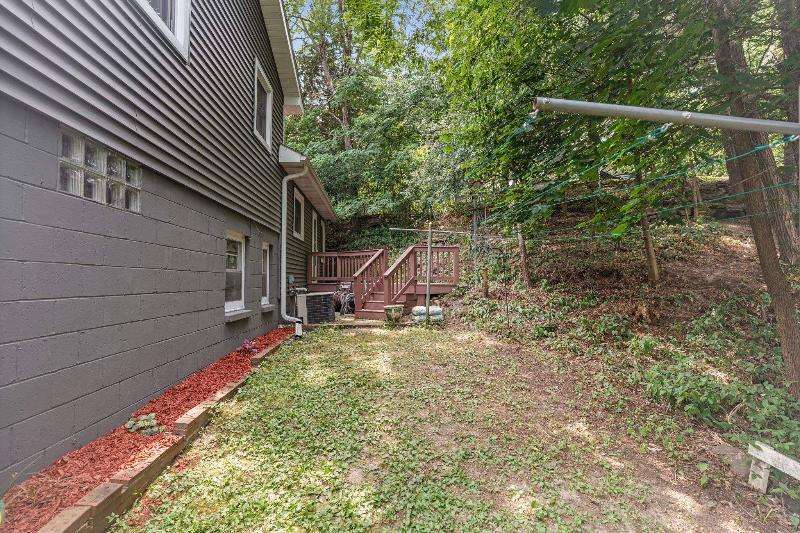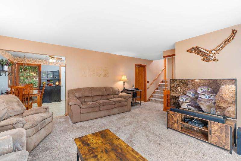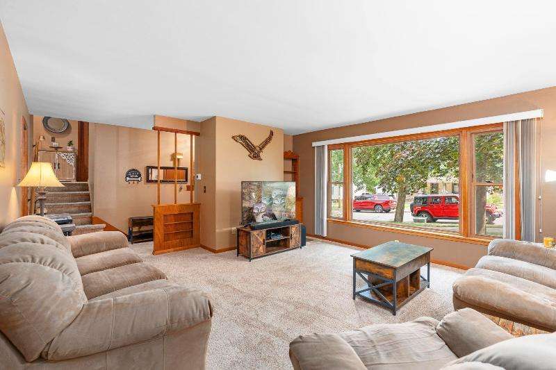 Charming multi-level home nestled against a serene wooded backdrop, offering both comfort & character. The bright living room, anchored by a large picture window, flows into the eat-in kitchen featuring warm wood cabinetry, ample counter space, & a convenient breakfast bar. Upstairs, you'll find three comfortable bedrooms and a beautifully updated bath, while the lower-level family room offers a cozy retreat w/large windows & classic wood paneling. Step outside to enjoy the peaceful back deck, surrounded by mature trees that provide shade & privacy. Updated siding, thoughtful landscaping, & a 1-car attached garage add to the home's appeal. Ideally located near parks, schools, & local amenities, this move-in ready home is perfect for relaxing or entertaining. Home Warranty INC!
