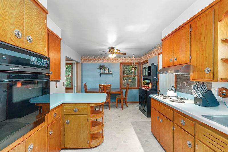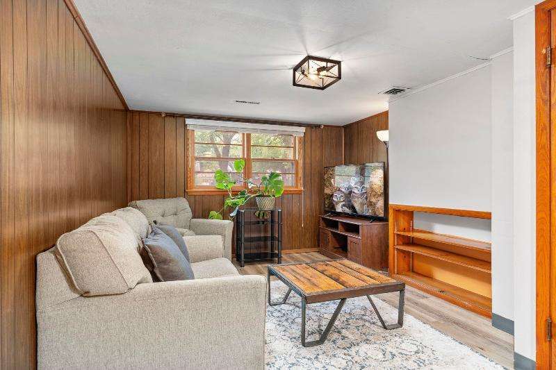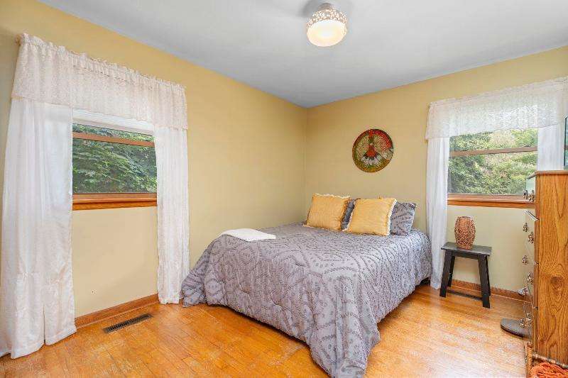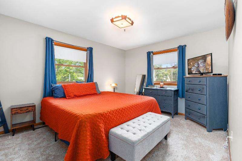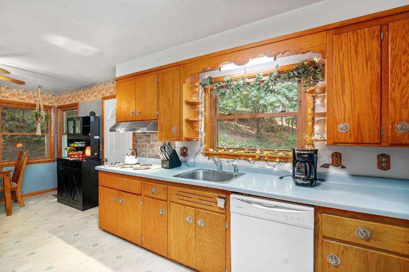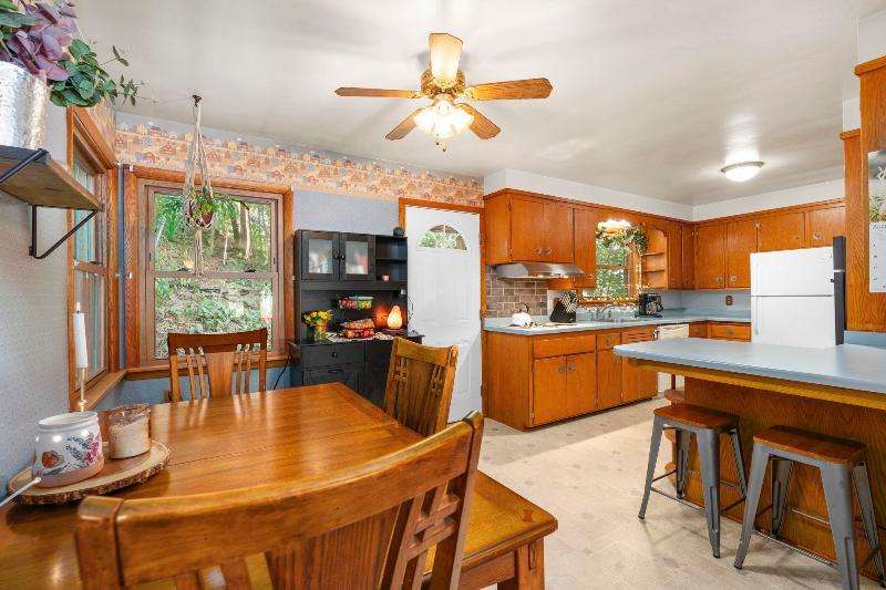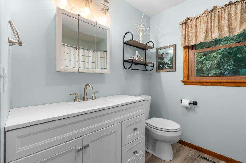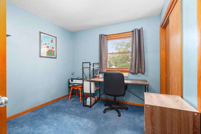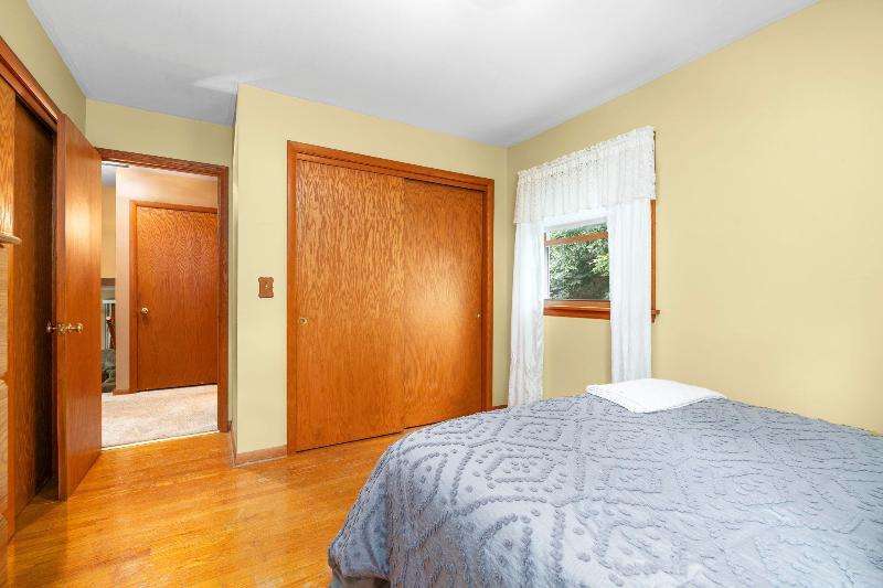 Charming multi-level home nestled against a serene wooded backdrop, offering both comfort & character. The bright living room, anchored by a large picture window, flows into the eat-in kitchen featuring warm wood cabinetry, ample counter space, & a convenient breakfast bar. Upstairs, you'll find three comfortable bedrooms and a beautifully updated bath, while the lower-level family room offers a cozy retreat w/large windows & classic wood paneling. Step outside to enjoy the peaceful back deck, surrounded by mature trees that provide shade & privacy. Updated siding, thoughtful landscaping, & a 1-car attached garage add to the home's appeal. Ideally located near parks, schools, & local amenities, this move-in ready home is perfect for relaxing or entertaining. Home Warranty INC!
