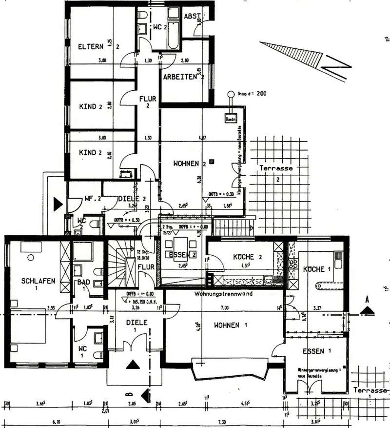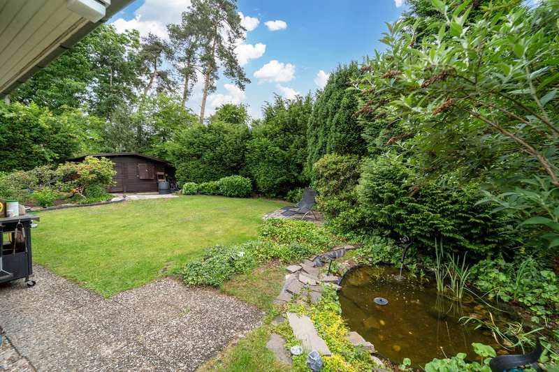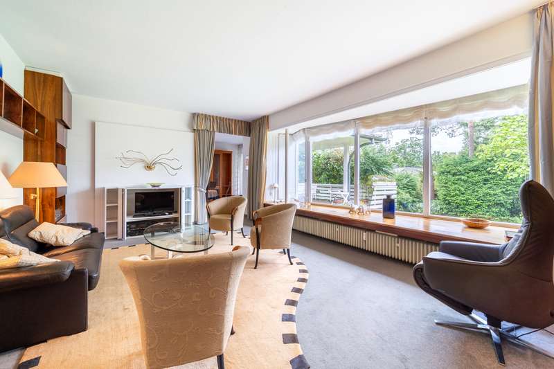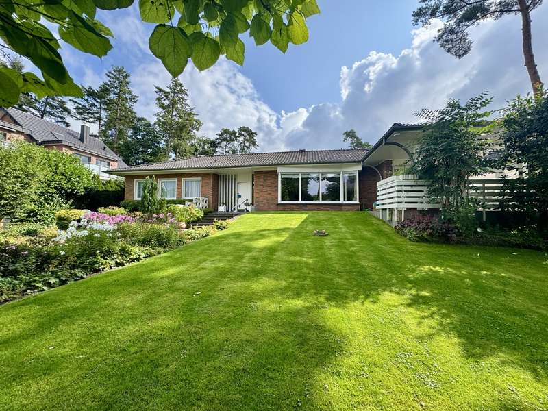 We are pleased to present this spacious and charming bungalow with approx. 293 m² of living space on an impressive plot of approx. 1,444 m² in one of the most sought-after residential areas of Bielefeld-Senne. This detached house was originally built in 1958 in a quiet yet well-connected location close to nature. Extensive extensions and renovations were carried out in 1968 and 1990 - including a change of use to a two-family house. Today, the property presents itself as an ideal home for large families, multi-generational living or as a combination of owner-occupation and investment. A real highlight is the ground-floor design of this two-family home: all living areas are on just one floor. This makes the property not only particularly comfortable, but also versatile. The room layout is well thought-out and comfortable. The house comprises two clearly separated living units with a total of eight rooms, two kitchens, three full bathrooms and two guest toilets as well as several storage and utility rooms. The first residential unit offers a spacious living and dining area with access to the sunny terrace, a separate kitchen, a bedroom, a daylight bathroom with bathtub and shower and a guest WC. A large hallway and a practical corridor area create a pleasant sense of space. The semi-basement area accommodates further, fully usable living space, which was converted from a former swimming pool area. In addition to its spacious design, this area also offers direct access to a separate terrace on the garden level - an ideal retreat for teenagers, guests or as a hobby and work area. The second living unit consists of a further living area with terrace access, two children's rooms, a bedroom and a study. A separate kitchen, a daylight bathroom and a guest WC are also available here. Both units have their own entrances and therefore offer a high degree of privacy. The lovingly landscaped garden with mature trees, sunny south-west orientation and several retreats invites you to relax, play and enjoy. There are two outdoor parking spaces for your vehicles as well as a spacious double garage, which was built at a later date and offers additional comfort. The property is heated by central oil heating. Another plus point: one half of the house is currently rented out, which means that attractive rental income can be generated - we will be happy to provide you with more information on request. The property is in a very well-kept condition and offers plenty of potential for individual design and modernization. Whether as an exclusive single-family home with plenty of space to develop or as a comfortable two-family home - a wide range of dream homes can be realized here. The house is available by arrangement. Have we piqued your interest? Then we look forward to receiving your written inquiry by e-mail!