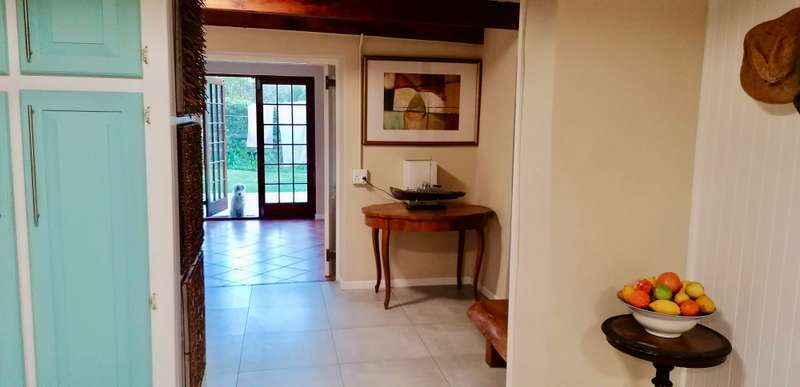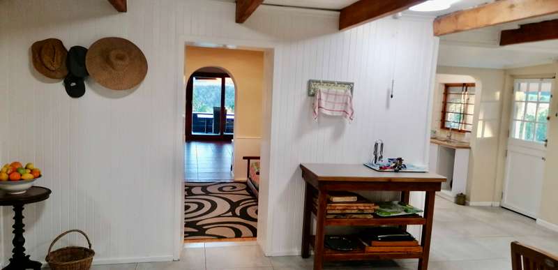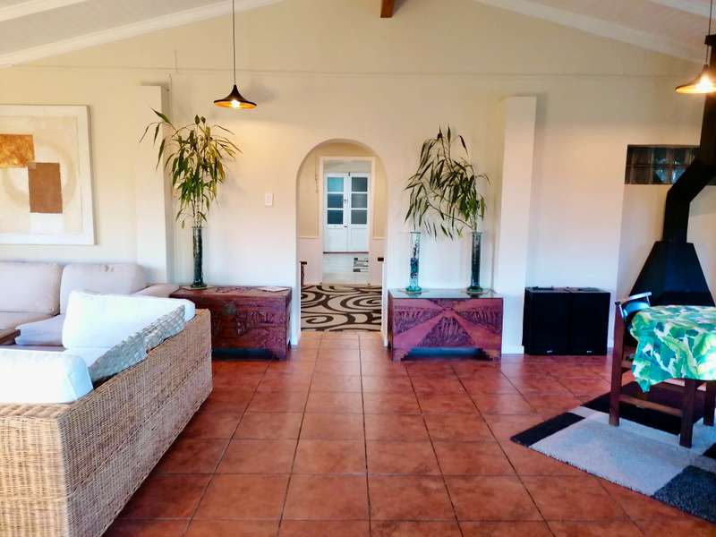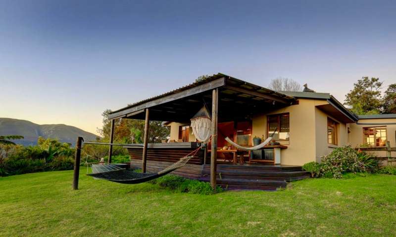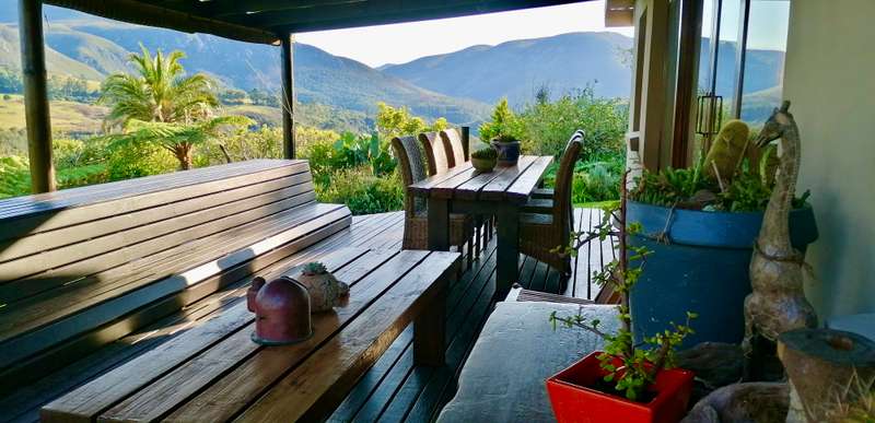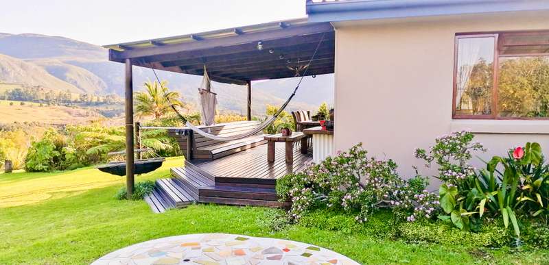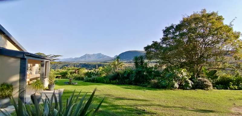 Embrace the charm of country living in this beautifully renovated farm-style house located in the heart of Hoekwil. Set on a spacious 2.2-hectare plot, this property offers breath taking mountain views and a meticulously landscaped garden. Step into an inviting open-plan lounge and dining area with vaulted ceilings and a cozy wood-burning fireplace, perfect for those chilly evenings. Perfect for Entertaining, the large, well-appointed kitchen, complete with an adjoining scullery, makes hosting guests a pleasure. Ample Living Space, with four bedrooms and two bathrooms, this home provides plenty of room for the entire family to enjoy their own private spaces.A dedicated work-from-home office area offers a quiet and productive environment. Stunning Outdoor Living: Enjoy the tranquillity of a spacious covered patio with stunning north and west-facing views, perfect for alfresco dining and relaxation. Multi-Purpose Out-Building, The 87m² out-building includes an extended double garage, a workshop, a bathroom, and laundry facilities. The property is equipped with municipal water and electricity, supplemented by 37,000-liter rainwater tanks and a 5kW inverter & battery backup. Benefit from a large enclosed nursery/vegetable garden and a handy chicken coop for a more self-sufficient lifestyle. The property has approval in principle for a second dwelling, providing exciting opportunities for expansion. Municipal water, electricity, 37,000-liter rainwater tanks, 5kW inverter & battery backup. Discover the perfect blend of comfort, style, and sustainability in this stunning Hoekwil home.