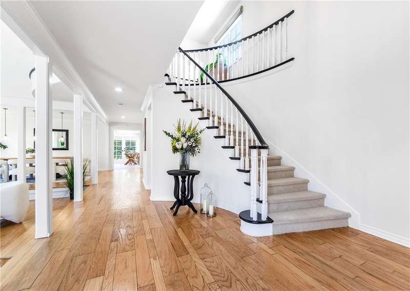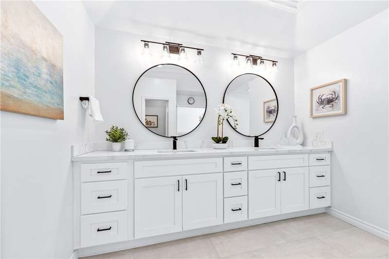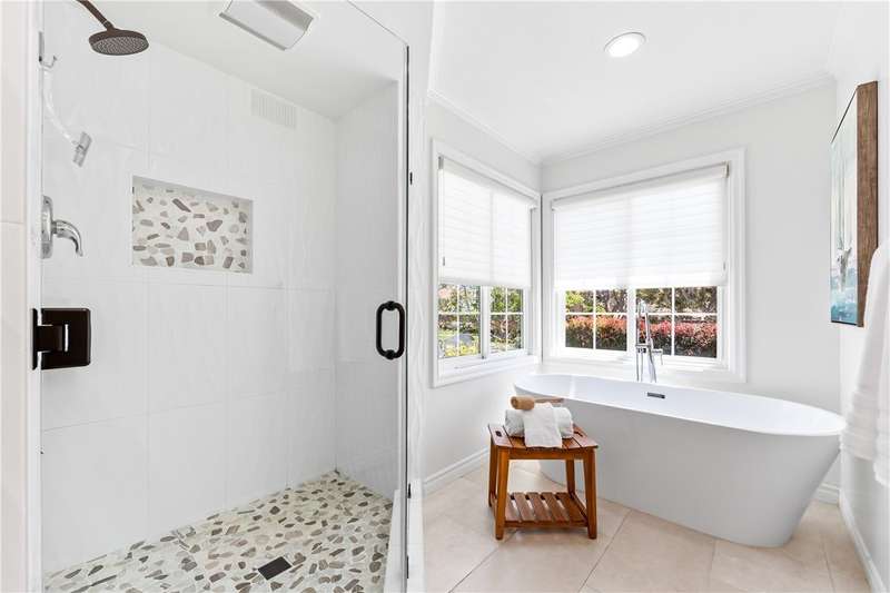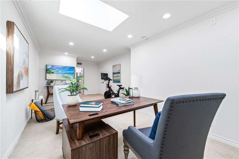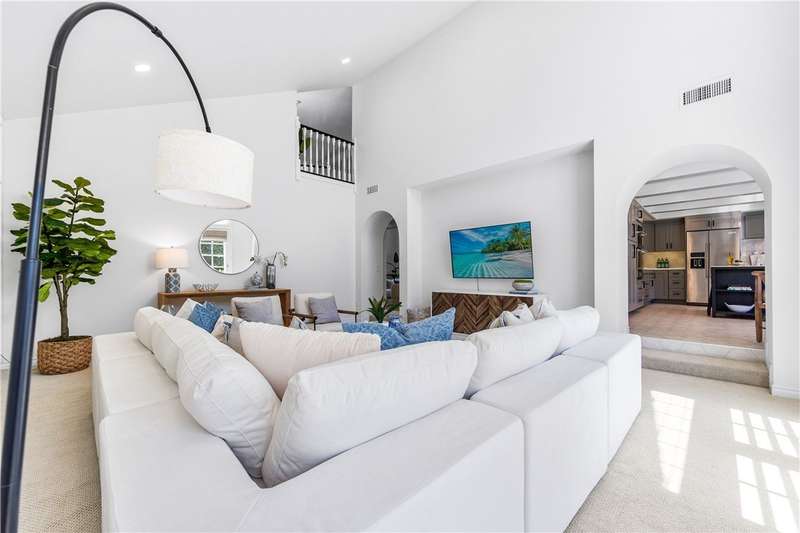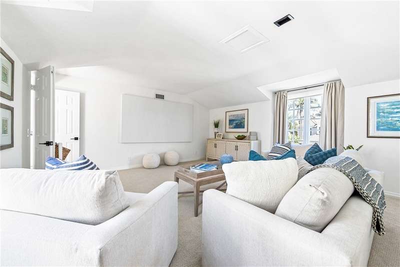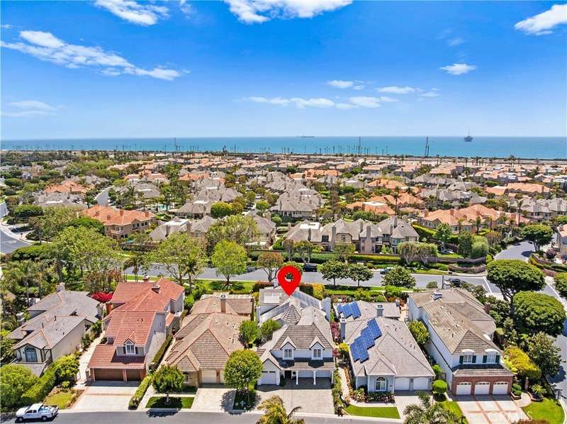 Welcome to the crown jewel of Seacliff on the Greens—a rare estate that redefines coastal luxury just one block from the crashing waves of the Pacific. Set behind the gates of this exclusive, guard-gated community, this residence offers an extraordinary blend of serenity, sophistication, and seaside splendor. Spanning an impressive 4,000 square feet, every inch of this home is designed to impress. Sunlight pours through expansive windows, highlighting soaring vaulted ceilings, wide-plank wood floors, and clean, modern lines that exude effortless elegance. Whether hosting a formal dinner party or lounging with a glass of wine, the layout delivers seamless flow and undeniable style. The main floor stuns with a formal living and dining room, a chic den with full bath, spacious family room, powder room, and a laundry room that makes chores feel luxe. But the showstopper? The gourmet kitchen where coastal cabinetry, a quartz-topped island, and top-of-the-line stainless steel appliances turn every meal into a celebration. Upstairs, retreat to the lavish primary suite, your private sanctuary with dual custom closets (featuring sleek glass-front cabinetry) and a newly reimagined spa-inspired bathroom complete with soaking tub, separate shower, and dual vanities. Two additional bedrooms and an oversized media room (or optional 4th bedroom) offer space to spread out in style. Outside, paradise awaits. The backyard has been completely reimagined for luxurious entertaining with striking hardscapes, a built-in BBQ with concrete countertops, multiple lounge zones, and even a Life Barrel Ergo Elegance Series 4-person sauna (Model EE6G) for beach-day recovery or post-workout indulgence. Don’t forget the outdoor shower because salty hair and sandy feet are part of the dream.