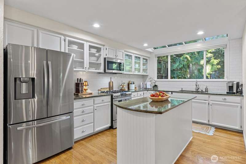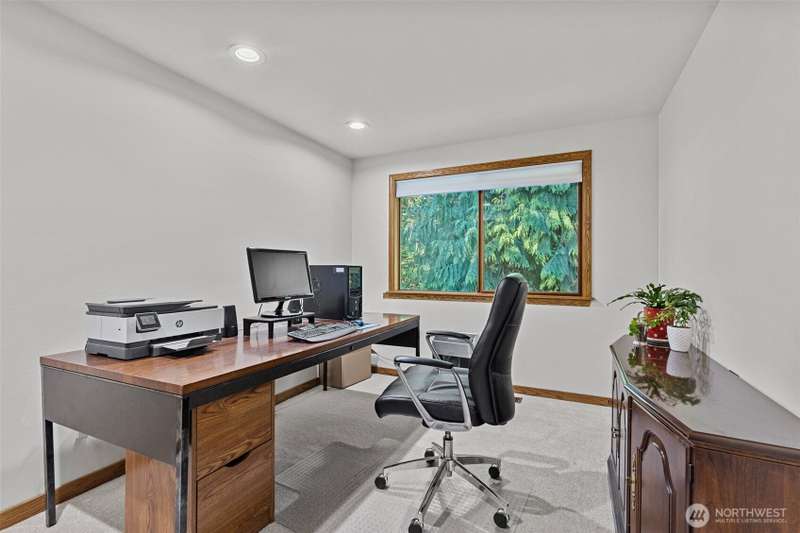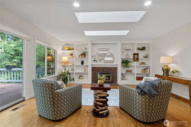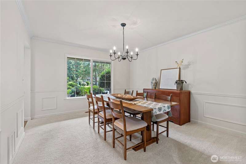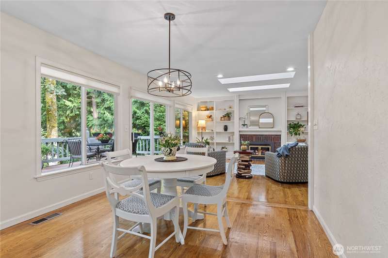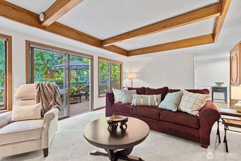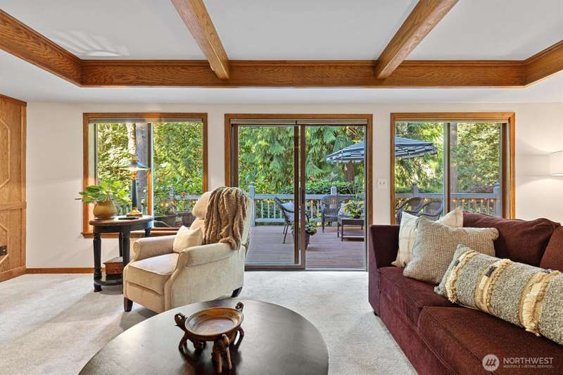 Sweeping views of nature provide a stunning vista and sense of serenity in this custom-styled home. Quality constructed and centrally located to all the amenities Heritage Hills has to offer--private park, trails, sports court, play area, and community pool. Relax or entertain on your over 700 square feet deck, play at the members-only grass-filled park, live and work in multiple spaces built for both privacy and gathering. FIVE bedrooms up and main level bonus room. Multiple skylights bring natural light and openness inside. Timeless craftsmanship and classic appeal including extensive millwork, solid oak coffered ceiling, and arched doorway. New carpet and paint. 40 year roof and AC. Easy commute access. Award winning schools.