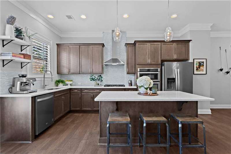 Live the Brookhaven lifestyle in this Parkhaven gated townhome directly across from Blackburn Park and steps to Publix, restaurants, bakeries, coffee shops, and fitness studios. Offering the perfect combination of location, luxury, and convenience, this home provides multiple outdoor living spaces, a flexible floor plan, and high-end upgrades throughout. Main Living Level The open-concept main level is designed for entertaining and everyday living. A fireside living room with a marble surround, custom built-ins, and floating shelves creates a sophisticated focal point. The adjoining chef's kitchen features stained 5-piece shaker cabinetry, quartz countertops, a stylish stone and glass backsplash, and Whirlpool stainless-steel appliances, including a gas range. An oversized island with seating makes the perfect gathering spot, while the spacious dining room comfortably seats 12+ for holidays and dinner parties. Off the kitchen, a private back deck offers another space for grilling or enjoying the outdoors. Primary Suite Retreat The upstairs primary suite overlooks the trees and open green space of Blackburn Park, offering a peaceful escape in the heart of Brookhaven. A tray ceiling, upgraded lighting, and a Custom California Closet system enhance the retreat. The spa-inspired bathroom includes dual quartz-topped vanities, a freestanding soaking tub, and a frameless glass shower with dual showerheads for a true luxury experience. Secondary Bedrooms & Terrace Level Each secondary bedroom features an en suite bathroom and Custom California Closet systems, creating comfort and privacy for family members or guests. On the terrace level, you'll find a large, light-filled bedroom or second living space that opens to a private front patio-perfect for morning coffee, evening cocktails, or hosting friends. This flexible space can easily serve as a media room, office, gym, or guest suite. Additional Features This home is filled with thoughtful upgrades and conveniences, including: - Hardwood floors throughout the terrace and main living levels - Plantation shutters and upgraded lighting fixtures - Custom California Closets in every bedroom - Built-in mudroom cabinetry for organization - A Tesla charger for EV owners - Ensuite bathrooms for all bedrooms Parkhaven is one of Brookhaven's most desirable gated townhome communities, known for its well-maintained grounds, walkable lifestyle, and proximity to everything. Directly across the street, Blackburn Park offers walking trails, playgrounds, tennis courts, and community events. One block away, the brand-new Publix and Town Brookhaven development provide shops, dining, and entertainment just minutes from your door. This location also delivers unbeatable access to Atlanta's best schools, with award-winning public schools and prestigious private schools nearby, including Marist School, St. Martin's Episcopal, OLA. Commuting is a breeze with quick access to Peachtree Road, I-85, and GA-400, putting Buckhead, Midtown, Emory, and the Perimeter within easy reach. Whether you're seeking a low-maintenance home with high-end finishes, a lock-and-leave lifestyle, or a community-centered neighborhood, this Brookhaven townhome delivers it all. With its combination of modern design, multiple outdoor living areas, walkability to shops and restaurants, proximity to parks and schools, and luxury upgrades, this home stands out as one of the best opportunities in the area.