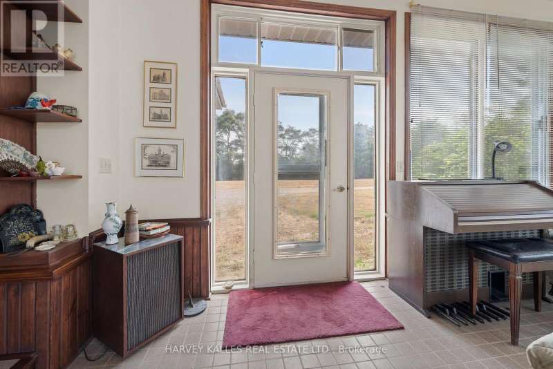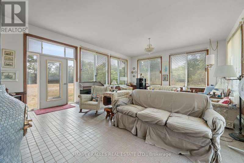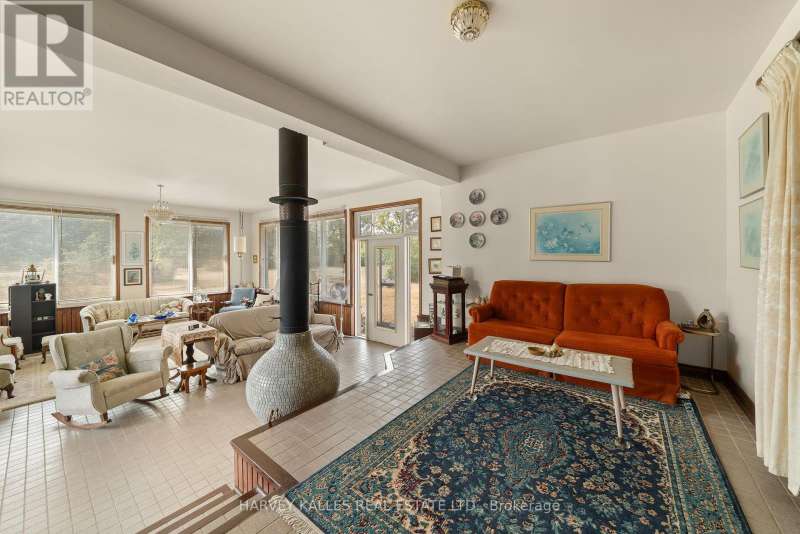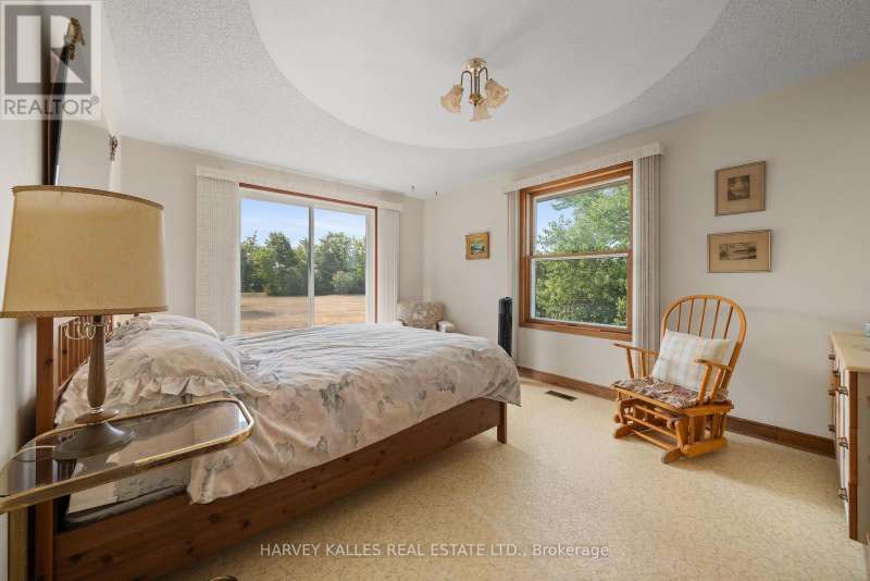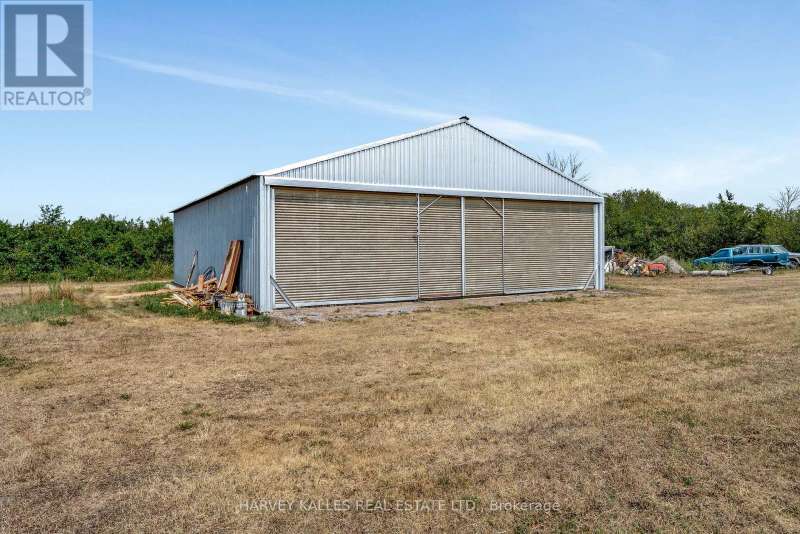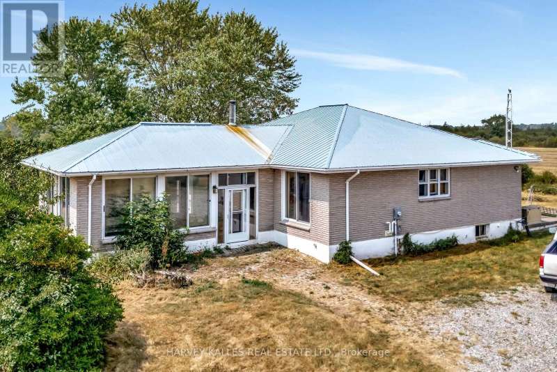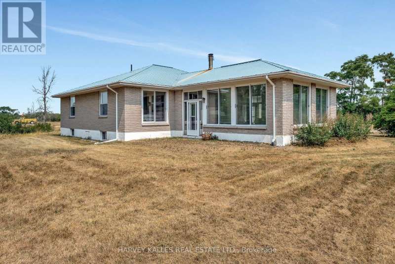 Fly right into your own rural retreat in Prince Edward County! Spanning over 150 acres of farmland and trees, this property offers a rare and exciting feature: a private grass airstrip with its own airplane hangar. Tucked along a quiet county road in the south end of the County, this one-of-a-kind property opens the door to endless possibilities. The 1980s all-brick bungalow provides over 1,900 sq. ft. of living space, filled with character and potential. The main level includes three bedrooms (two with their own vanity and sink for added convenience), two full bathrooms, a central kitchen and dining area, and a bright office tucked just off the kitchen. The standout feature? A spacious living room with three walls of windows and a striking Meridian freestanding ceramic wood-burning stove as the focal point. Mid-century design elements run throughout, offering the perfect canvas for you to enjoy as is or update into a truly distinctive home that reflects your style. The partially finished lower level extends the opportunity for more living space, and offers two additional bedrooms. Outside, a detached double garage provides plenty of room for vehicles, storage, or workshop space - especially convenient is the attached 3-piece bath. The back side of this building houses a studio in-law suite with its own 3-piece ensuite. For aviation enthusiasts, the private airstrip is a dream, equipped with GPS bearing and uniquely oriented into the prevailing wind (the only one in the area). While not a registered aerodrome, it makes for an extraordinary feature that sets this property apart. With its mix of privacy, space, and unique amenities, this property is truly one to experience in person! (id:6370)