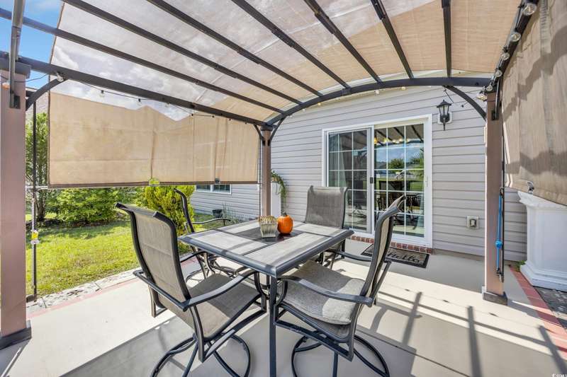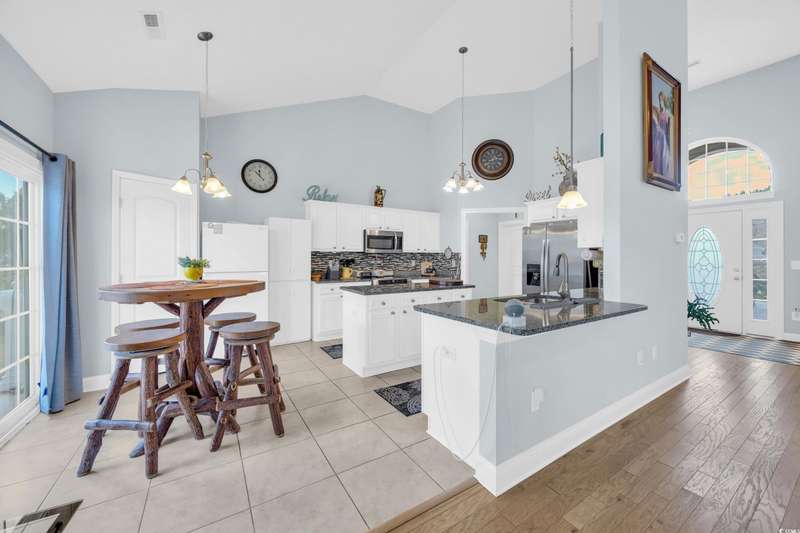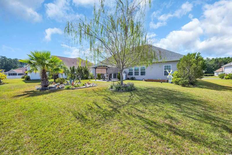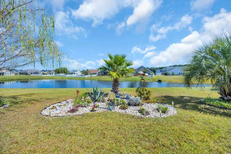 Welcome to 426 Camrose Way, a meticulously maintained 3-bedroom, 2-bath home that blends timeless design with modern comfort, featuring a serene water view, abundance of natural light, thoughtful open-concept layout, and situated in an established neighborhood just minutes from the best of Myrtle Beach. The open layout is ideal for both everyday living and entertaining, featuring a spacious living area with vaulted ceilings, a dedicated dining room, and a split layout that ensures privacy between the primary and secondary bedrooms. Hardwood floors flow throughout the home, while the kitchen and baths feature oversized tile for style and durability. The kitchen combines style with everyday convenience, showcasing granite countertops, and stainless steel appliances. The primary suite stands out with 10-foot tray ceilings, dual walk-in closets, and a beautifully appointed bath with a walk-in shower. A few additional highlights include a 2-car garage, brick accents, and a large attic for storage. Outside, enjoy relaxing on the back patio with a lake view and beautiful landscaping. This home is just a short drive to major corridors, the beach, shopping, dining, and entertainment.