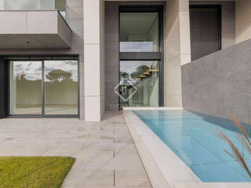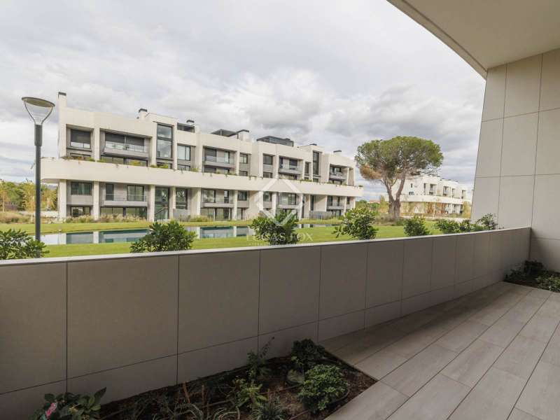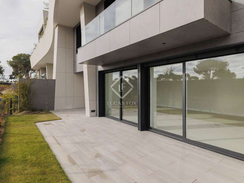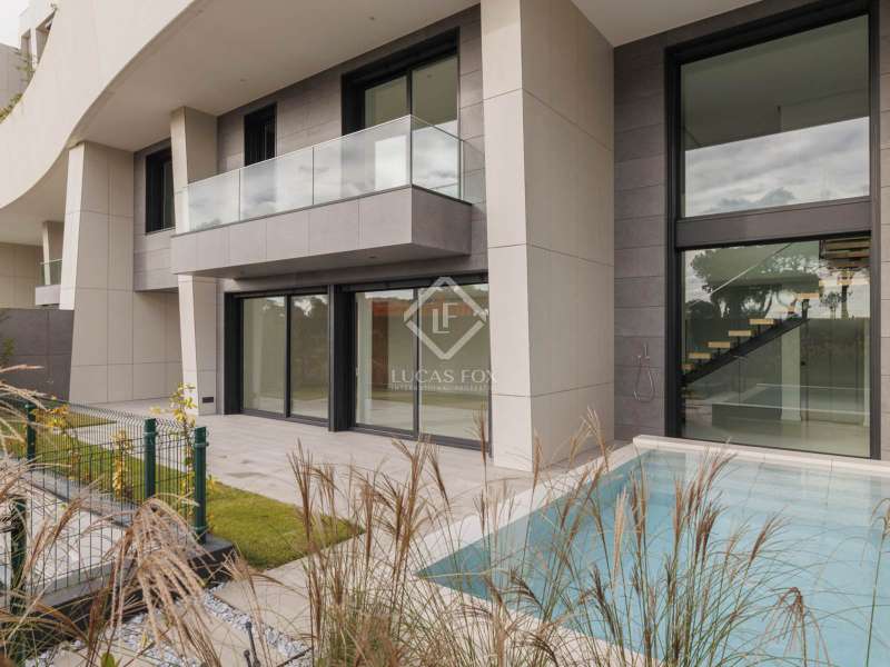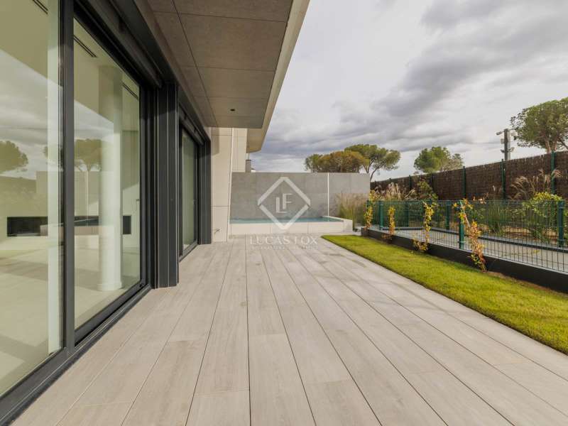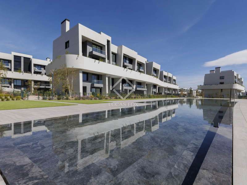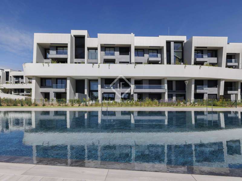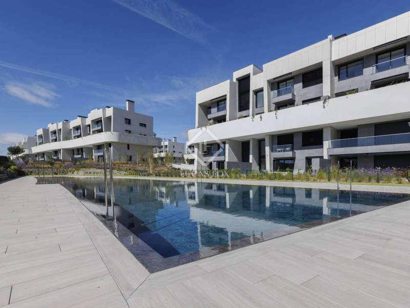 Lucas Fox is pleased to present this wonderful new build ground floor apartment of 315 m² with a private garden of 115 m² with swimming pool in the Sky Villas area of LGC7, a gated development with 24 hour security in La Finca , Pozuelo. The new build development Sky Villas, part of the LGC7 Residential complex, will be the most luxurious and exclusive development in the entire LGC development. In this context, the Sky Villas emerge offering a new concept of property, since you will not have to decide between having a garden, enjoying privacy, contemplating the views or having a swimming pool. You will not have to give up the advantages of living in a community either. The maximum privacy enjoyed by a single-family home, one of the keys to the Sky Villas concept, is provided by the exquisite care in the architectural design. There are more than 40,000 m² of communal gardens, with no roads interrupting them, in addition to the private gardens of each of the Sky Villas. This property has a day area surrounded by a terrace- garden with a swimming pool, located on the ground floor, and a night area on the first floor . They are connected by a spectacular staircase and a lift . The innovative and exclusive architectural configuration of the building as a whole manages to provide this property with total privacy and guarantees the peace of mind of not being seen from above. On the ground floor, there is the day area which is surrounded by a terrace- garden of between 100 and 190 m², with living areas facing north and south (winter terrace, summer terrace), which includes a private pool. It is accessed through a double-height space open to the staircase and with views to the south. It has a south-facing living-dining room of 56 m², a large kitchen of 23 m² open to the dining room and a service area that includes a pantry, utility room, drying room, staff bedroom, service bathroom and guest toilet. On the first floor, there is the night area with a double-height hall leading to the bedrooms. The main bedroom has a surface area of 48 m² and includes a large dressing room and a bathroom with a shower and bathtub, a dressing table and two toilets. It also has its own 7 m² terrace and magnificent views to the south. The three secondary bedrooms have their own bathroom . The property has access to five parking spaces and enjoys maximum energy efficiency with minimal environmental impact. Please contact for more information.