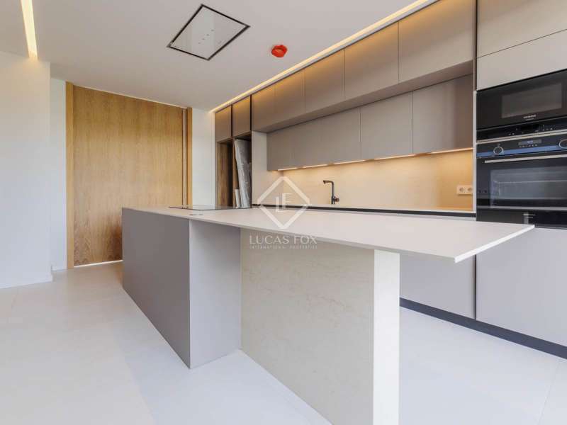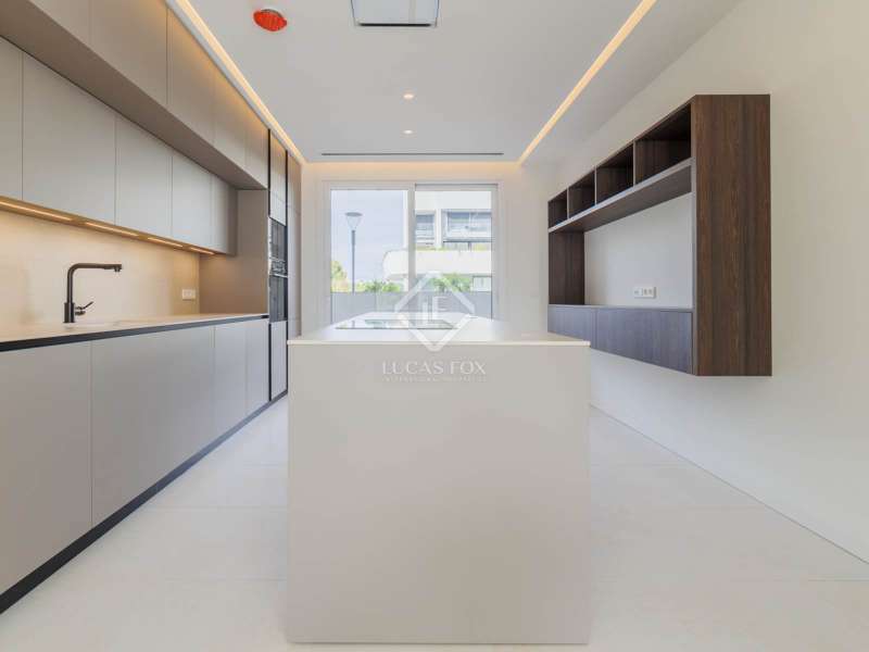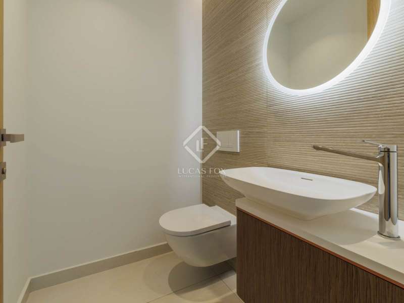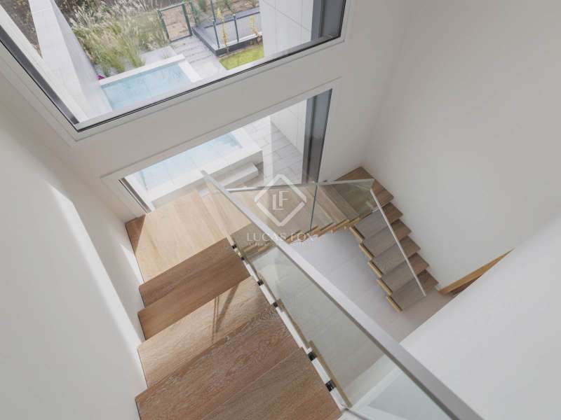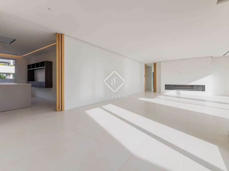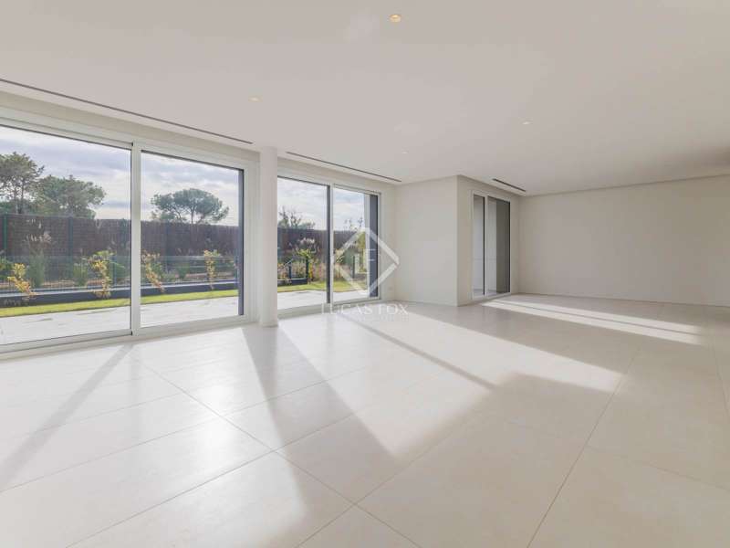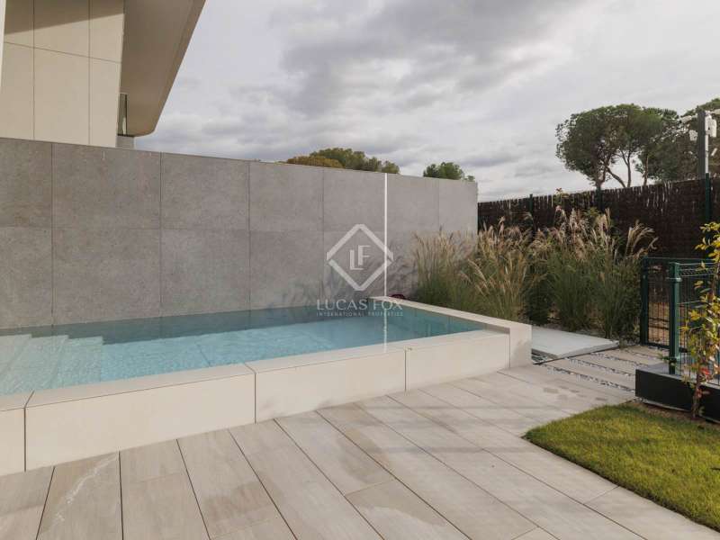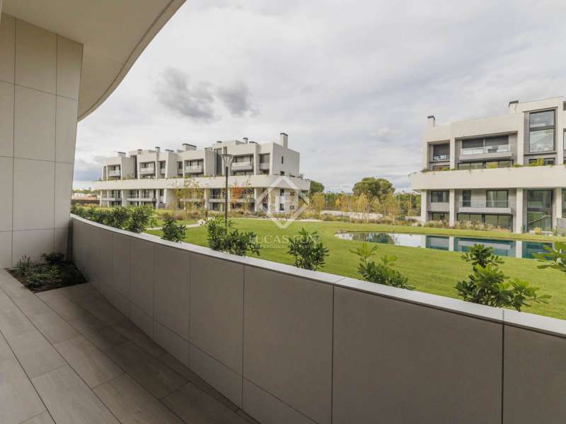 Lucas Fox is pleased to present this wonderful new build ground floor apartment of 315 m² with a private garden of 115 m² with swimming pool in the Sky Villas area of LGC7, a gated development with 24 hour security in La Finca , Pozuelo. The new build development Sky Villas, part of the LGC7 Residential complex, will be the most luxurious and exclusive development in the entire LGC development. In this context, the Sky Villas emerge offering a new concept of property, since you will not have to decide between having a garden, enjoying privacy, contemplating the views or having a swimming pool. You will not have to give up the advantages of living in a community either. The maximum privacy enjoyed by a single-family home, one of the keys to the Sky Villas concept, is provided by the exquisite care in the architectural design. There are more than 40,000 m² of communal gardens, with no roads interrupting them, in addition to the private gardens of each of the Sky Villas. This property has a day area surrounded by a terrace- garden with a swimming pool, located on the ground floor, and a night area on the first floor . They are connected by a spectacular staircase and a lift . The innovative and exclusive architectural configuration of the building as a whole manages to provide this property with total privacy and guarantees the peace of mind of not being seen from above. On the ground floor, there is the day area which is surrounded by a terrace- garden of between 100 and 190 m², with living areas facing north and south (winter terrace, summer terrace), which includes a private pool. It is accessed through a double-height space open to the staircase and with views to the south. It has a south-facing living-dining room of 56 m², a large kitchen of 23 m² open to the dining room and a service area that includes a pantry, utility room, drying room, staff bedroom, service bathroom and guest toilet. On the first floor, there is the night area with a double-height hall leading to the bedrooms. The main bedroom has a surface area of 48 m² and includes a large dressing room and a bathroom with a shower and bathtub, a dressing table and two toilets. It also has its own 7 m² terrace and magnificent views to the south. The three secondary bedrooms have their own bathroom . The property has access to five parking spaces and enjoys maximum energy efficiency with minimal environmental impact. Please contact for more information.