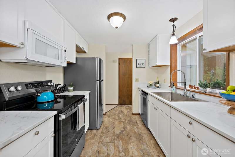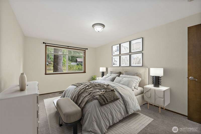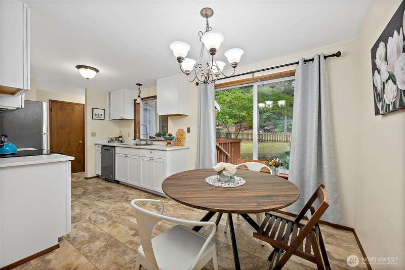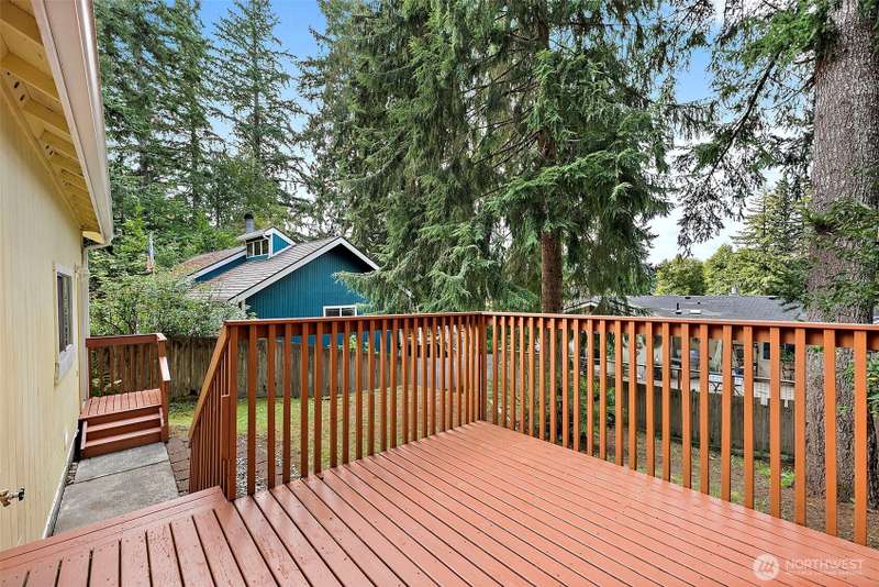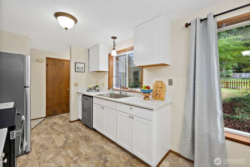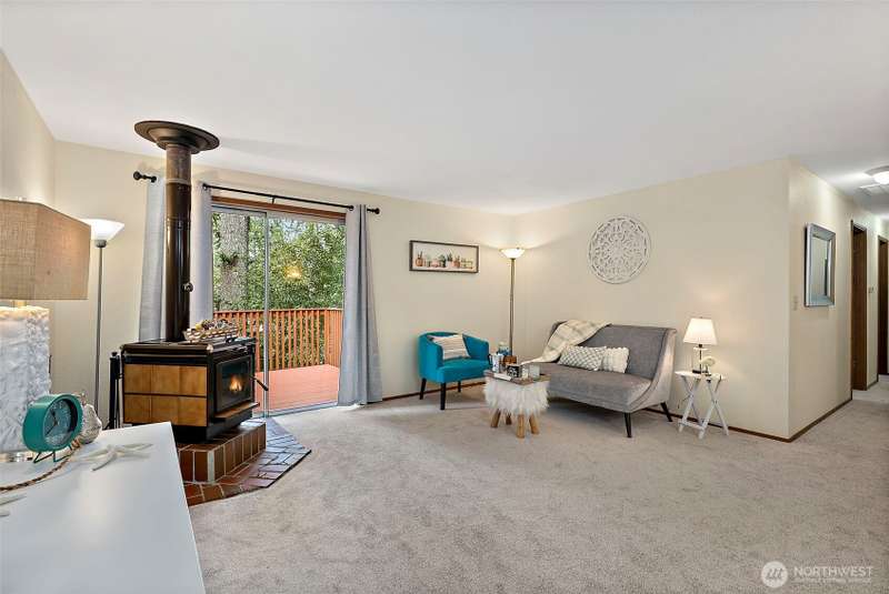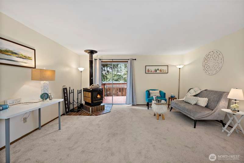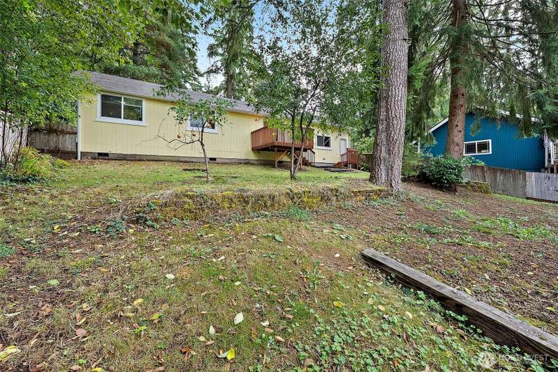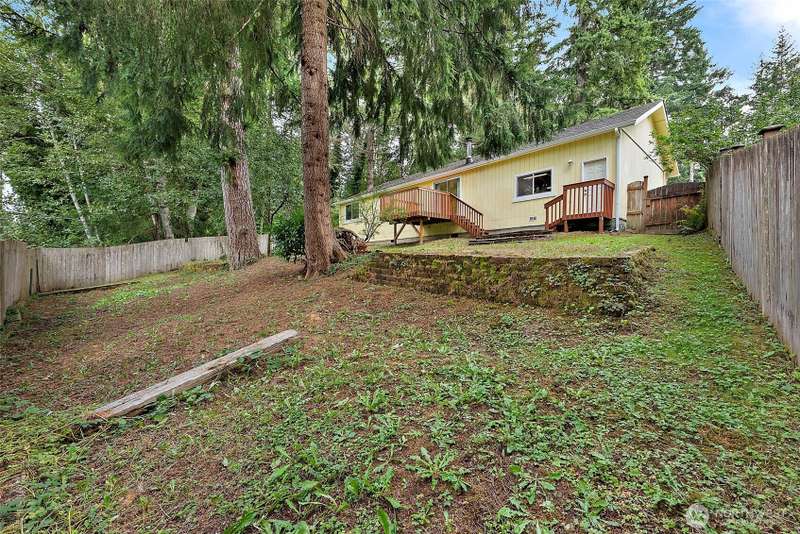Move-in ready Rambler in desirable Lake Symington! This charming 3-bedroom, 1-bath home offers 1,128 sqft of comfortable living with thoughtful updates throughout. Enjoy a brand-new kitchen with modern appliances, an updated bathroom, and fresh carpet. Woodstove will add the warmth in chilly winter days. Relax or entertain on the back deck overlooking the fenced yard! A partial view from the bedrooms. The extra-large garage provides ample space for parking, storage, or projects. Additional upgrades include newer (2 year old) gutters for peace of mind. Nestled in a welcoming community with lake access and park, this home is the perfect blend of cozy and convenient--feels like out in the woods, but only 20 min to Silverdale or Bremerton!
