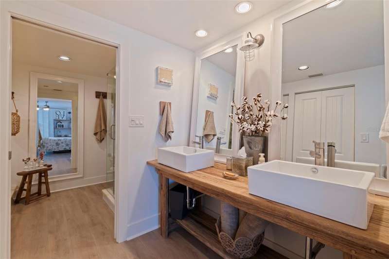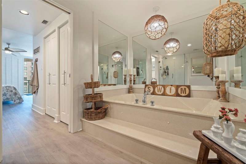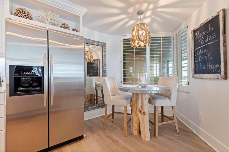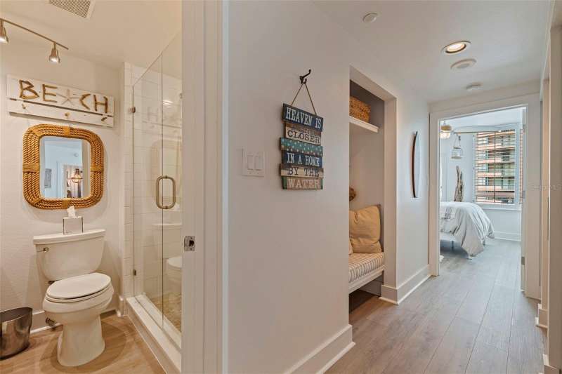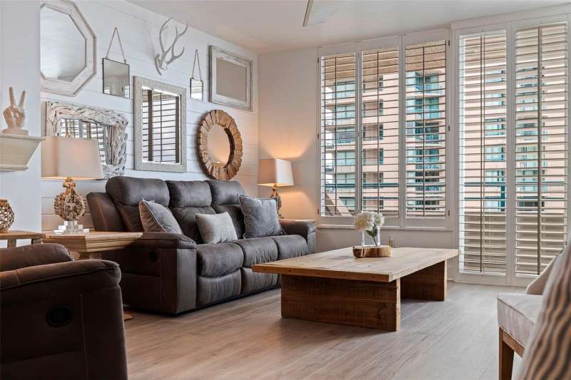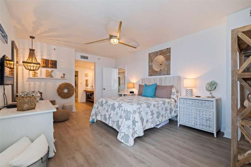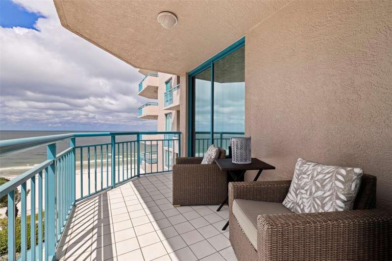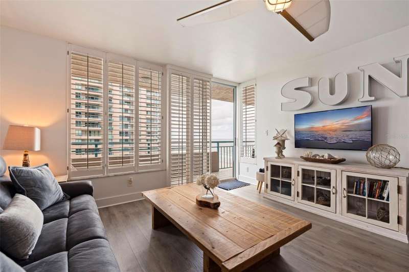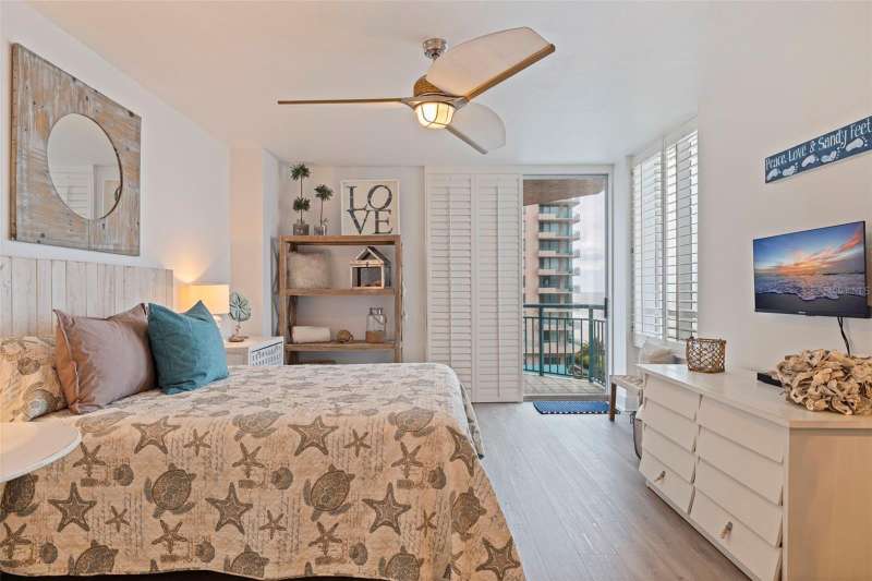 Under contract-accepting backup offers. Welcome to Coastal Chic!! This beautiful fully updated condo with southwest exposure has stunning sunsets everyday & views all the way down the beach. Luxury vinyl planking throughout makes for easy maintenance. Gourmet's delight eat-in kitchen has white shaker cabinets with marble tops & under cabinet lighting. Siemen's SS range, microwave & dishwasher with Whirlpool refrigerator. Breakfast bar opens to the living/dining room. Living room has shiplap accent wall. Popcorn removed from all ceilings. Designer fans & lighting throughout. Plantation shutters at every window & door. All interior doors replaced & updated trim with wide baseboards.. This split bedroom plan affords everyone their privacy. Guest bedroom has a shiplap accent wall along with large walk-in closet. Guest bath also has big tile -in shower. Both baths have custom wood vanities. Primary bedroom & lviing room have sliders that open to spacious balcony. Great for having a cool drink & watching the dolphin at play. Primary bathroom has wood vanity with double sinks, large jetted tub & nice tile shower. Huge walk-in closet. Designer furniture & furnishings included in sale. Fully turnkey. Just bring your toothbrush, bathing suit & flip flops. Coveted DEEDED PRIVATE GARAGE #18 in parking garage. A/C 2023 & water heater 2024. The Ultimar is a world class condo complex on Sand Key of famous Clearwater Beach. Miles of pure white sand. Lush tropical landscaped grounds are expertly maintained. 24 hr guard gated. True Resort Style complex has 3 geo thermal heated pools w/spas, 3 tennis courts, pickle ball, basketball ct, putting green, croquet lawn, grill area, firepit area, shuffleboard, corn hole, gym, steam & sauna, billiards rm, media rm, social rm with catering kitchen and baby grand piano. Walk to great restaurants & shops or catch the Beach Trolley right out in front of the building. A short drive to Tampa & the airport plus all of the sports venues of our championship teams. START LIVING THE FLORIDA BEACH LIFESTYLE TODAY!! Buyer to verify room dimensions. See Video. Call to make an appointment for your private viewing today!