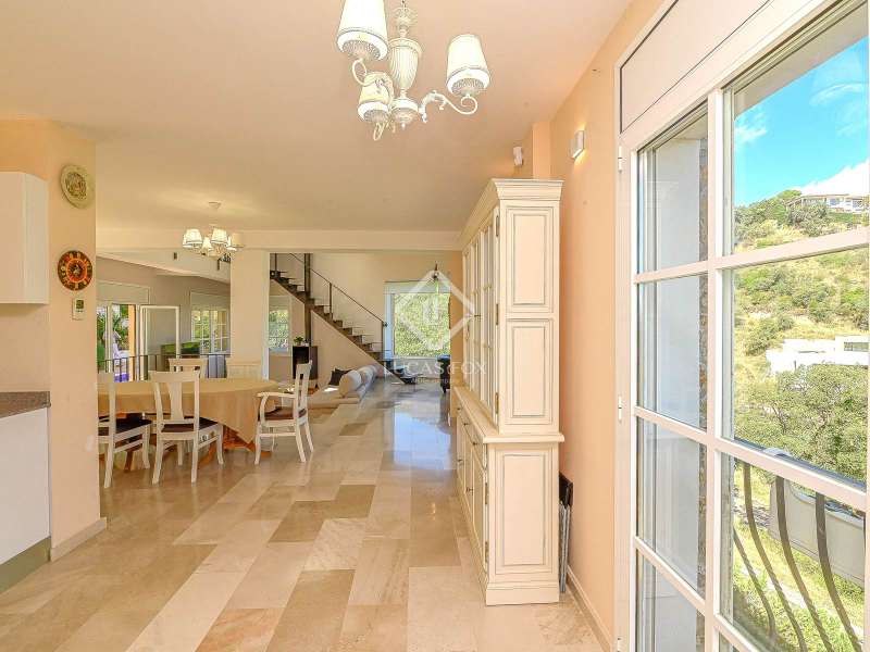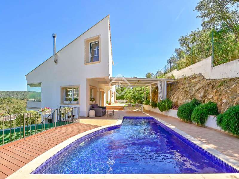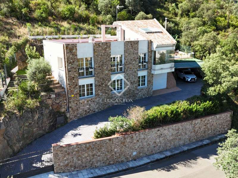 This elegant new build villa is located in the exclusive and quiet residential area of Cim d'Aro, in Platja d'Aro, just minutes from the beach, a wide range of restaurants and shops, the prestigious marina, and the renowned Mas Nou golf course . A privileged location that combines privacy, nature, and convenience. The property, with 262 m² built on a 627 m² plot , is spread over two floors carefully designed to offer light, spaciousness and comfort. On the main floor , there is an entrance hall that leads to the night area, which consists of three double bedrooms, one with a private bathroom, as well as an additional full bathroom serving the rest of the rooms. The garage is also located on this same floor, currently used as a practical multipurpose room. An elegant stone staircase leads to the upper floor , where the day area is located. The bright living-dining room with fireplace, high ceilings, and unobstructed mountain views stands out, with direct access to the garden and pool. The dining area is integrated with a modern, fully equipped open kitchen, which also connects to the exterior and the pleasant barbecue area. There is also a guest toilet on this floor . The main bedroom completes the floor , a spacious and welcoming space with a private bathroom. The perfectly maintained garden features a large swimming pool with a jacuzzi area, an exterior shower, an al fresco dining room with a barbecue, and direct private access to the forest, ideal for enjoying Mediterranean life. Among its amenities, the underfloor heating using aerothermics and the automatic irrigation system in the garden stand out. A villa that combines design, functionality, and natural surroundings in one of the most sought-after areas of the Costa Brava. Don't hesitate to contact us for more information or to arrange a viewing of this exclusive property.