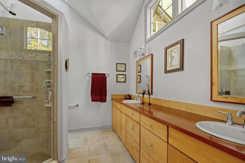 Offer Deadline, Monday, Nov 3rd at noon. Stunning, light-filled post and beam home with 1st floor primary suite! Set on a completely private 9.8-acre lot, this home is nestled among the trees with an open lawn perfect for a garden. Located in a quiet 10-home subdivision that was once a 100-acre farm, the property offers the best of both seclusion and community. Inside, you'll find soaring ceilings, skylights, pine hardwood floors, and expansive windows that bring the beauty of nature indoors. Enjoy peaceful mornings or evenings on the back deck, paver patio, or wraparound porch, ideal for quiet moments or entertaining family and friends. The gourmet kitchen features a Viking gas stove with two ovens, stainless hood, and center island. The main-level primary suite includes a cozy fireplace, 2 walk in closets and the primary bathroom, renovated in 2022, blends comfort and modern style. Second floor features three large bedrooms with large lighted closets, two sitting areas and bathroom with shower/tub and sliding glass doors. The walkout basement is fully finished with a large recreation room, office, and workshop, providing flexible space for work and play. An oversized detached two-car garage (24' x 25'), built in 2014, offers space for cars plus excellent storage. The roof was replaced in 2019 and comes with a transferable warranty. Home has a generator. Ideally located in Lothian, Maryland, this home offers a peaceful country setting with convenience-just 45 minutes to Washington, D.C., 30 minutes to Annapolis, and close to international airports. Within minutes are waterfront restaurants and marinas in Deale and Galesville, horse stables & several popular golf courses. Experience privacy, craftsmanship, and natural beauty, all in one remarkable property.