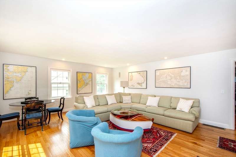 This house checks all the boxes... Great "harbor" location. Welcoming "farmers" porch complete with porch swing. First floor primary ensuite with updated bath, walk in tiled shower and double closets. Renovated kitchen with an abundance of custom cabinets including a center island with quartz counter tops, SS appliances, and a 6 burner gas stove with vented hood. Several options for entertaining include the dining room, living room with gas fireplace and built in cabinetry, or the family room with sound surround. One floor living plus two additional bedrooms and full bath on second level for family or guests. The expansive back deck with pergola and festive lighting is a delight for warm weather entertaining. Well manicured yard surrounded by stone walls and mature plantings. Full walk out basement. Town water and sewer. Must see to appreciate.