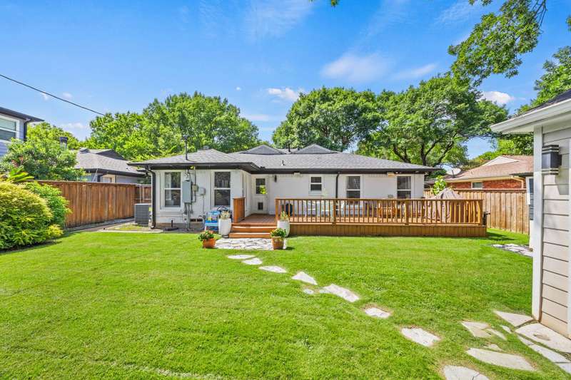 Adorable and completely updated 3-bedroom, 2-bathroom home nestled in the Mockingbird Meadows neighborhood and zoned to Lakewood Elementary! Open floorplan featuring hardwood floors, decorative lighting, and stylish finishes throughout. The updated kitchen is complete with a large island, gas cooktop, double ovens, and a built-in coffee bar. Light-filled primary suite includes a fully updated bathroom and a spacious walk-in closet. Two additional bedrooms provide flexibility for family, guests, or a home office. Outside, the cedar deck overlooks the beautifully landscaped backyard. The air conditioned detached garage is perfect for a home gym, workshop, and extra storage. Located less than half a mile from White Rock Lake, this move-in ready gem offers easy access to scenic trails, popular restaurants, and all the charm of East Dallas living!