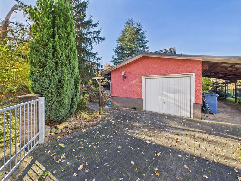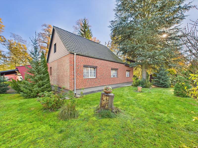 This well-kept detached house from 1937 is located in a quiet and pleasantly grown environment and, with a living space of approx. 92 m², offers ideal conditions for couples or small families who value a spacious property and versatile usage options. The house stands on a fully fenced plot of around 842 m² and has lovingly landscaped outdoor areas with ornamental plants, a pond and a cozy gazebo. The floor plan comprises a total of four rooms that can be used in a variety of ways. A bedroom, a bathroom and various living and work areas are practically and functionally distributed over the ground and upper floors. The solid construction and ongoing maintenance ensure a well-kept overall impression. Significant modernization work was carried out between 1993 and 2004: The roof was renewed in 1993, the house was given an attractive clinker brick façade in 2002 and central heating was installed in 2014, providing reliable warmth. A homely atmosphere awaits you inside. The spacious living area is equipped with a fireplace, which provides pleasant warmth on cooler days and sets a special accent. The floors vary depending on the room with tiles, parquet and carpeting and blend harmoniously into the overall picture. The sanitary area is functionally planned and offers everything needed for daily comfort. The outdoor facilities deserve special attention: the spacious covered terrace invites you to spend sociable hours outdoors, while the garden offers plenty of space for individual design and a variety of leisure activities. A separate garage offers space for a car and has its own storage room, ideal for storing garden utensils or bicycles. The fiber optic connection is already in the street and enables modern, fast internet access. See for yourself the many possibilities of this property during a viewing and discover a house with history that is waiting for new owners. We would be happy to provide you with further information or arrange an individual viewing appointment.