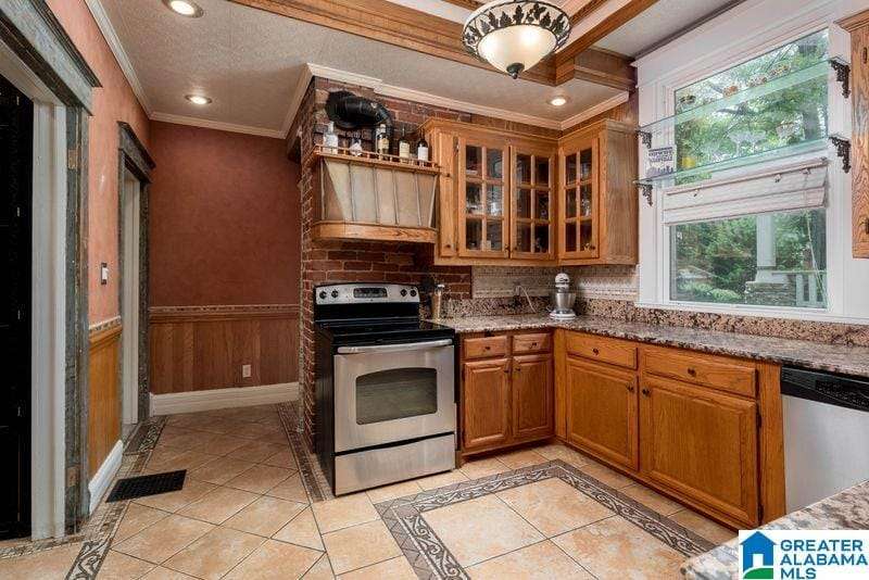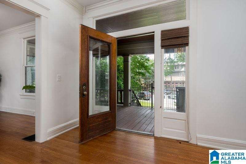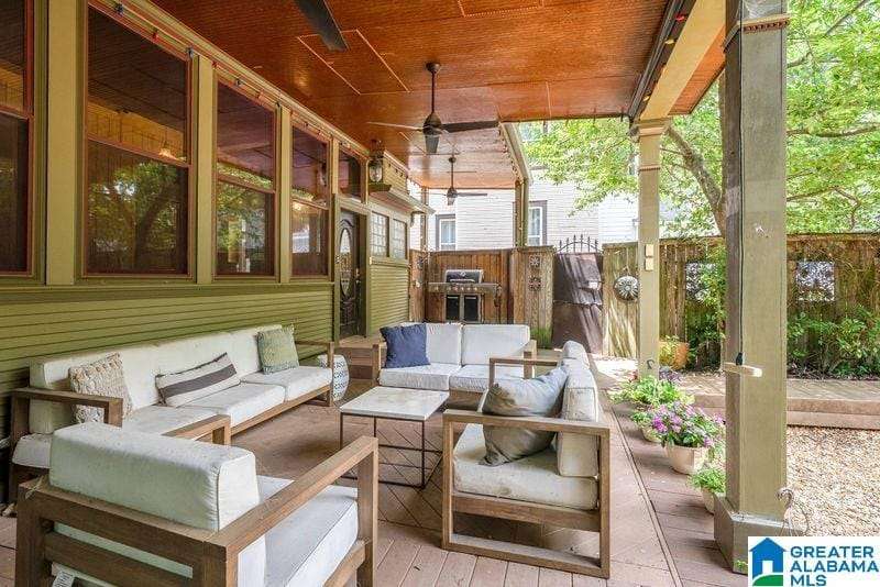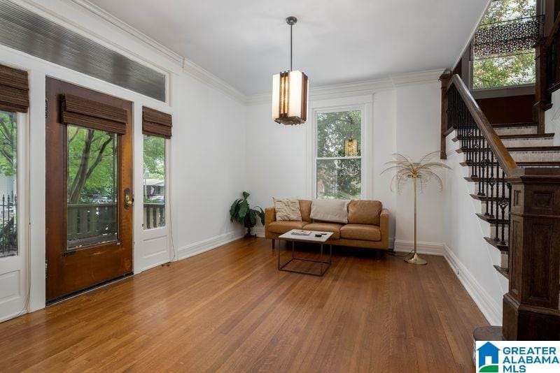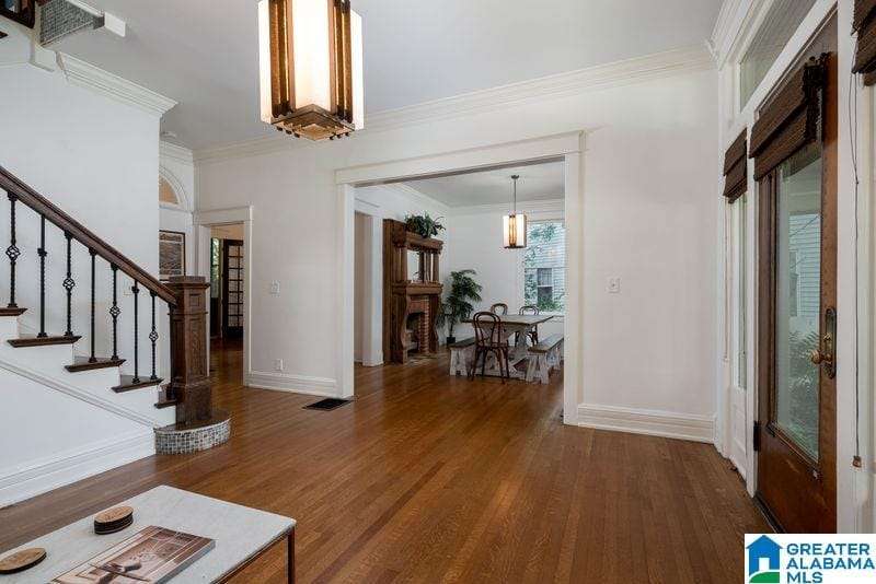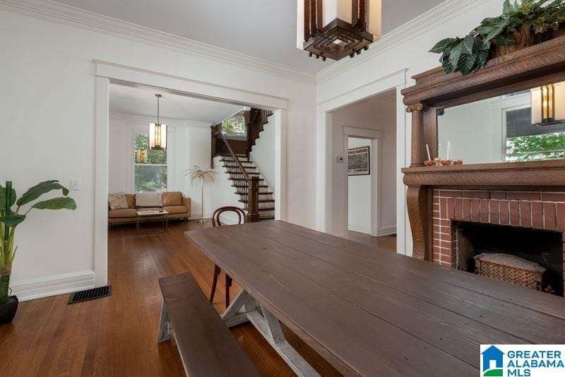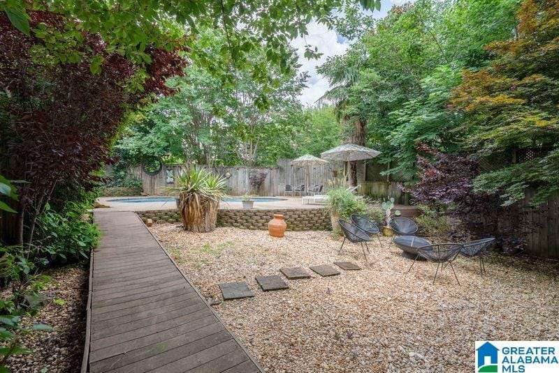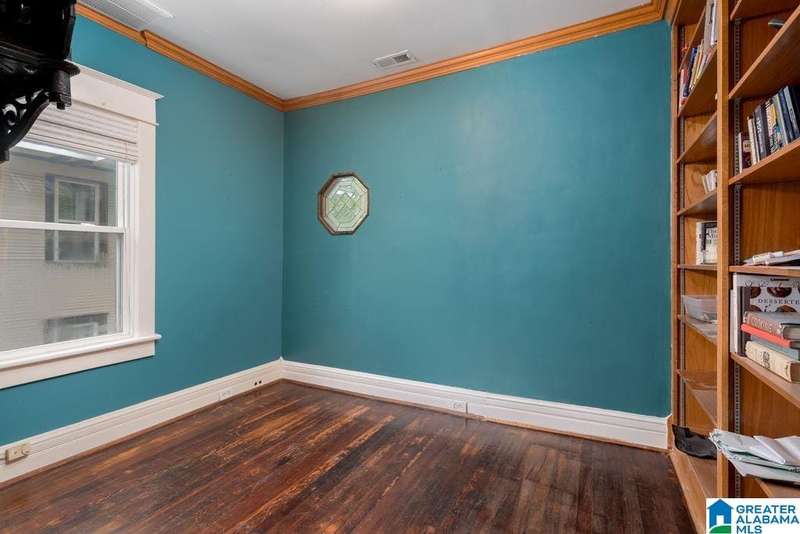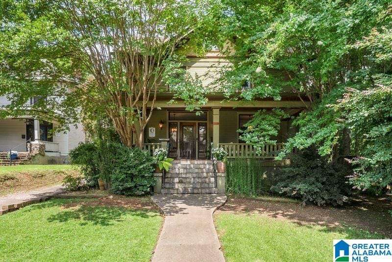 This early 1900's home is an entertainers dream! Excellent flow from one spacious room to another, and easy access to private rear garden with sparkling swimming pool. The large light filled foyer (could be a music room) opens to formal living room with one of three total fireplaces. Formal dining room opens to sun room. Handsome kitchen (gas cooking) is efficiently designed and offers stone counter tops and loads of storage. Tall ceilings and real hardwood floors all add to the charm. Enjoy the huge covered rear porch and low maintenance yard. Upper level includes a primary suite with renovated bath (heated floor, dual sinks, walk in shower) trimmed in stone / brass accents. Home office, guest bedrooms and laundry complete this level. Third floor is perfect flex space with shiplap vaulted ceilings and wainscoting. Basement storage. Driveway parking, roof 2018, 3 HVAC units, double pane windows and updated electrical and plumbing. Minutes to UAB and downtown. An excellent value!