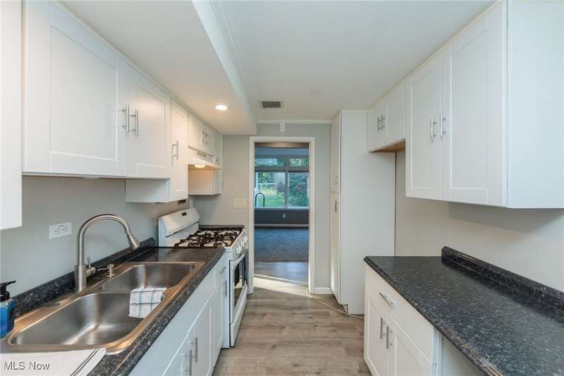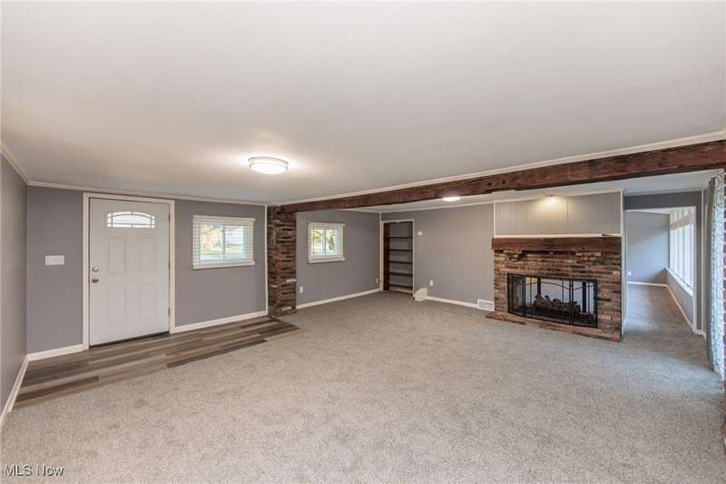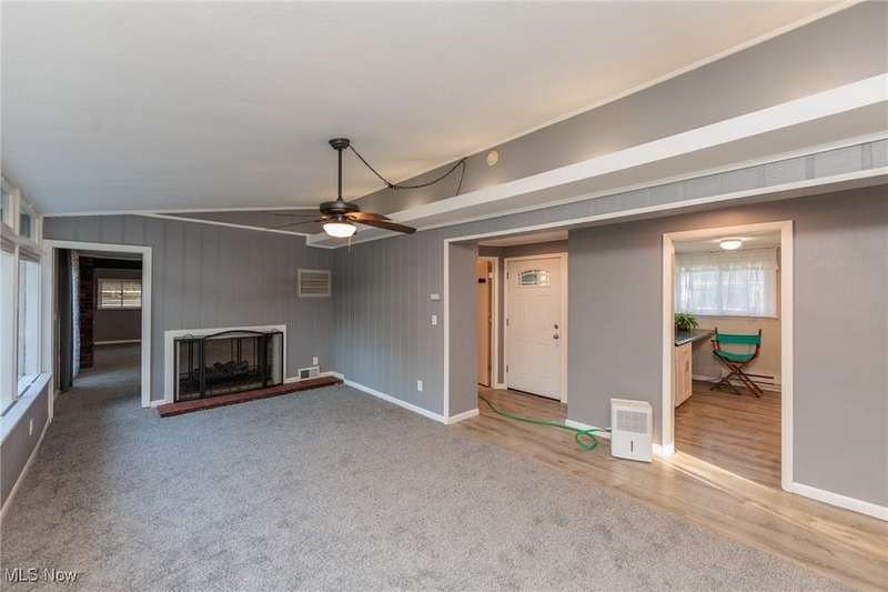 Welcome to 6127 Mackenzie Rd, a beautifully updated 4-bedroom, 2-bath ranch offering the ease of one-floor living in North Olmsted. This move-in ready home features fresh paint, new flooring, and modern touches throughout. The spacious living room boasts plush grey carpeting, exposed brick accents, and a cozy fireplace with a rustic wood mantel, while a bonus room with built-in shelving provides flexibility for a dining room, office, or den. The entry and kitchen are finished with durable grey wood-look flooring that also extends into the updated bathrooms. Each of the four bedrooms offers fresh neutral decor, new carpeting, ceiling fans, and generous closet space, with some showcasing stylish paneling and updated lighting. Both full bathrooms have been refreshed with modern vanities, bright lighting, and clean tub/shower combinations, creating a cohesive, contemporary look. With its thoughtful updates and inviting layout, this home is ready for its next owner?schedule your private showing today!
