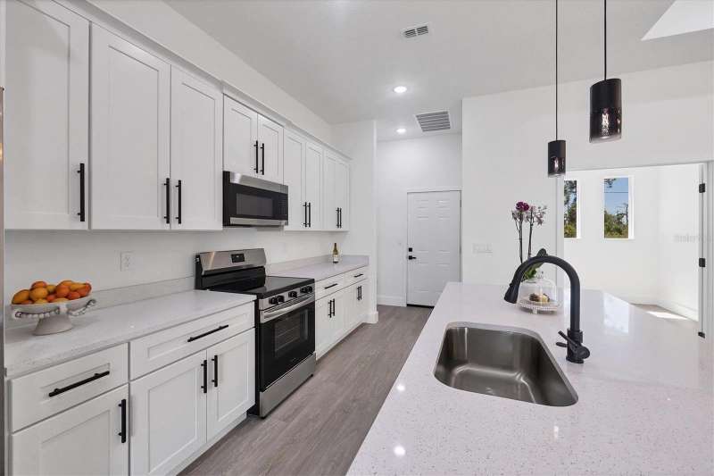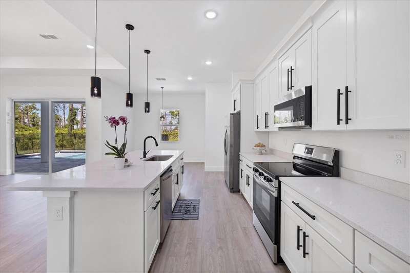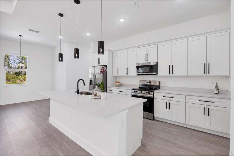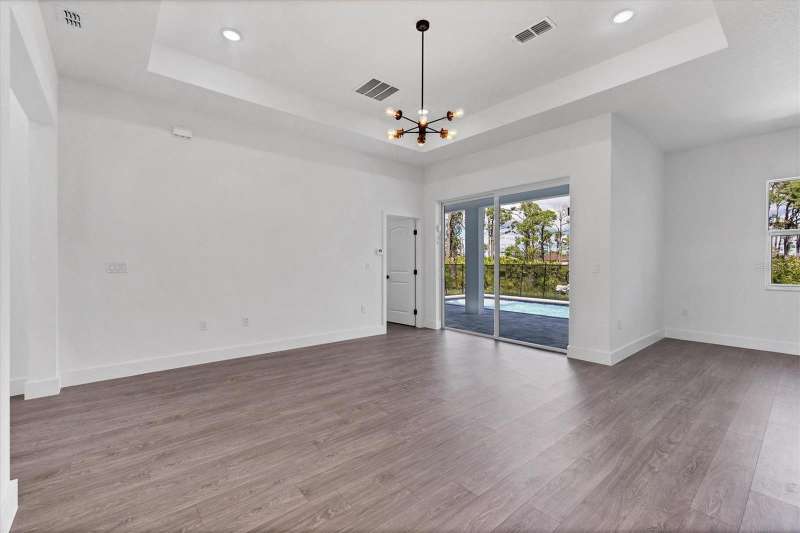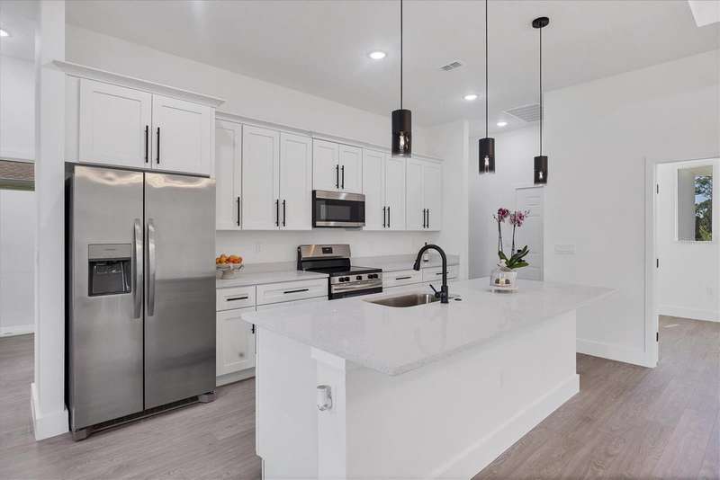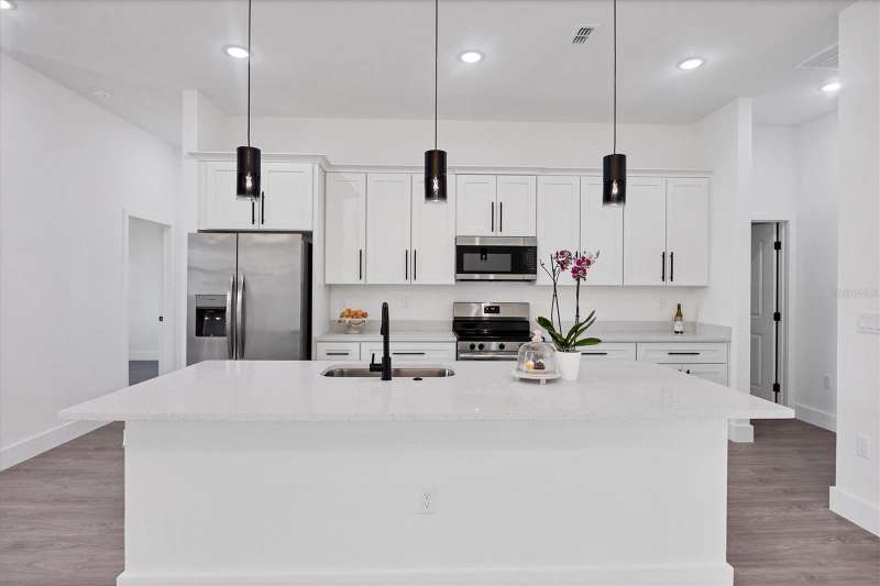New construction home in Rotonda Meadows, designed with modern style and everyday comfort in mind. This one-story residence offers 3 bedrooms, 2.5 bathrooms, a versatile den, and a private pool—ideal for both entertaining and relaxation. The primary suite features a spacious walk-in closet and a spa-inspired bath with dual sinks and a walk-in shower. The open-concept kitchen includes a quartz waterfall island, premium appliances, and flows seamlessly into the main living area. Throughout the home, luxury vinyl plank flooring adds durability and style. A den provides flexible space for a home office or creative retreat. Step outside to your private pool set on a paver deck, with a convenient half bath on the patio. The outdoor kitchen area is fully prepped and ready to be finished to your taste. Additional highlights include impact-resistant windows, high ceilings, and elegant finishes that bring comfort and sophistication together. The lot directly behind the home is also available for purchase separately or together, creating an expanded opportunity and view of the lake This popular community is in a relatively quiet part of town away from the hustle and bustle, yet just minutes from great shopping, dining, several golf courses, and the pristine Gulf beaches. Sports fans will enjoy the short drive to two spring training camps. Near the biking and walking trails and waterways. Ready for immediate enjoyment, this home is the perfect blend of style, quality, and function. Don’t miss this rare opportunity to own an exceptional home in paradise!