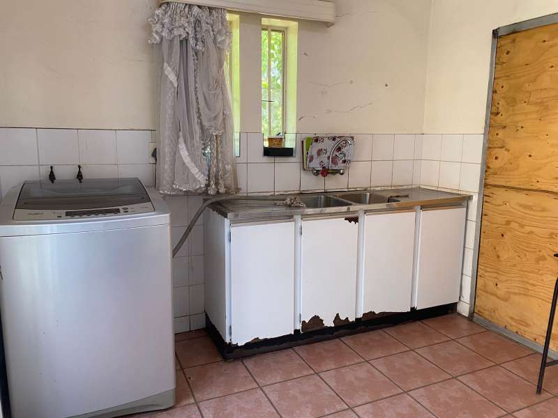 This is a four bedroom house . The bedrooms have cupbords excluding the outside room. The house has a kitchen with cupboards with a built in stove, providing acess to the living room.Theres two bathrooms.It has a big yard with a open space with garden at the back. Its a good property which is five minutes away from Pickn Pay complex and a walking disctance to the nearby school.