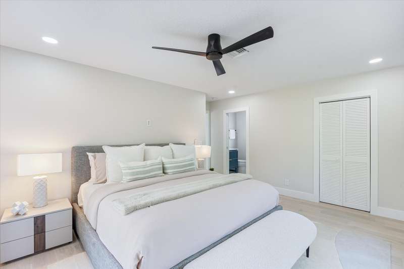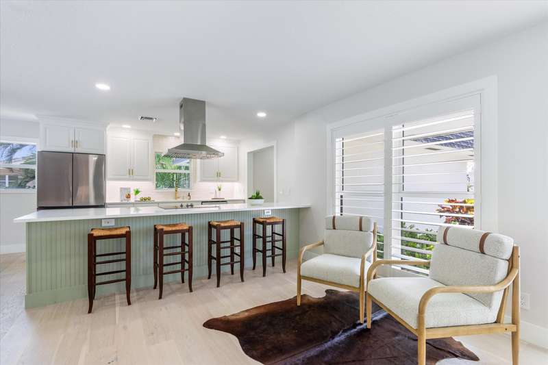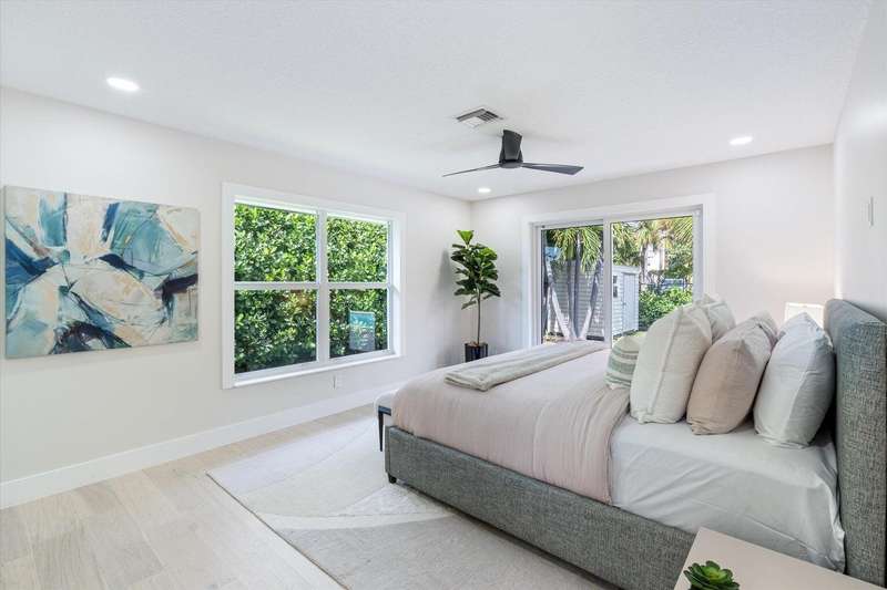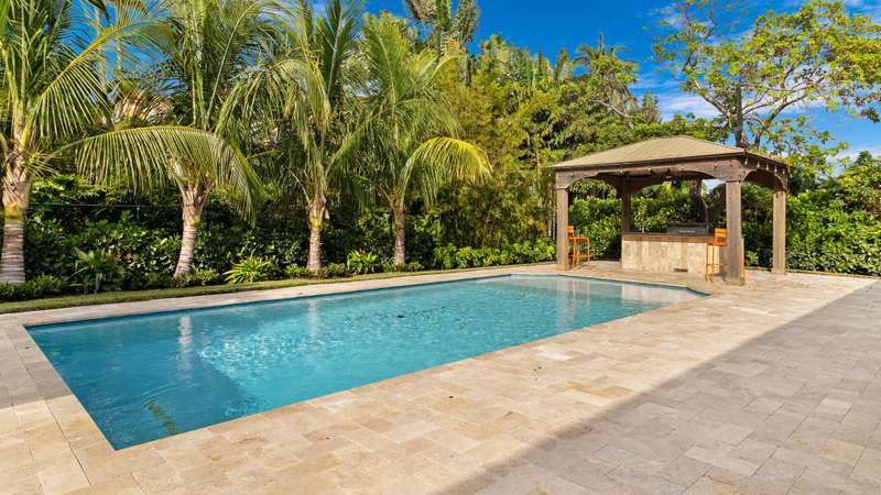 Newly renovated pool home in Hypoluxo Point. 4 Bedrooms 3 Full Baths. Fenced private back yard, tropical landscaping. Impact windows and doors. 2 bathrooms walk in showers. 3rd has a bathtub. Wood floors, recessed lighting. Bright open kitchen with cook island. Split bedrooms, built-in closets. Backyard has full outdoor kitchen with arbor. Water view of intracoastal. Great space for entertaining with large extended patio. Outdoor shower. Room for a golfcart on side yard. Full size Washer/Dryer. Double driveway. Close to beaches, waterfront dining. 18 minutes to PBI airport. Storage shed in back yard. Pool has a child safety fence available. Rent includes yard & pool maintenance. No Homeowner Association. Available for occupancy November 21, 2025. UNFURNISHED. Some photos have staging.