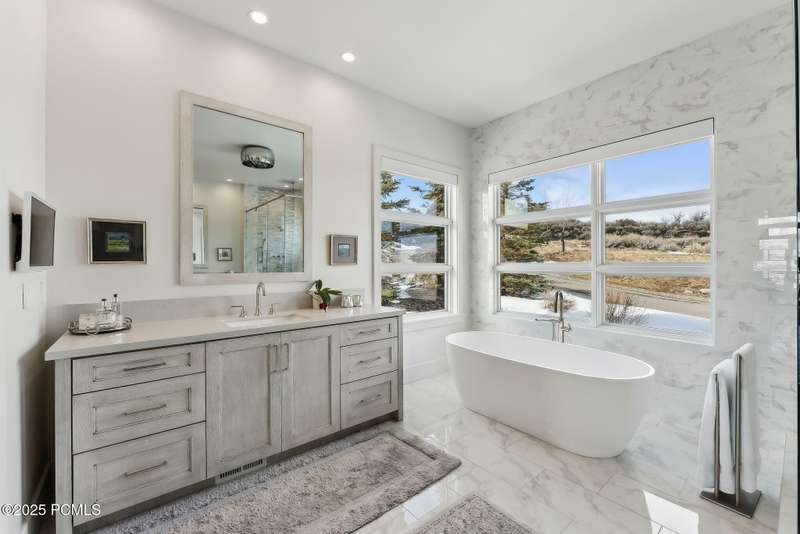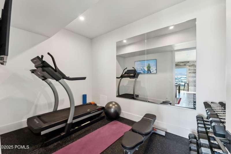 Located in the prestigious Tuhaye community, this beautifully designed 5-bedroom, 6.5-bathroom mountain modern home offers the perfect blend of contemporary luxury, comfort, and functionality. With expansive long-range views and southern exposure, natural light fills the living spaces throughout the day. Thoughtfully crafted for both relaxation and entertaining, this home features a flat back yard, an oversized 3-car garage with radiant heat and 10' doors, and a radiant heated driveway for year-round access.On the main level, you'll find a spacious primary suite with a spacious balcony, a dedicated home office, a guest ensuite bedroom, and a powder room. A laundry room is also conveniently located on this level. The open-concept living and dining area boasts breathtaking views and seamless indoor-outdoor flow, with glass accordion doors leading to an expansive deckperfect for entertaining.The lower level is designed for recreation and relaxation, featuring a pool room, a private gym with a rubber floor, mirrored wall, full dumbbell weight rack with bench, and a top-of-the-line NordicTrack treadmill. It also includes a music studio/game room, an additional laundry room, and three spacious bedrooms. This level is well-appointed with three baths and one full bath, providing ample accommodations for family and guests. Reclaimed wood (Stickwood) accent walls add a warm mountain ambiance, creating an inviting retreat.Smart home automation includes Lutron wireless lighting switches, seamlessly integrated with Google or Alexa for effortless control. A whole-house Sonos music system extends to the outdoor patio and deck, ensuring a seamless audio experience inside and out. Outdoor living is elevated with a covered patio featuring a television, a fully landscaped yard, and multiple entertainment spaces, including a BBQ station on the upper deck and a movable pizza oven near the hot tubperfect for aprs-ski evenings or summer gatherings by the fire pit.