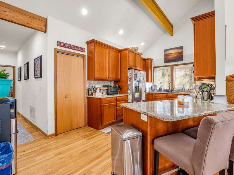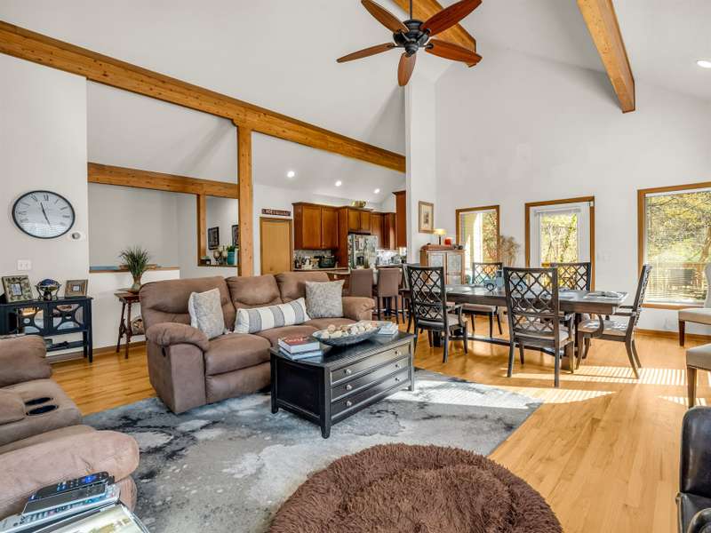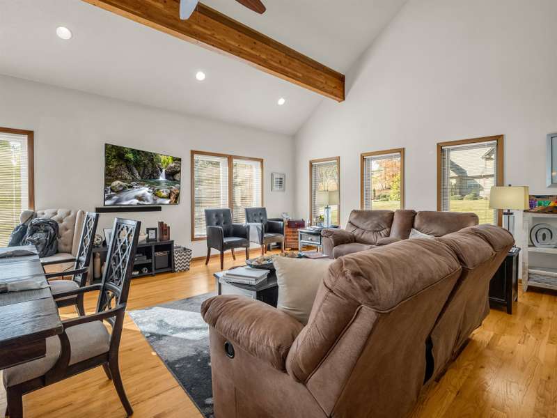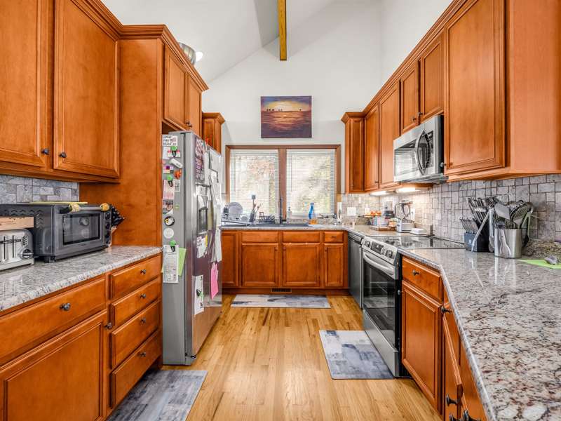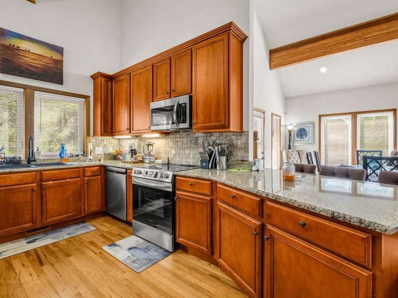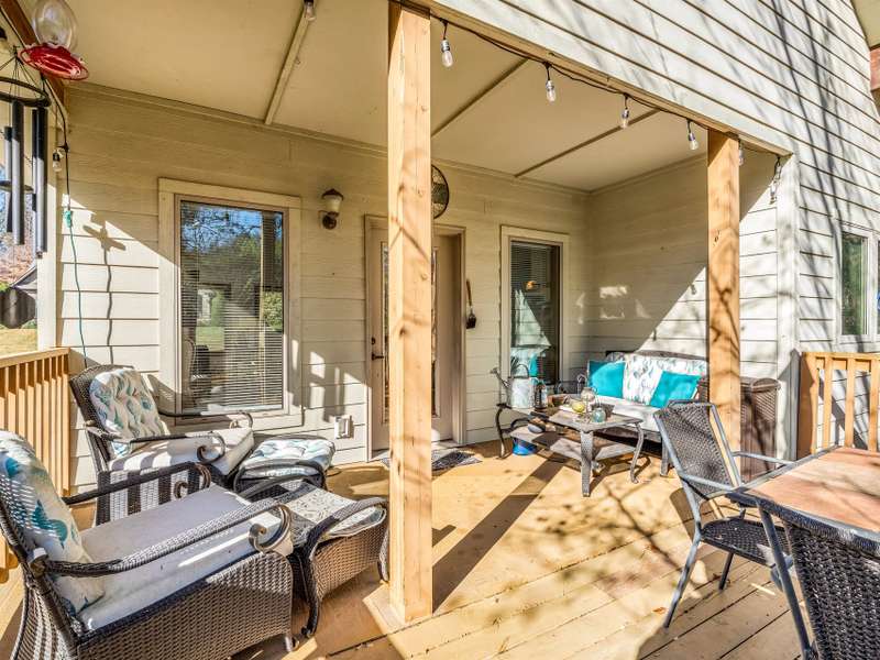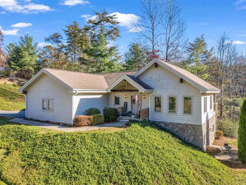 Welcome to this hidden gem in Fairway View Estates, a private community that adjoins Reems Creek Golf Course. Well built, open living space, and abundant natural light with vaulted ceiling with exposed beams in great room, dining area, and screened porch leading to deck for entertaining guests or evenings relaxing. Kitchen updated in 2023 with new stainless appliances, has granite counters and tile backsplash. Generous primary en suite on main level, all solid wood doors on main level. Lower level offers 2 additional bedrooms, full bath, and family room/den with wet bar, large windows for natural light and double doors leading to patio. Huge storage/mechanical room offers additional flex space. Conveniently located just minutes from downtown Weaverville, Asheville and amenities. See Reems Creek Golf Club website for info about becoming a member to enjoy the 18-hole golf course, outdoor pool, clubhouse, pickle ball court, grill & bar and year-round activities.