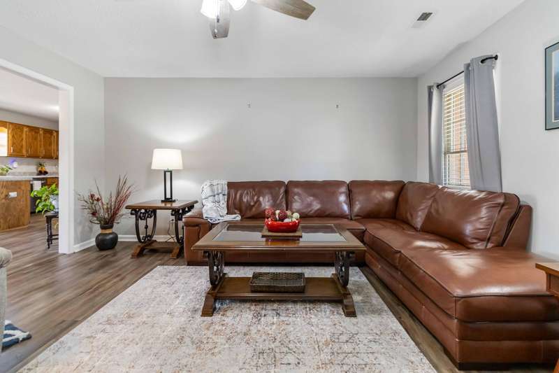 Welcome to this charming 3-bedroom, 2-bath ranch brick home, perfectly blending comfort, convenience, and style. Step onto the inviting front porch before entering a spacious living area, ideal for both relaxing evenings and entertaining guests. The eat-in kitchen offers plenty of space for family meals, while the large utility room with washer and dryer connections adds everyday convenience. This home features three generously sized bedrooms, including a private primary suite with its own updated ensuite bath with walk-in shower, as well as a second full bathroom for guests or family. The 2-car garage provides ample storage and parking, while the fully fenced backyard is a true highlight-complete with a deck, perfect for outdoor gatherings, pets, or simply enjoying a peaceful evening. Located in the desirable Southwestern School District, this home offers easy access to shopping, schools, historic attractions, beautiful Lake Cumberland, and more. Don't miss your chance to own a move-in ready home in a fantastic location!