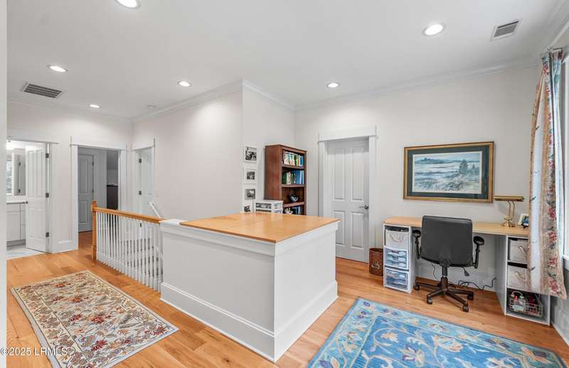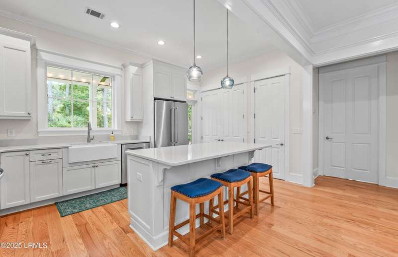 Cat Island! If you're looking for a peaceful community with low and mild Associations, here you are!! This beautiful home was completed in late 2018 and sits on a nearly 3/4 acre lot. The gardens and backyard border the 12th golf hole of the Cat Island Golf Club. When you walk into this home you will see the open floor plan with wall to wall moldings that extends from the front door through the living area to the dining room into the kitchen with a spacious screened porch off the back. The primary suite is a wonderful retreat and sits on the back side of the home with access to the porch. The closet is large and the ensuite is spacious! The downstairs is completed with a quaint separate office space. Upstairs you will find three bedrooms, a large bathroom, and a sitting/study! There is also two walk-in attic spaces which display the foam insulation, maintaining a fairly temperate storage space! The backyard is fully fenced and the space is perfect for your fury ones! 43 Dolphin Point is an exceptional home and has been immaculately cared for. Club membership required for use of club amenities. This material is based upon information, which we consider reliable, but because it has been supplied by third parties, we cannot represent that it is accurate or complete, and it should not be relied upon as such.