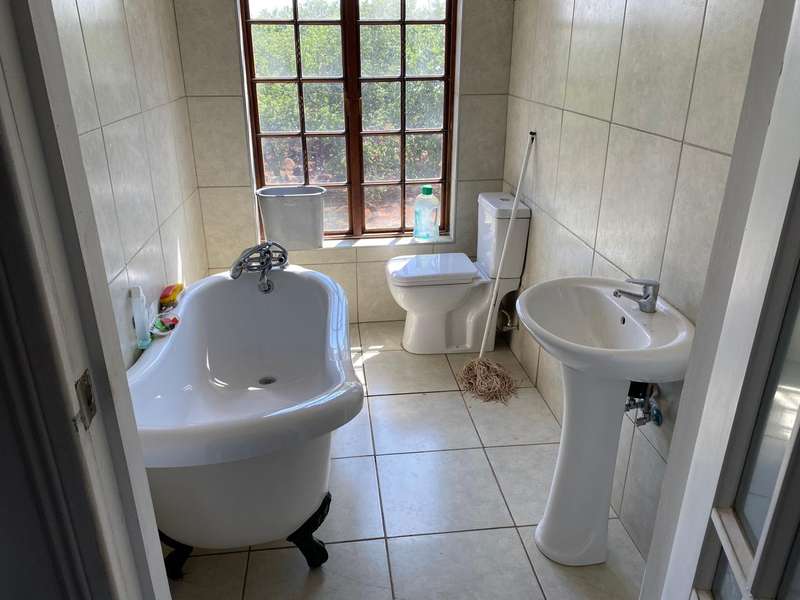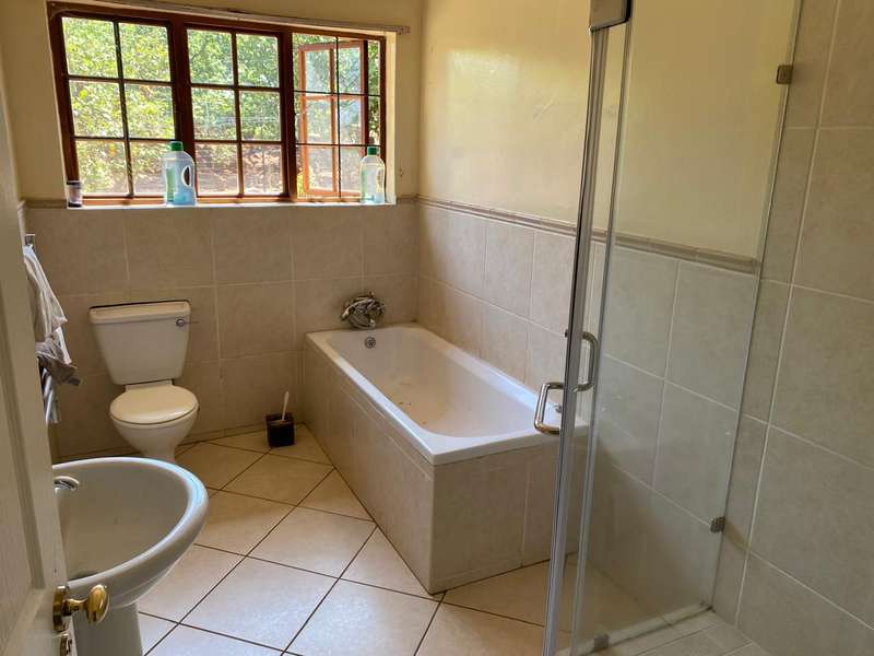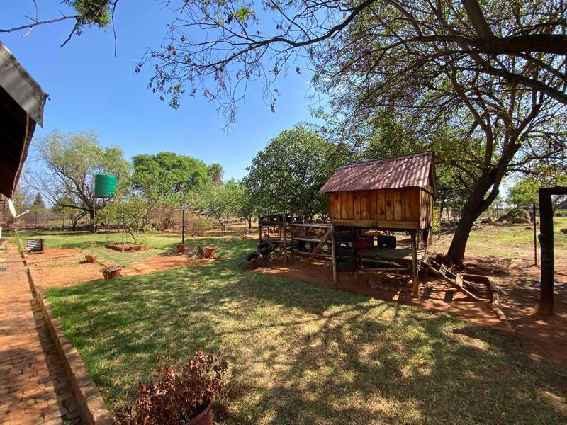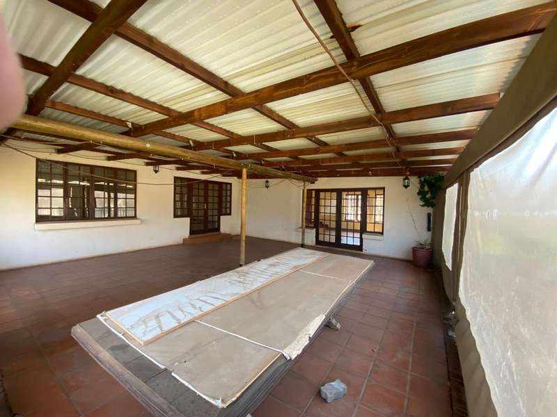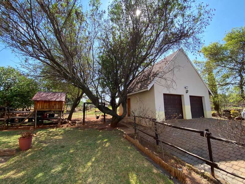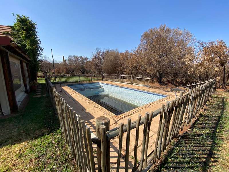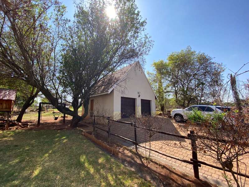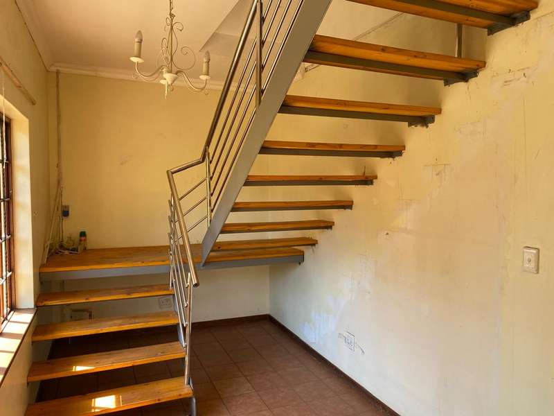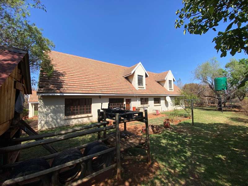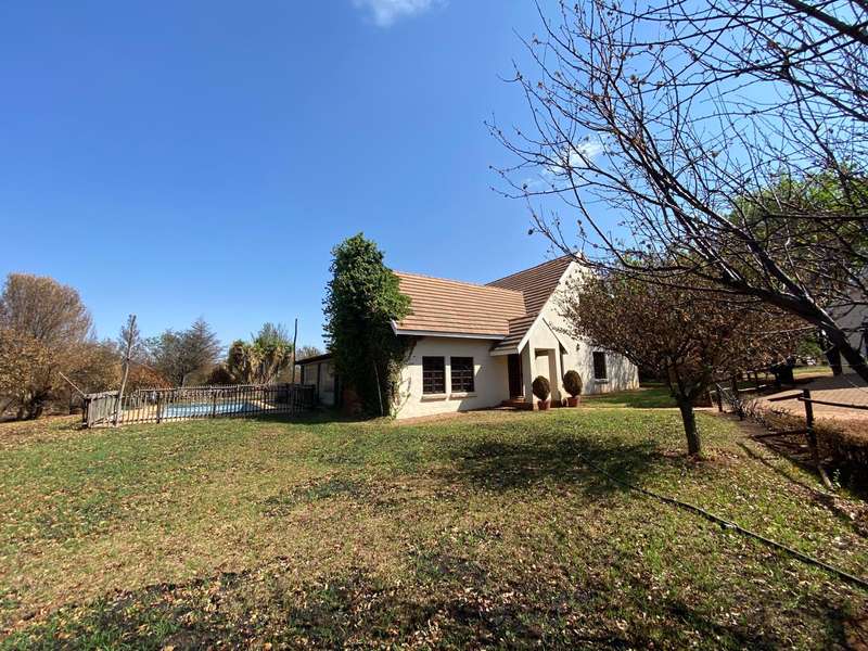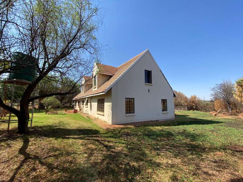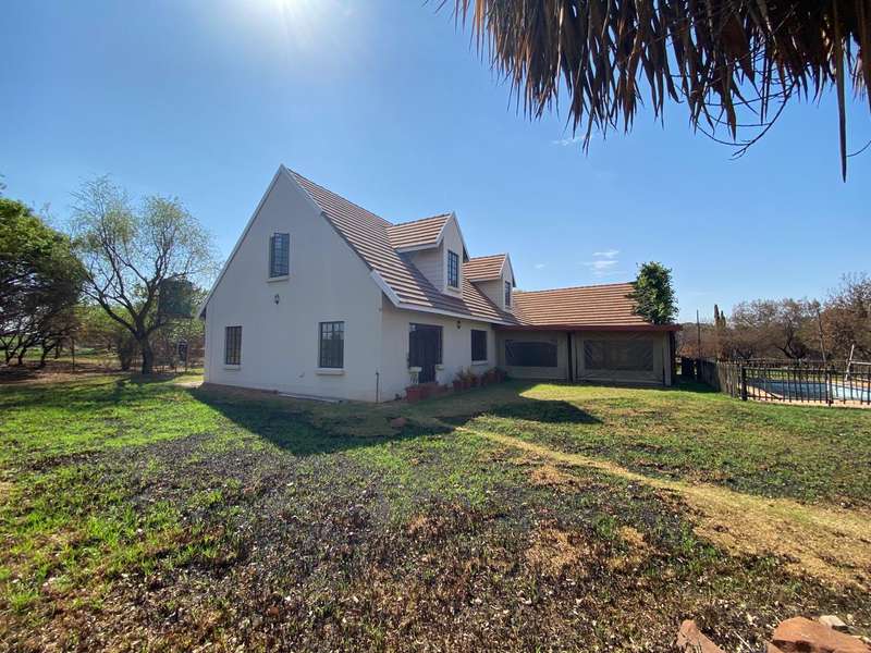This well-located double-storey home offers peaceful country living in the sought-after Boschkop AH area, Pretoria East. Upstairs features an open-plan bedroom/lounge area, 2 bathrooms, and 3 walk-in closets. Downstairs includes a study, modern kitchen, open-plan lounge/dining area with fireplace, 4 bedrooms (main en-suite with walk-in closet), and a covered patio leading to a fenced swimming pool (in need of TLC). Outbuildings include: 2 x Single garages Face brick cottage (approx. 120m²) Large enclosed shed (approx. 166m²) Ideal for small-scale farming, rental income, or tranquil family living — with easy access to nearby amenities. PLEAS NOTE-The prospective purchaser must drill a borehole on the property!