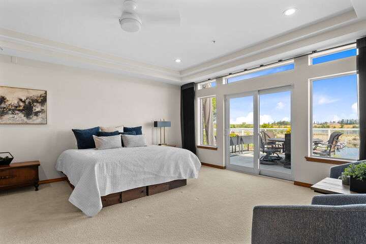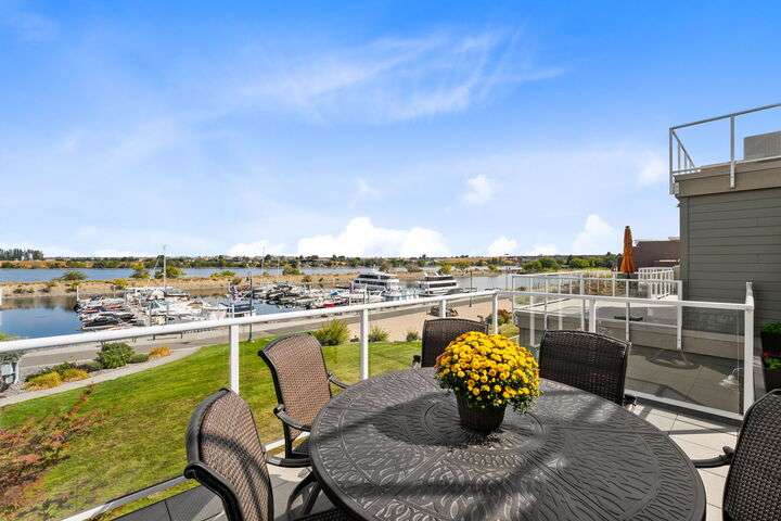 MLS# 287394 Welcome to The Moorings at Columbia Point—Tri-Cities premier destination with million-dollar views! This exclusive, single-level end unit condo offers unmatched marina and riverfront views, upscale finishes, and a lifestyle that blends comfort with class. Step inside and feel the elegance immediately. A welcoming entry features coffered ceilings with cove lighting, setting the tone for the thoughtful design throughout this spacious 3-bedroom plus flex room home. The gourmet kitchen is a true showstopper, featuring quartz counters, full-height tile backsplash, under-cabinet lighting, and a premium appliance package including a Filli Bertazzoni Italia induction cooktop, GE Cafe double wall ovens, wine fridge, and compactor. The oversized walk-in pantry includes a fridge/freezer combo. Designed for effortless entertaining, the kitchen opens to a casual dining area, a formal dining room, and an expansive great room with a tile surround gas fireplace and custom built-ins. Sliding glass doors lead to a private waterfront balcony with automatic blinds, offering panoramic views of the Columbia River. The owner’s retreat offers private balcony access and a spa-style bathroom featuring a soaking tub, full-tile walk-in shower with bench, bidet, oversized vanity with granite counters, and a custom walk-in closet. The two secondary bedrooms also feature large custom walk-in closets, while the family room offers versatility and could be a dedicated home office, study, or guest room. A huge 12x11 storage room is tucked off the oversized laundry room (washer and dryer included), and the home is complete with a central vacuum system and an attached two-car garage below with additional storage. Additional highlights include- direct elevator access directly to the condo, golf course next door, and close proximity to shopping, parks, and freeway access. You’ll also enjoy access to the 9.5-mile paved riverfront trail just below. This low-maintenance, lock-and-leave lifestyle is everything you’ve been waiting for. Experience luxury waterfront living, where every detail has been carefully curated, and million-dollar views greet you daily. Plus, you're just a short walk to Tri-Cities top restaurants including Anthony’s, Budd’s, and Perch Restaurant. Don’t miss your chance to own a slice of waterfront paradise—schedule your private tour today!