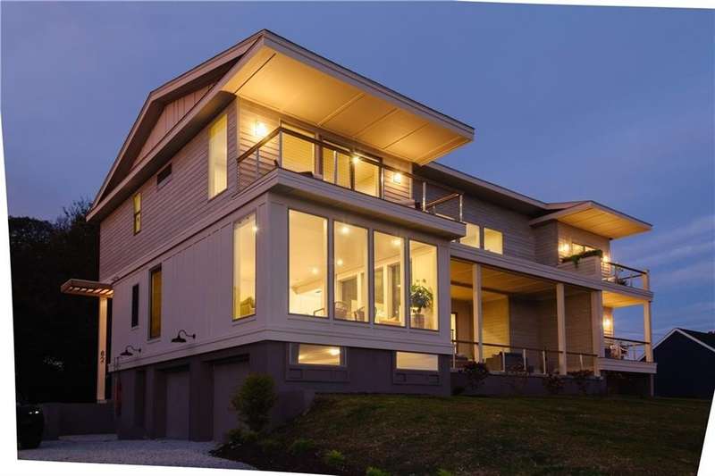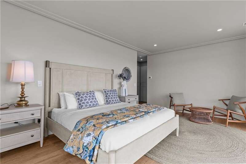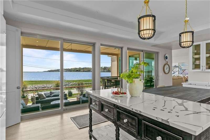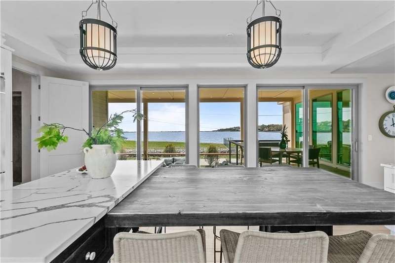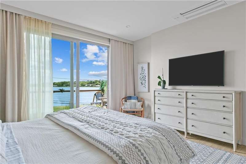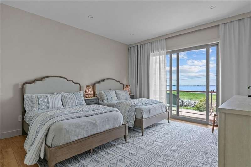 AVAILABLE 2026 JANUARY, FEBRUARY, MARCH $18,000 MONTHLY "Island Breeze"-Newport's newest luxury waterfront rental. Aptly named, you can catch the coastal breezes off the patio while taking in the panoramic view. Modern new construction features clean lines, floor-to-ceiling windows, and neutral contemporary furnishings. East- and south-facing water views across Easton's Pond, Easton's Beach, and Newport's Cliff Walk with direct access onto the water via the Pond walkway. A cozy, second-floor den separates the suites with a large screen TV, water views, and privacy. 6 bedrooms available; the primary is a water view suite with a KING bed and deck; TWO additional suites with water views and decks, both with en-suite baths; one with a KING bed, another suite with 2 QUEEN BEDS, and a third suite with 1 QUEEN bed, while two additional bunk rooms offer more flexible sleeping options with a shared full bath. A south-facing deck with a grill is available for al-fresco dining, and a water-view fire pit is a cozy place to gather in the evenings. Nature lovers can watch the sun and moon rise across the water while capturing glimpses of elegant shore birds such as egrets, herons, and swans that call Easton's Pond home. A dog may be considered. There are variable pricing options for the whole house minus the owner's suite.