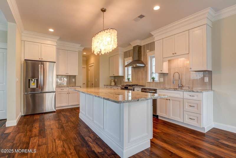 This beautiful 3 story newly constructed home radiates elegance & functionality in every corner! Upon entering your eyes will be drawn to the expansive open floor plan with 9' ceilings, stunning hardwood floors that flow seamlessly throughout the house. The kitchens exquisite granite counter tops, cabinetry & spacious island is perfect for both storage & meal prep. The custom trim work throughout creates a truly grand ambiance. 2nd floor boasts 4 generously sized bedrooms offering ample closet space. Another staircase leads to a 3rd floor which can be used for recreation or a family room with a wet bar ideal for entertaining, & a storage rm. Step out to a private balcony overlooking a wooded park. Located minutes from ocean & short walk to a private beach & marina your dream home awaits!