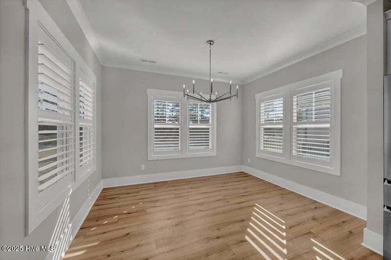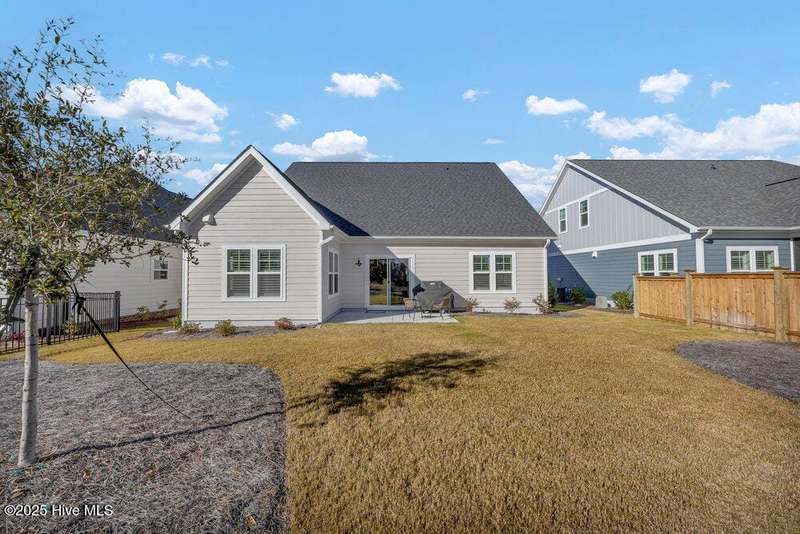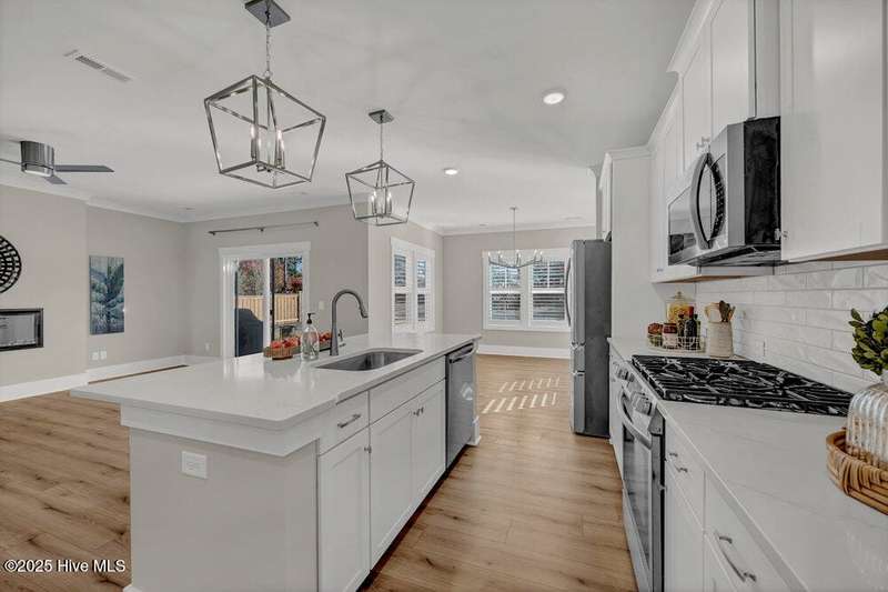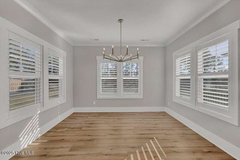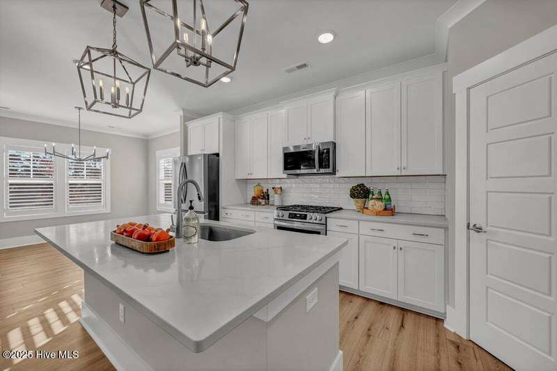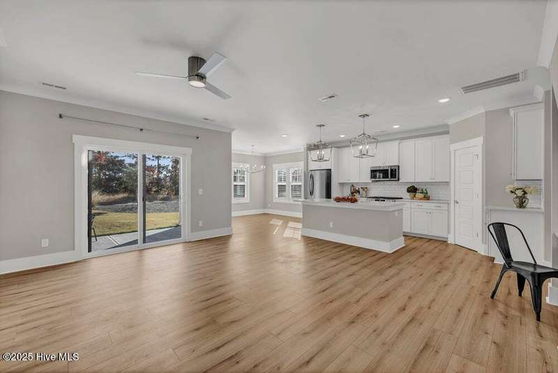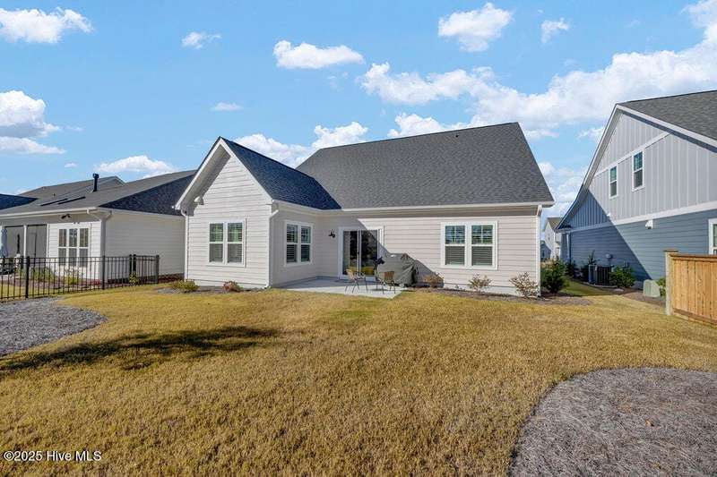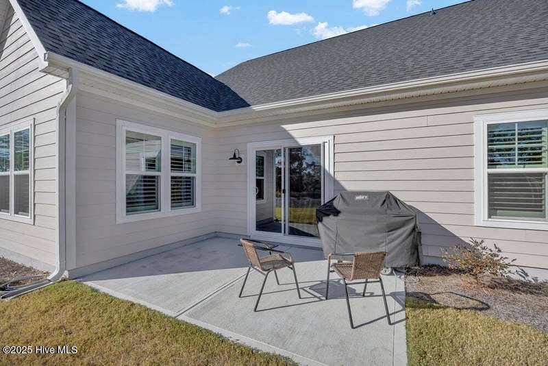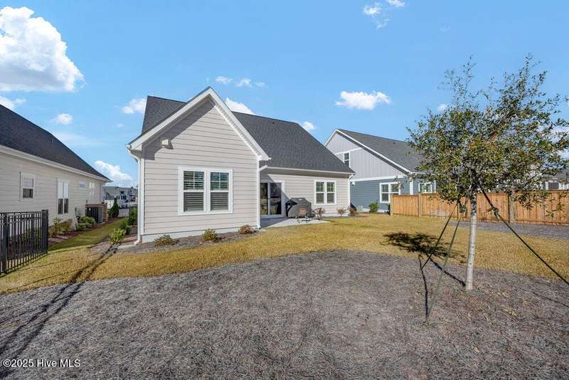 Almost new and ready for immediate delivery, this stunning Herrington Home sits on an elevated, oversized lot overlooking a tranquil wooded buffer. This sought-after floor plan features a spacious first-floor primary suite plus an additional bedroom on the main level, with two more bedrooms and a large flex room upstairsideal for guests, hobbies, or a second living area. The heart of the home is a beautifully designed open living space. The dream kitchen shines with a gas cooktop, abundant cabinetry, a generous center island, walk-in pantry, and a built-in desk perfect for a coffee station. A brand-new stainless refrigerator remains. The living room offers a warm, modern feel with its sleek linear electric fireplace. LVP flooring flows throughout all main living areas and the primary suite, complemented by gorgeous moldings and custom 3-inch plantation shutters throughout. The primary suite provides a luxurious retreat with split vanities, a large tiled shower, and an impressive walk-in closet. All three additional bedrooms also feature spacious walk-in closets. A nicely sized laundry room comes complete with a brand-new washer and dryer set. Upstairs, the oversized flex room offers endless possibilitiesgame room, home office, media room, or gym. Additional perks include a walk-in attic with floored storage, a two-car garage with a side-entry people door, and a rear patio with a direct gas lineperfect for effortless outdoor grilling. Located in the highly desirable Riverlights community, residents enjoy exceptional amenities including a clubhouse, fitness center, pool, walking trails around a serene lake, multiple parks, and playgrounds.