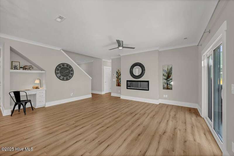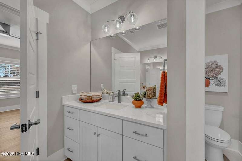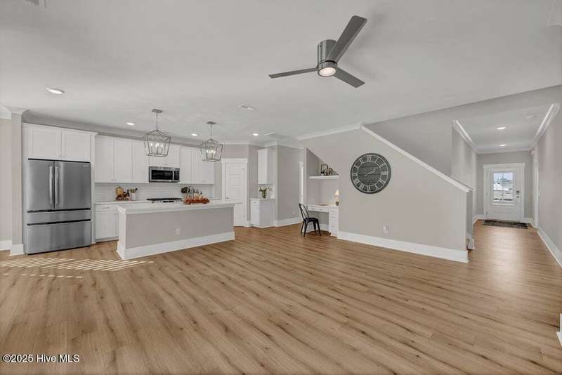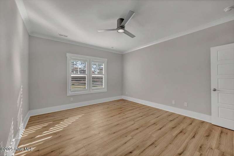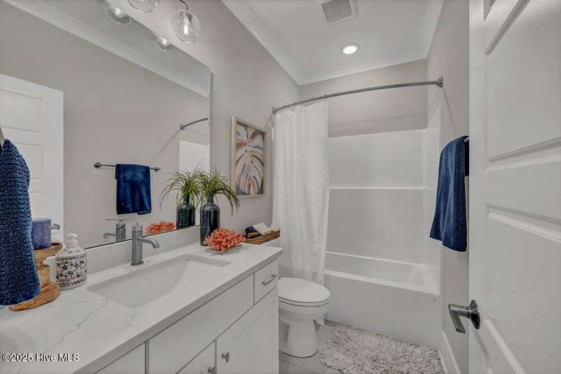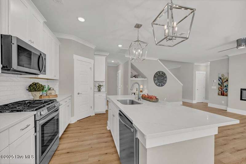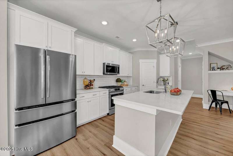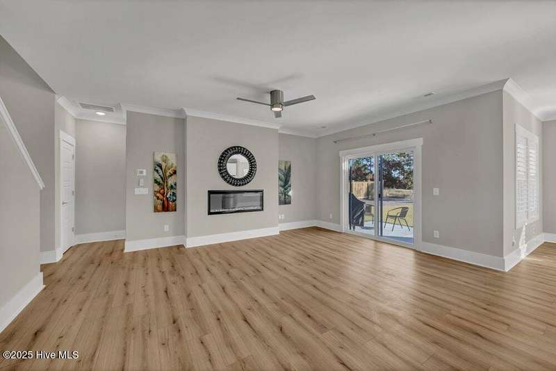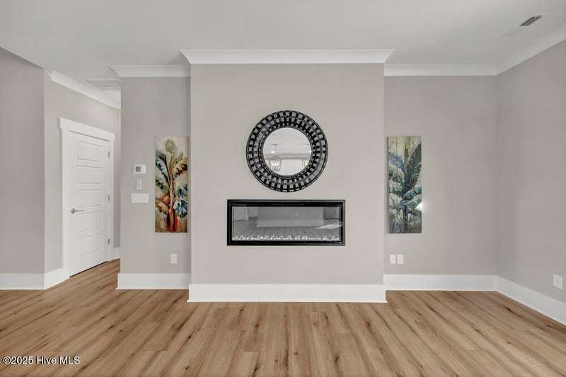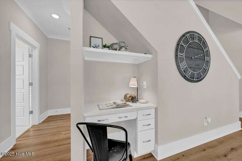 Almost new and ready for immediate delivery, this stunning Herrington Home sits on an elevated, oversized lot overlooking a tranquil wooded buffer. This sought-after floor plan features a spacious first-floor primary suite plus an additional bedroom on the main level, with two more bedrooms and a large flex room upstairsideal for guests, hobbies, or a second living area. The heart of the home is a beautifully designed open living space. The dream kitchen shines with a gas cooktop, abundant cabinetry, a generous center island, walk-in pantry, and a built-in desk perfect for a coffee station. A brand-new stainless refrigerator remains. The living room offers a warm, modern feel with its sleek linear electric fireplace. LVP flooring flows throughout all main living areas and the primary suite, complemented by gorgeous moldings and custom 3-inch plantation shutters throughout. The primary suite provides a luxurious retreat with split vanities, a large tiled shower, and an impressive walk-in closet. All three additional bedrooms also feature spacious walk-in closets. A nicely sized laundry room comes complete with a brand-new washer and dryer set. Upstairs, the oversized flex room offers endless possibilitiesgame room, home office, media room, or gym. Additional perks include a walk-in attic with floored storage, a two-car garage with a side-entry people door, and a rear patio with a direct gas lineperfect for effortless outdoor grilling. Located in the highly desirable Riverlights community, residents enjoy exceptional amenities including a clubhouse, fitness center, pool, walking trails around a serene lake, multiple parks, and playgrounds.