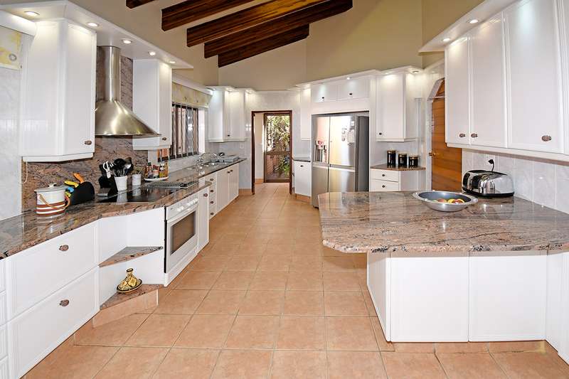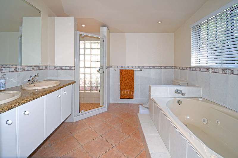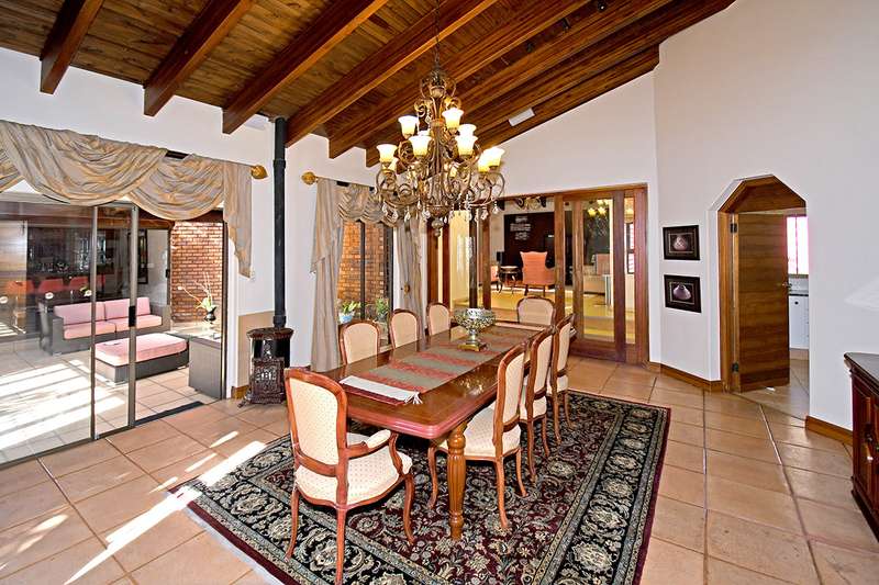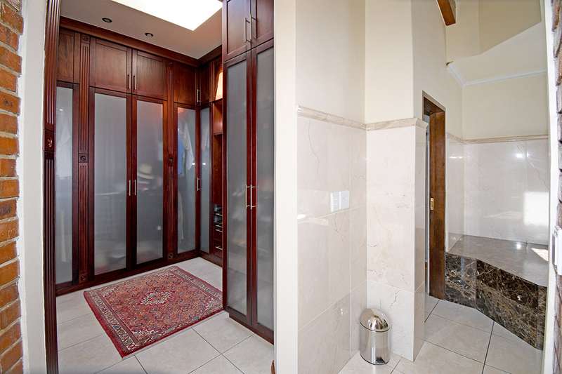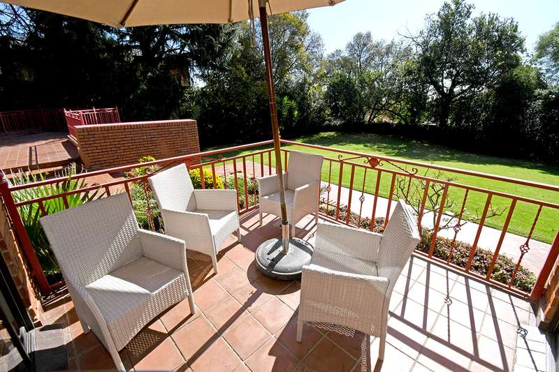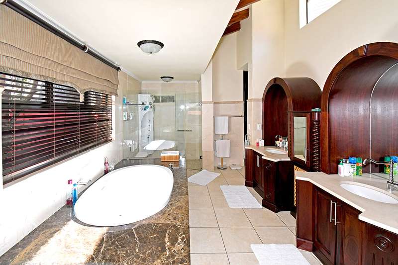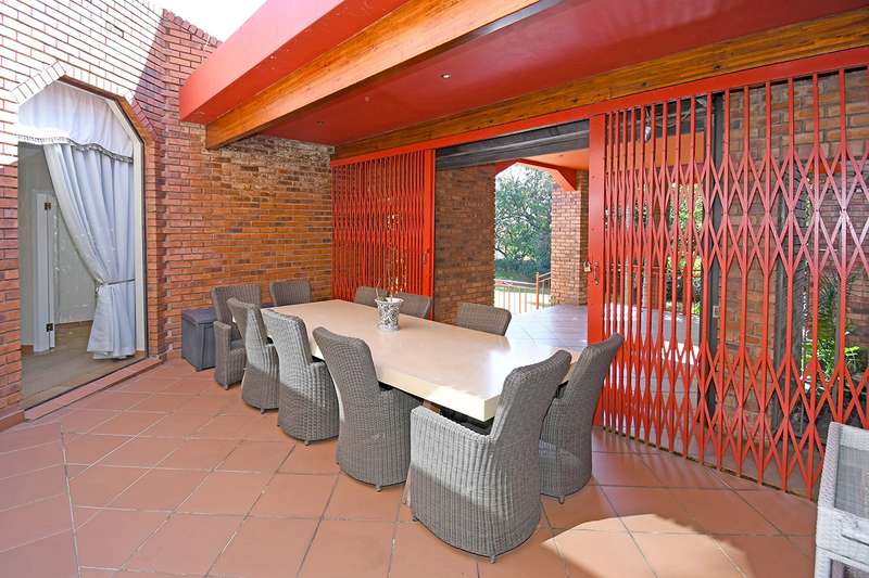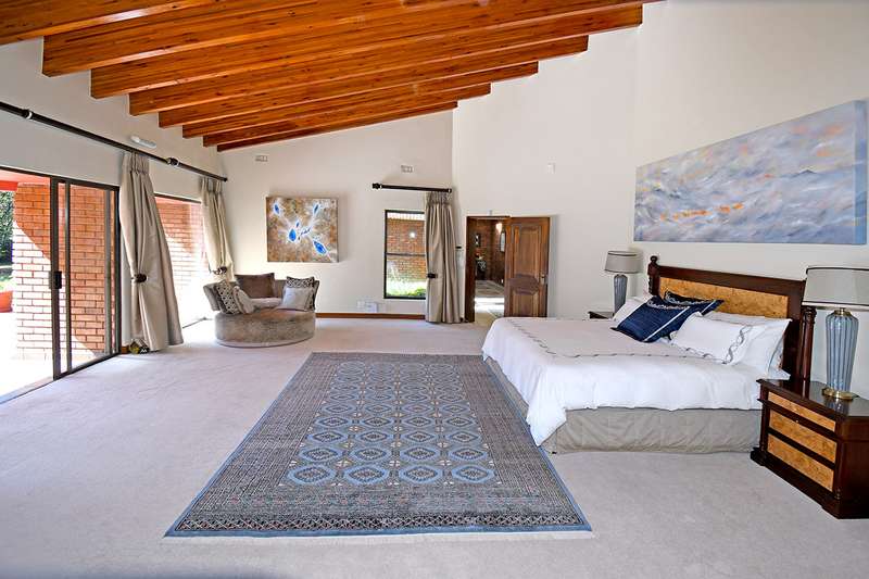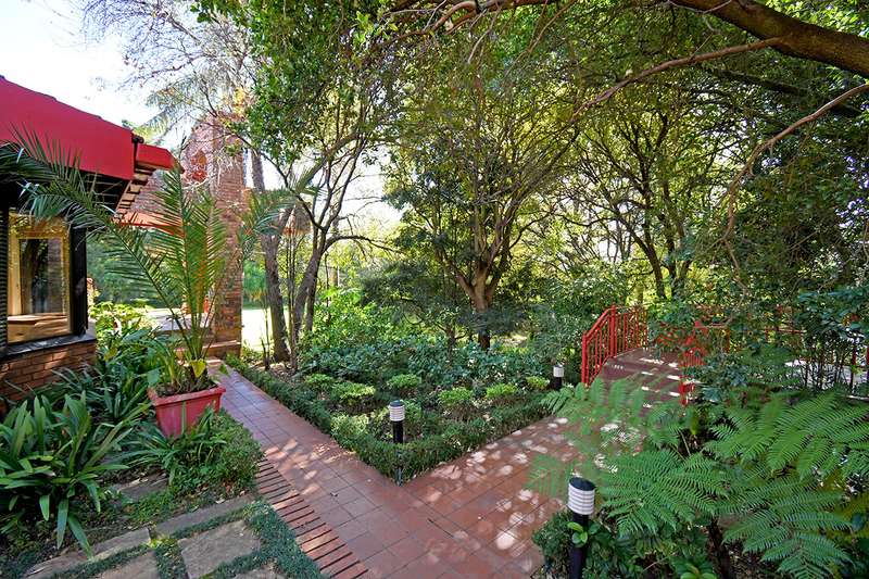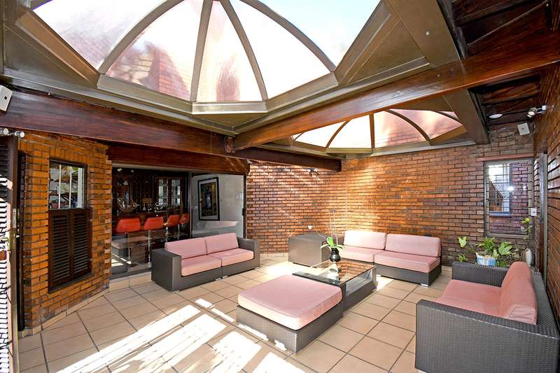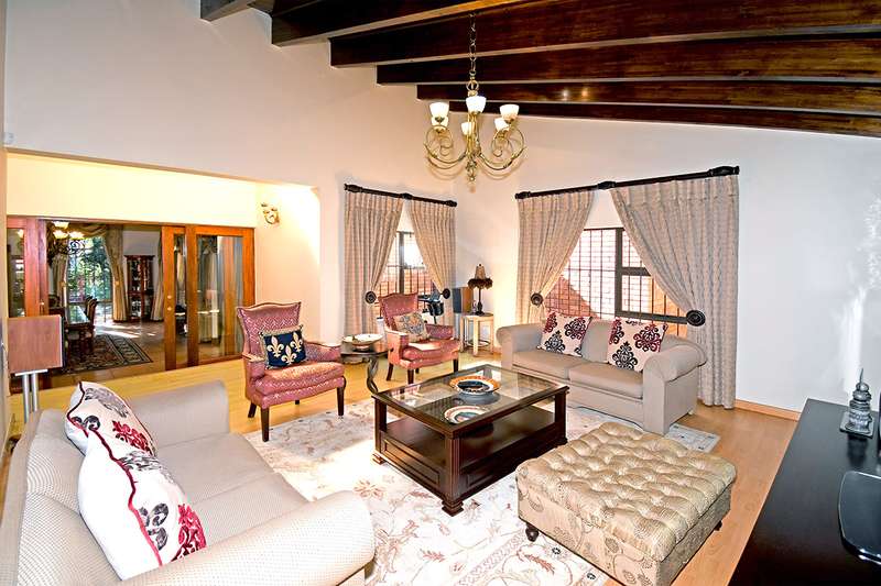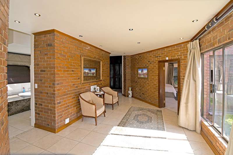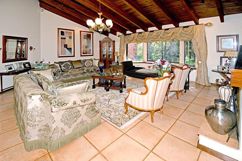 A steal at this asking price. This remarkable property on 3,996 m2 offers an incredible opportunity to subdivide and build a second home. A hidden paradise in the heart of Bedfordview, underplayed and serene in its setting on 3,966m2 of wooded garden. Exposed beams with high ceilings create an airy intimate luxuriant ambiance which pervades throughout this family home. Expansive formal lounge with fireplace overlooks the garden, family room with laminated floors, baronial dining room opening onto an intimate covered atrium casual lounge which hosts an adjoining gentleman’s bar. Executive study with built-in carpentry has access onto an open garden atrium. Pristine kitchen features granite counter tops, extractor, separate scullery / laundry. The 5 bedrooms are spacious and characterized by picture windowscapes of the garden or private atrium with 4 family bathrooms. The main bedroom wing incorporates a private lounge, gym room, his and hers dressing areas with skylights, aircon, with private patio accessing the tropical garden, sweeping lawns. Staff accommodation/ cottage, consists of lounge, bedroom, kitchen, bathroom, loft. Gardeners room, toilet, shower.2 garages, 3 carports. Large basement/ wine cellar. This home is complimented with a borehole, auto irrigation system, industrial generator, JoJo water tank, beams and CCTV.