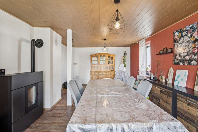 Welcome to your new home - a detached house that combines historical charm with modern living comfort and offers space for quality of life, family and individual dreams. On approx. 250 m² of living space and a plot of approx. 487 m², you will find a property that has been thoughtfully modernized and today represents a perfect combination of tradition and contemporary features. A particular highlight is the spacious extension from 2014 with around 125 m² and its own entrance. It offers you maximum flexibility - whether as a studio, office, separate living unit for family members or as a retreat with a special flair. The bright studio in the extension impresses with its open design and a wonderful view that fills the room with lightness. Here you will also find direct access to the enclosed garden and the covered terrace - a place where children can play undisturbed, friends can barbecue together or you can enjoy the peace and quiet. The heart of the extension is the open-plan living room with a new wood-burning stove (2023), which provides cozy warmth. An additional pellet stove (2023) in the front house creates a cozy ambience. With a total of six rooms, including four bedrooms, the house offers numerous possibilities for individual design - whether as a cozy bedroom, children's room or practical study. Two modern bathrooms are available: one was completely renovated in 2023 and equipped with a walk-in shower, while the other has already been modernized and features a shower and bathtub. Stylish real wood floorboards in the front building underline the special character of the rooms. The custom-made fitted kitchen from 2020 impresses with its high-quality workmanship, modern electrical appliances and plenty of storage space - an ideal place for cooking together and socializing in the evenings. The property is also ideally positioned in terms of energy: The newly installed photovoltaic system with 8 kWp and the roof, which was also renewed in 2023, ensure a sustainable and future-oriented energy supply. In addition, some of the windows and power lines were replaced in 2014, meaning that important areas of the house have already been modernized. Central heating also ensures a pleasant indoor climate at all times. The offer is rounded off by a garage, which safely houses your vehicle, and the garden, which offers plenty of space for leisure, hobbies and relaxation. This detached house is far more than just a place to live - it is a place to arrive, to live and to feel good. It combines tradition with modern features, flexibility with comfort and offers the perfect basis for your new home. If you value a successful combination of tradition and modernity and are looking for a property that impresses with its condition as well as its flexible usage options, we recommend a personal viewing. We will be happy to provide you with further information and arrange a viewing appointment. No energy certificate was available at the time the ad was created. This has been applied for.