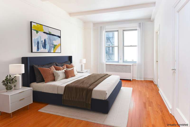 Perfect prewar pied-a-terre or primary residence! With no wasted space, soaring beamed ceilings, and beautiful strip hardwood floors, this versatile residence is blissfully quiet. The fully-renovated kitchen boasts all stainless steel appliances, a mounted microwave, new countertops, custom cabinetry, and ample storage and prep space.