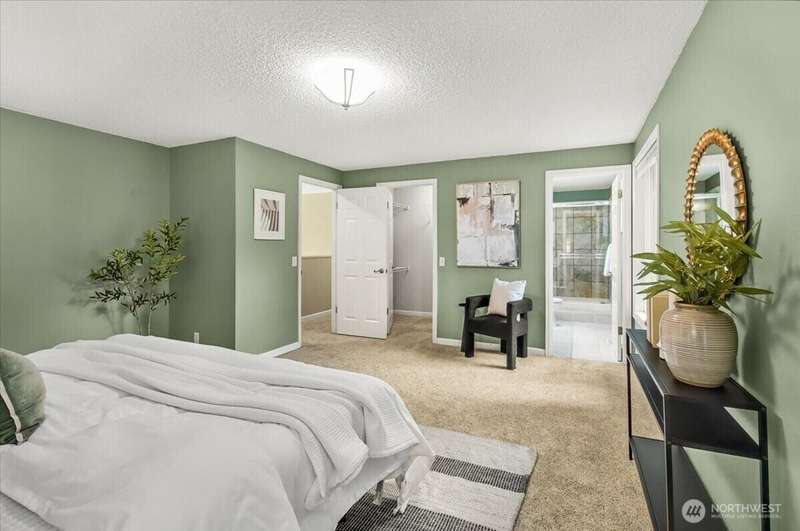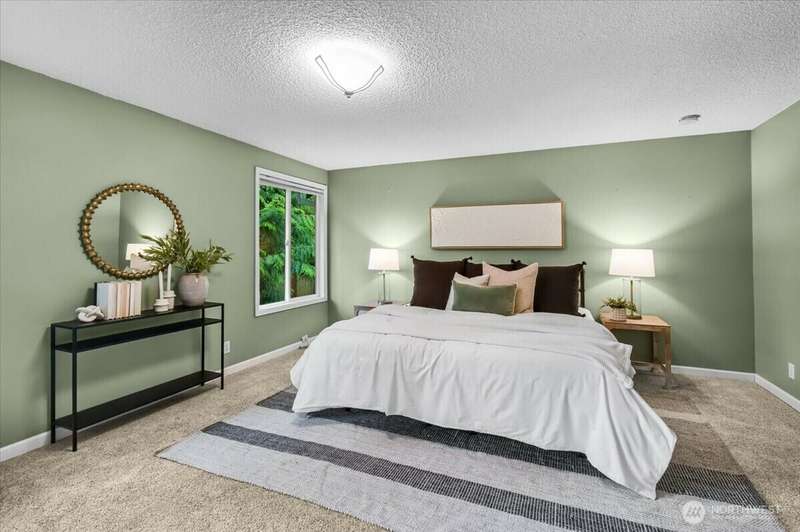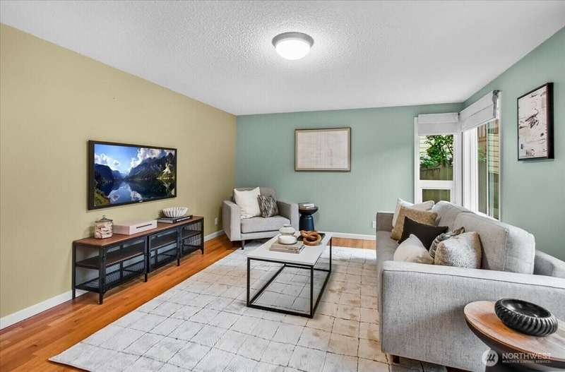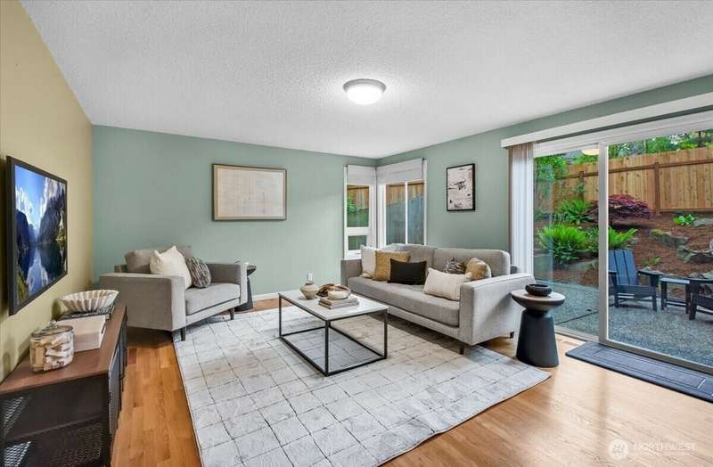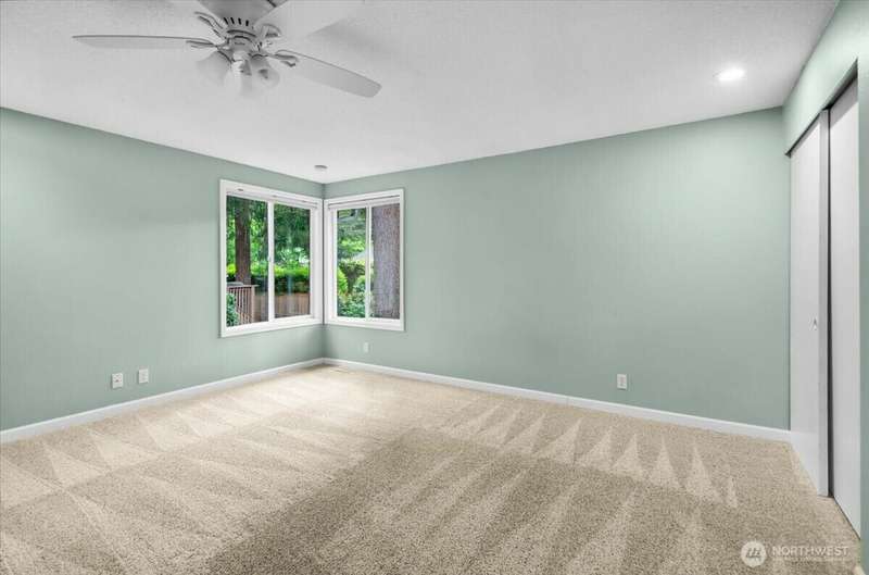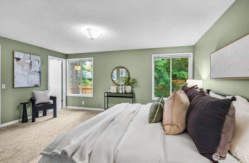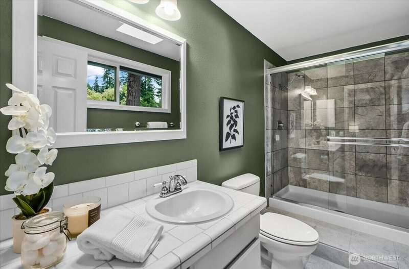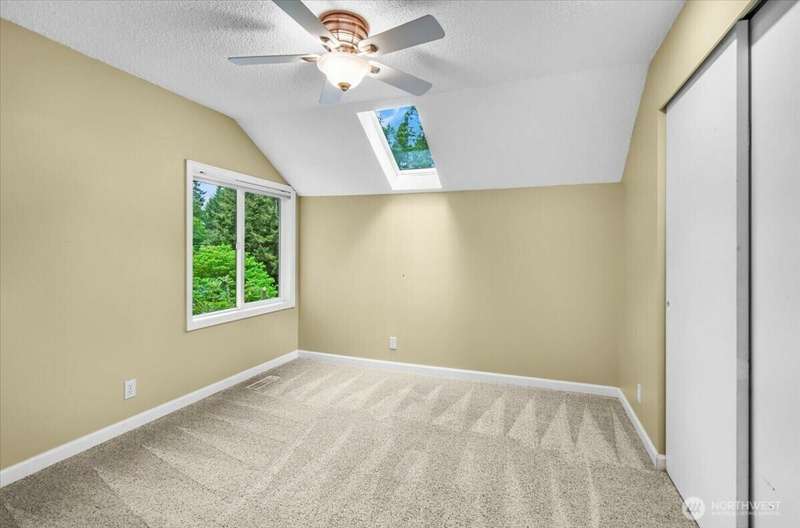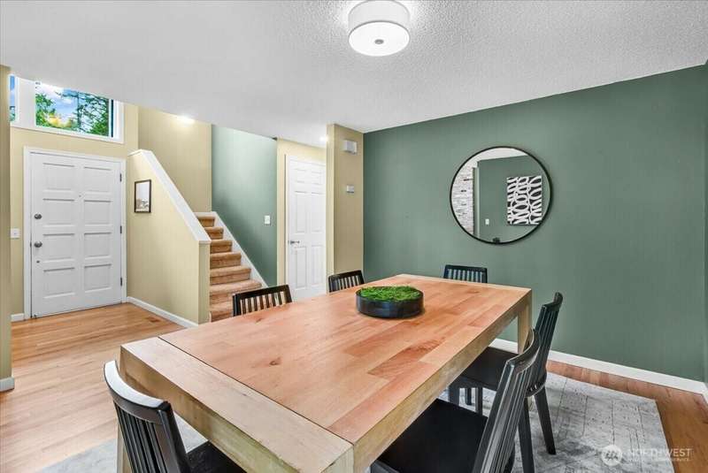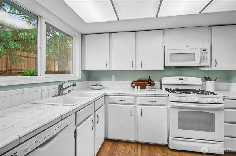 Fantastic 4 bedroom home on a quiet, dead end street in Kirkland’s sought-after community of High Woodlands. Vaulted ceilings with walls of windows and skylights flood this floorplan with natural lighting. Hardwood flooring throughout main floor featuring gracious Living and Dining rooms plus unique eating space off kitchen. French doors with level walk out to rear patio. 4 bedrooms up including primary suite with walk-in closet. 2 car attached garage w craft/flex rm. New roof in 2024. Fully fenced with private, low maintenance yard. Trail leads to private neighborhood pool, park, & tennis courts. Close to Wineries, Totem Lake Mall, Evergreen hospital, and easy freeway access.
