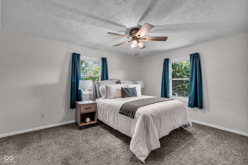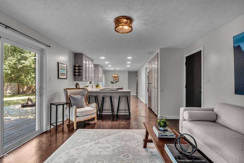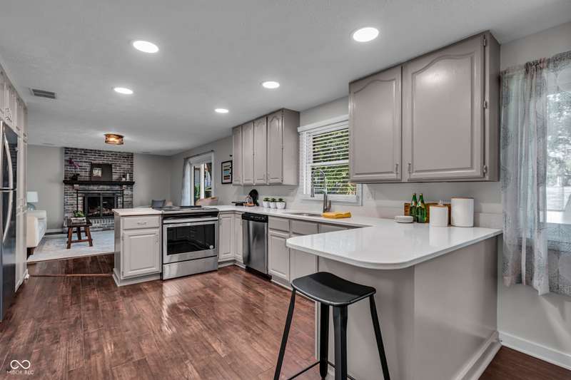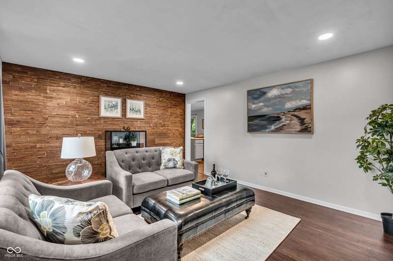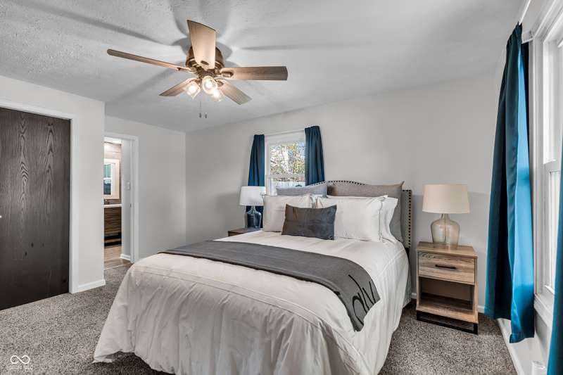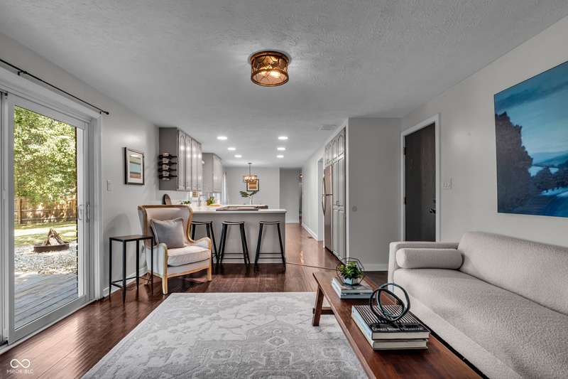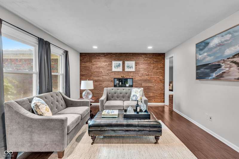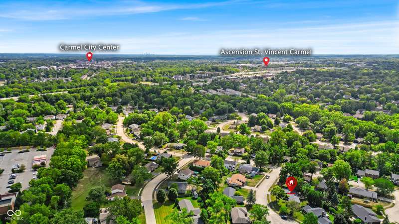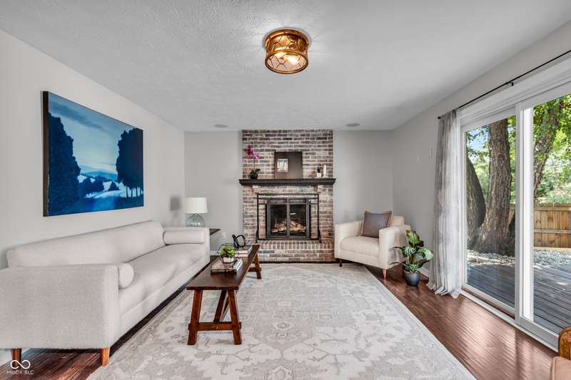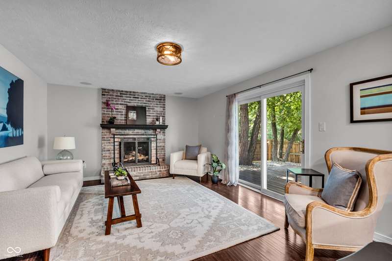 Nestled in a tranquil setting, this Three Bedroom, Two Bathroom, All Brick Ranch home built in 1977 offers an attractive single-family residence in Carmel, IN. Loaded with modern updates throughout, this home is move in ready! The living room welcomes you with a striking wood accent wall, creating a warm & inviting ambiance. This space is perfect for both quiet relaxation & lively gatherings. The kitchen is thoughtfully designed, featuring a large custom pantry cupboard, kitchen bar & peninsula, providing ample space for meal prep & casual dining. The quartz countertops add a nice touch of elegance & durability. The family room is a cozy, welcoming space with a wood-burning fireplace as the focal point. It's a perfect place to enjoy a fire during the winter season! The primary bedroom offers a private retreat, complete with an updated ensuite bathroom, providing a seamless blend of comfort and convenience. With a lot size of .31/acre, the full privacy fenced backyard offers an outdoor sanctuary complemented by a generous sized deck, fire pit area, & mini barn with power for all your outdoor storage needs! With 1,533 square feet on the interior, this home provides ample space for comfortable, functional living! Finally, the garage is a fully finished & conditioned space equipped with built-in shelving, extra outlets, ceiling speakers & evan a 240v outlet if you need one! This home is also equipped with landscape up-lighting so it shows beautifully during the evening hours! This property offers a rare opportunity to own an amazing home in the highly sought-after area of North Carmel that's within walking distance to the Monon Trail & Clay Terrace Shopping Center. Midtown Plaza and Carmel City Center are within a 16-minute bike ride down the Monon, providing the connectivity of living in the city, even though it's tucked into a quiet, comfortable cul-de-sac in an established neighborhood. It's a perfect blend of City & Suburban living that you have to see for yourself!