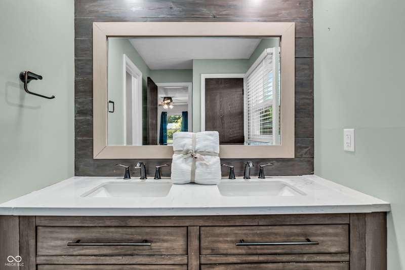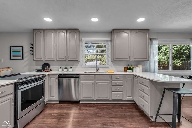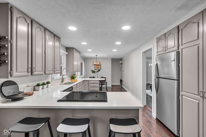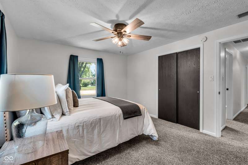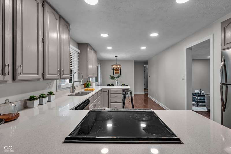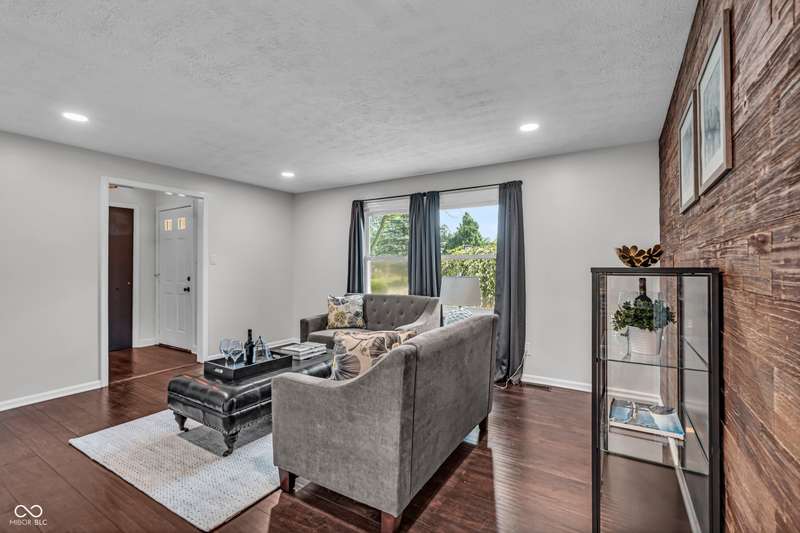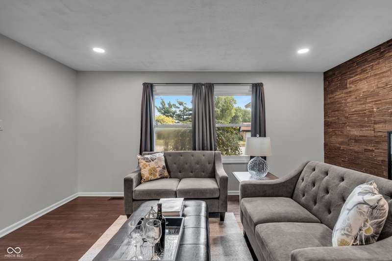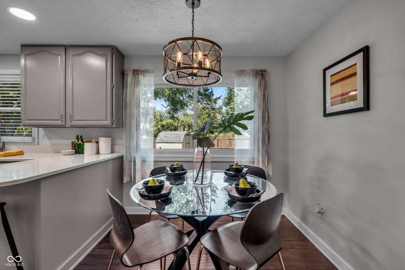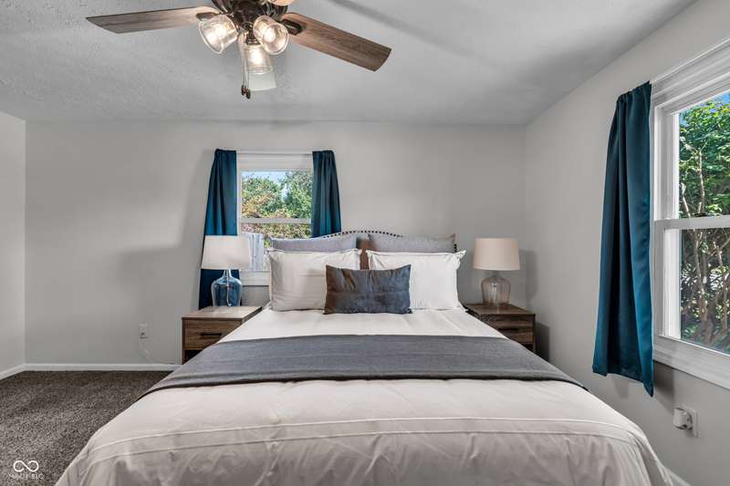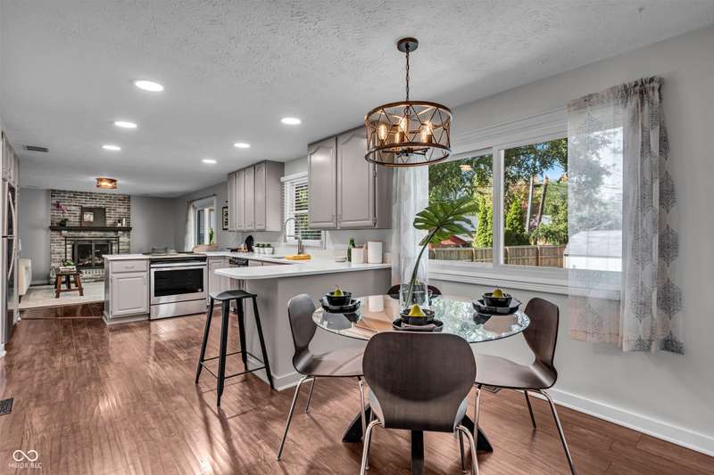 Nestled in a tranquil setting, this Three Bedroom, Two Bathroom, All Brick Ranch home built in 1977 offers an attractive single-family residence in Carmel, IN. Loaded with modern updates throughout, this home is move in ready! The living room welcomes you with a striking wood accent wall, creating a warm & inviting ambiance. This space is perfect for both quiet relaxation & lively gatherings. The kitchen is thoughtfully designed, featuring a large custom pantry cupboard, kitchen bar & peninsula, providing ample space for meal prep & casual dining. The quartz countertops add a nice touch of elegance & durability. The family room is a cozy, welcoming space with a wood-burning fireplace as the focal point. It's a perfect place to enjoy a fire during the winter season! The primary bedroom offers a private retreat, complete with an updated ensuite bathroom, providing a seamless blend of comfort and convenience. With a lot size of .31/acre, the full privacy fenced backyard offers an outdoor sanctuary complemented by a generous sized deck, fire pit area, & mini barn with power for all your outdoor storage needs! With 1,533 square feet on the interior, this home provides ample space for comfortable, functional living! Finally, the garage is a fully finished & conditioned space equipped with built-in shelving, extra outlets, ceiling speakers & evan a 240v outlet if you need one! This home is also equipped with landscape up-lighting so it shows beautifully during the evening hours! This property offers a rare opportunity to own an amazing home in the highly sought-after area of North Carmel that's within walking distance to the Monon Trail & Clay Terrace Shopping Center. Midtown Plaza and Carmel City Center are within a 16-minute bike ride down the Monon, providing the connectivity of living in the city, even though it's tucked into a quiet, comfortable cul-de-sac in an established neighborhood. It's a perfect blend of City & Suburban living that you have to see for yourself!