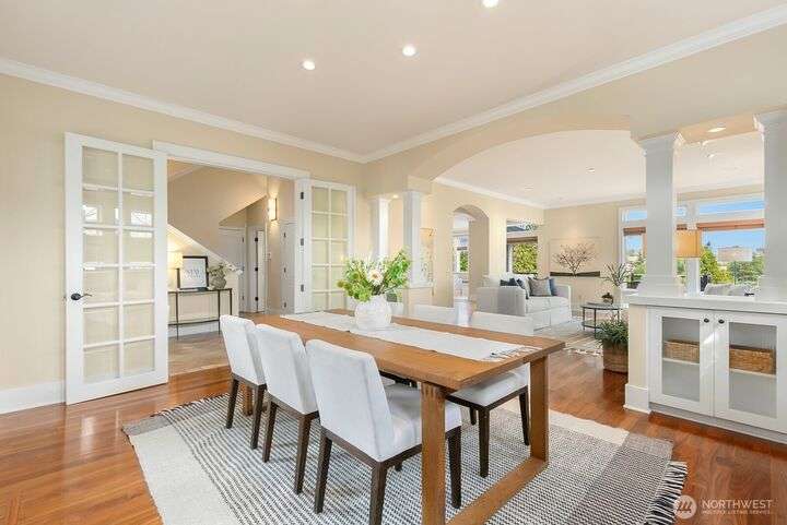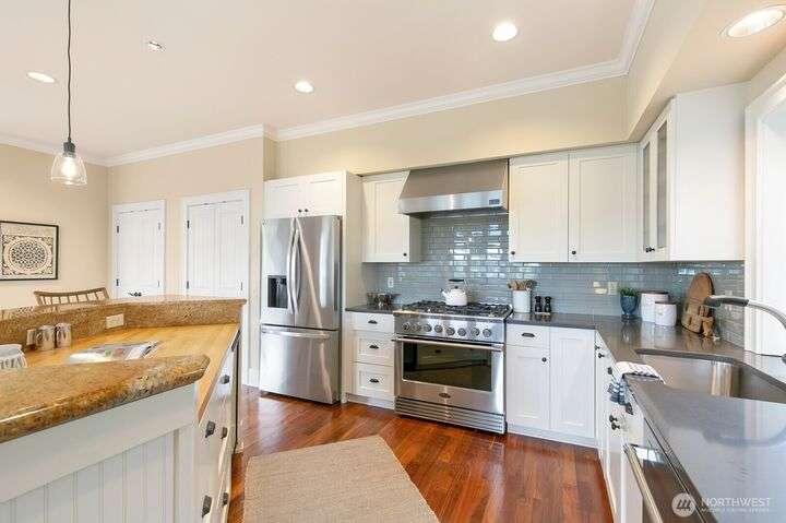 Step into this pristine and charming home that offers the perfect blend of comfort and style. The kitchen and flex room opens to the deck with backyard access, making this the ideal spot to relax. Boasting spacious bedrooms, the top-floor includes a primary retreat and second ensuite, & the lower level is complete with two beds, bath, & rec room. Outside, the expansive, level yard is truly a standout - large enough for soccer, weekend gatherings, or simply soaking up the sunshine in your private outdoor haven. This Magnolia stunner is close to top-rated schools, parks, & blocks from the Village. With a newer roof, A/C, sauna, & a layout with spaces designed for both entertaining & everyday living, this one is turn-key and waiting for you!