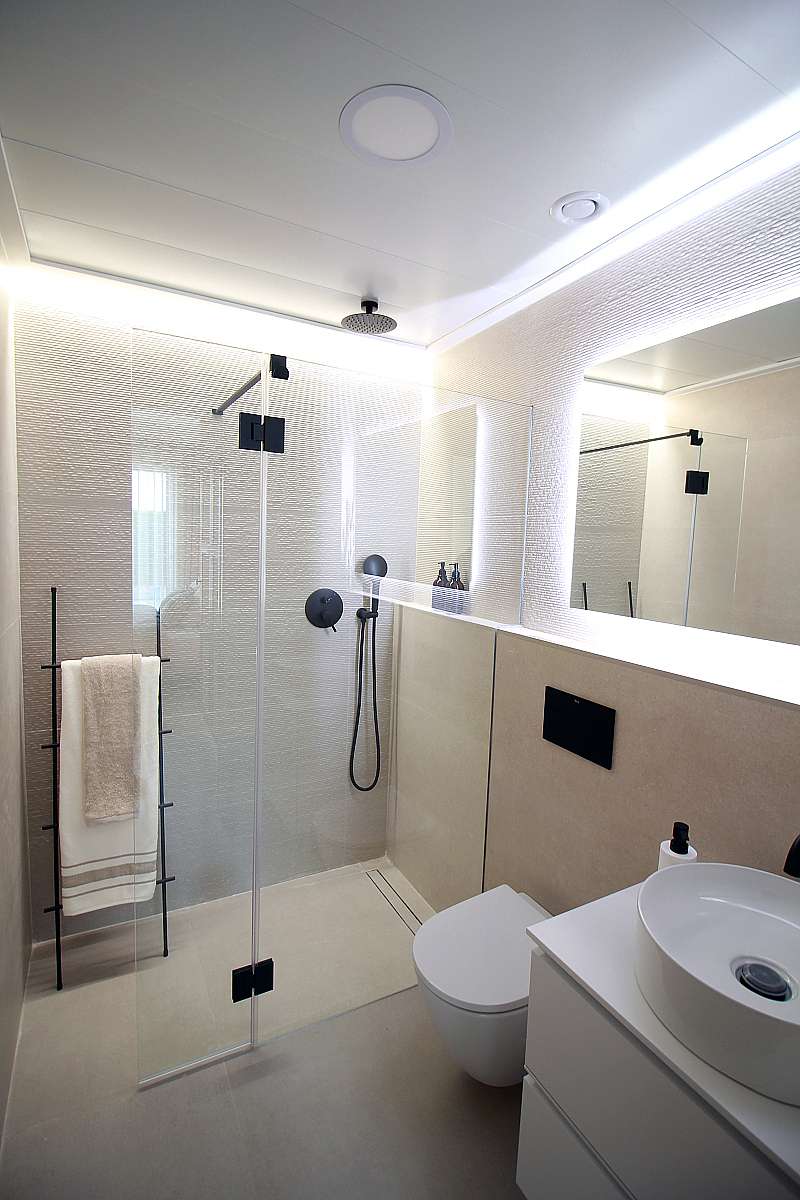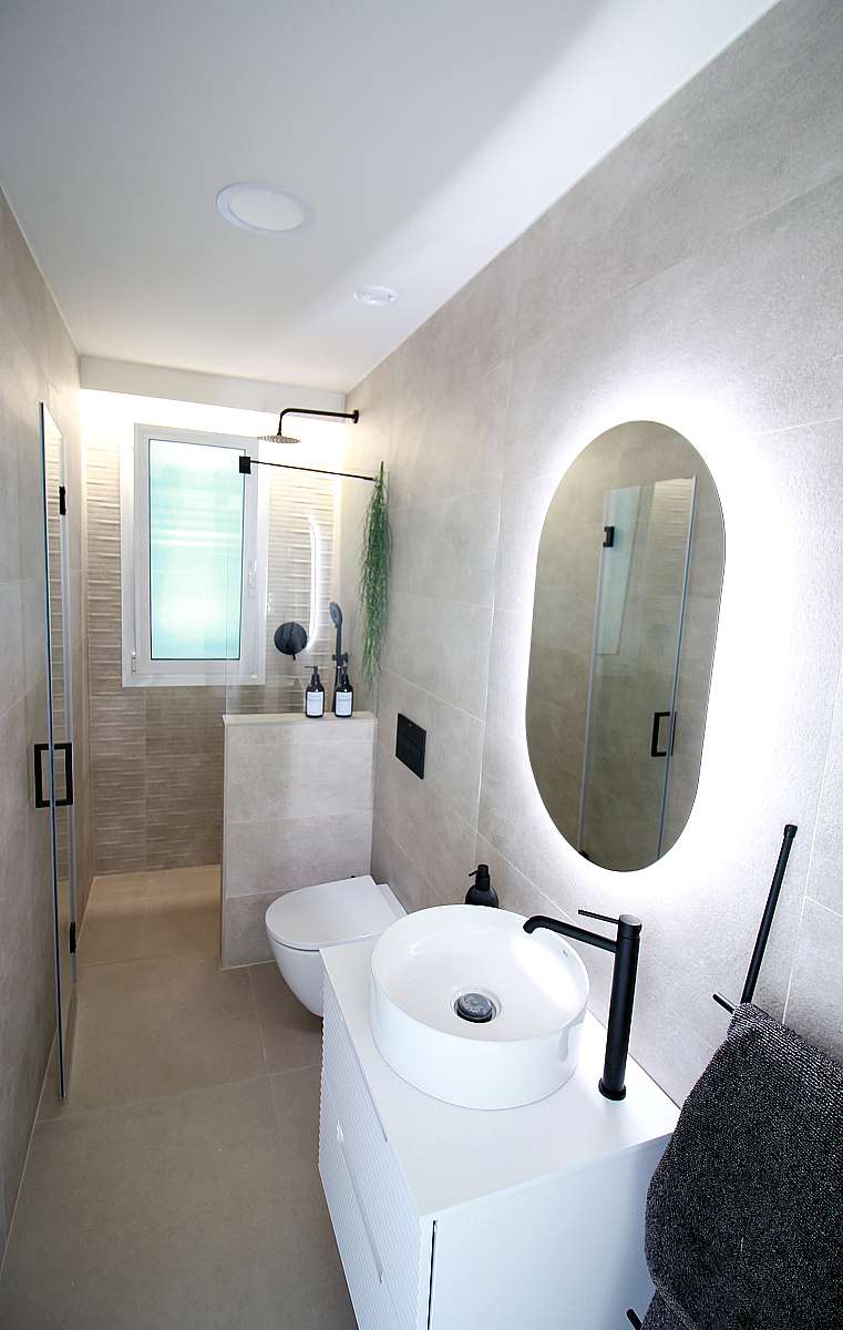 A highlight of the apartments is the generously sized living room, providing a cozy and tranquil environment for relaxation. Large French-style windows open onto the sun terrace, flooding the living area with natural light and extending the living space outdoors.