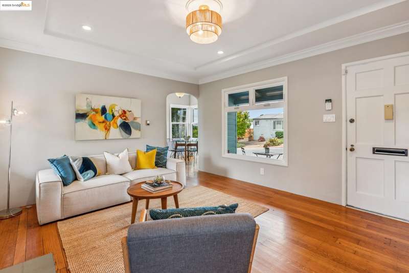 <strong>Charming Bungalow + Bonus Lot!</strong> Welcome to this delightful 2-bedroom, 1-bath, 840 sq. ft.* home with both front and back porches, and located in the Richmond Annex neighborhood. The living room features a formal, recessed ceiling and a door to the back porch and yard. The cozy dining room leads to the kitchen and from there to the laundry room with a second door to the back porch. Two light-filled bedrooms and a vintage bath with separate shower and tub complete the interior of the home, which also boasts beautiful hardwood floors and dual-paned windows throughout. Outside, the 5,880 sq ft lot* offers a large patio area, plenty of room to garden, and a detached garage with a versatile room above, which offers endless potential for creative projects or a home office.** A highlight of this sale is the adjacent 2,294 square foot* lot, included in the purchase—a rare opportunity for expansion, gardening, or potential future development.*** This unique property, conveniently located with easy access to El Cerrito, BART, I-80, shopping, and parks, combines charm, functionality, and investment potential. <dl><li>2 bedrooms</li> <li>1 full bath with separate shower and tub</li> <li>Living room with recessed ceiling and door to back porch</li> <li>Cozy dining room</li> <li>Kitchen with stainless steel appliances </li> <li>Laundry room with door to back porch</li> <li>840 sq ft on a 5,880 sq ft lot (per public record)</li> <li>Detached garage with room above</li> <li>The sale includes an adjacent 2,294 sq ft lot (per public record) with separate APN</li> <li>Close to I-80, El Cerrito, BART, shopping, and dining</li></dl> *Per public record. **Buyer to verify use of space. Neither seller nor listing agent has investigated or verified the accuracy of any of these sources of information nor that these spaces are or may be made into legally habitable spaces. Buyer must conduct their own investigation with the city and appropriate professionals and rely solely on that investigation. ***Buyer is advised to conduct their own investigation with appropriate professionals and verify with the city prior to proceeding with the purchase, and to rely solely on their own investigation.